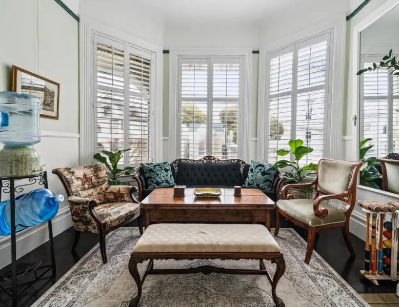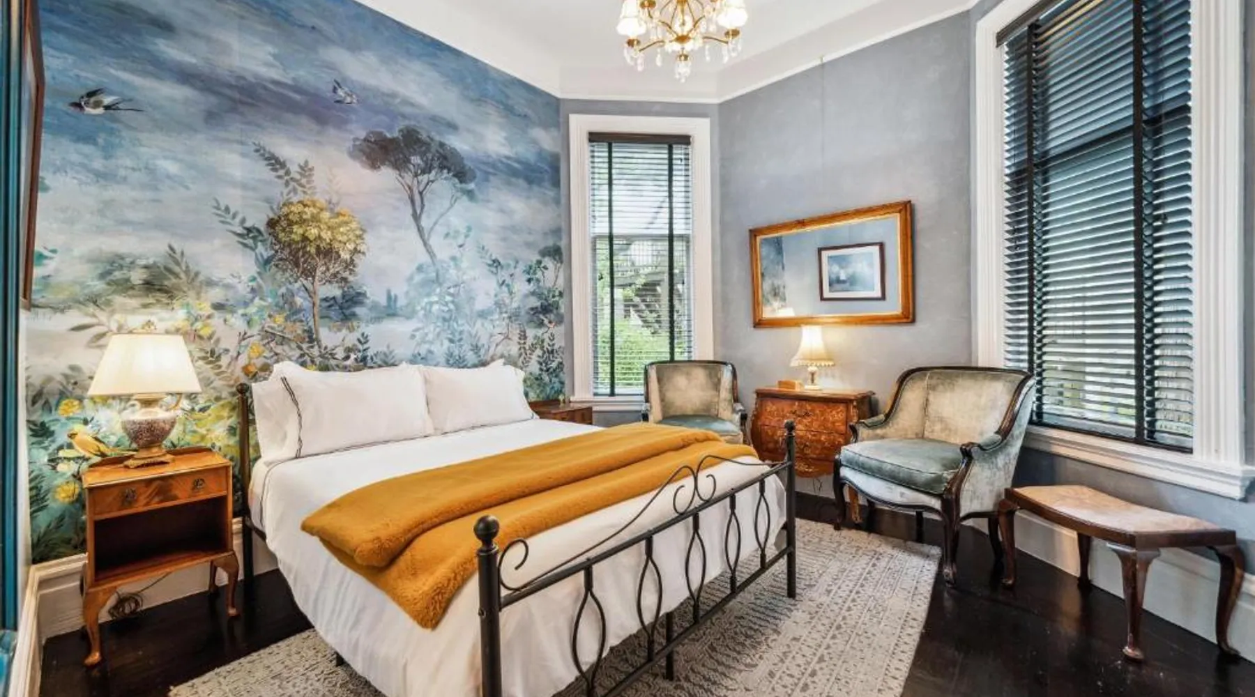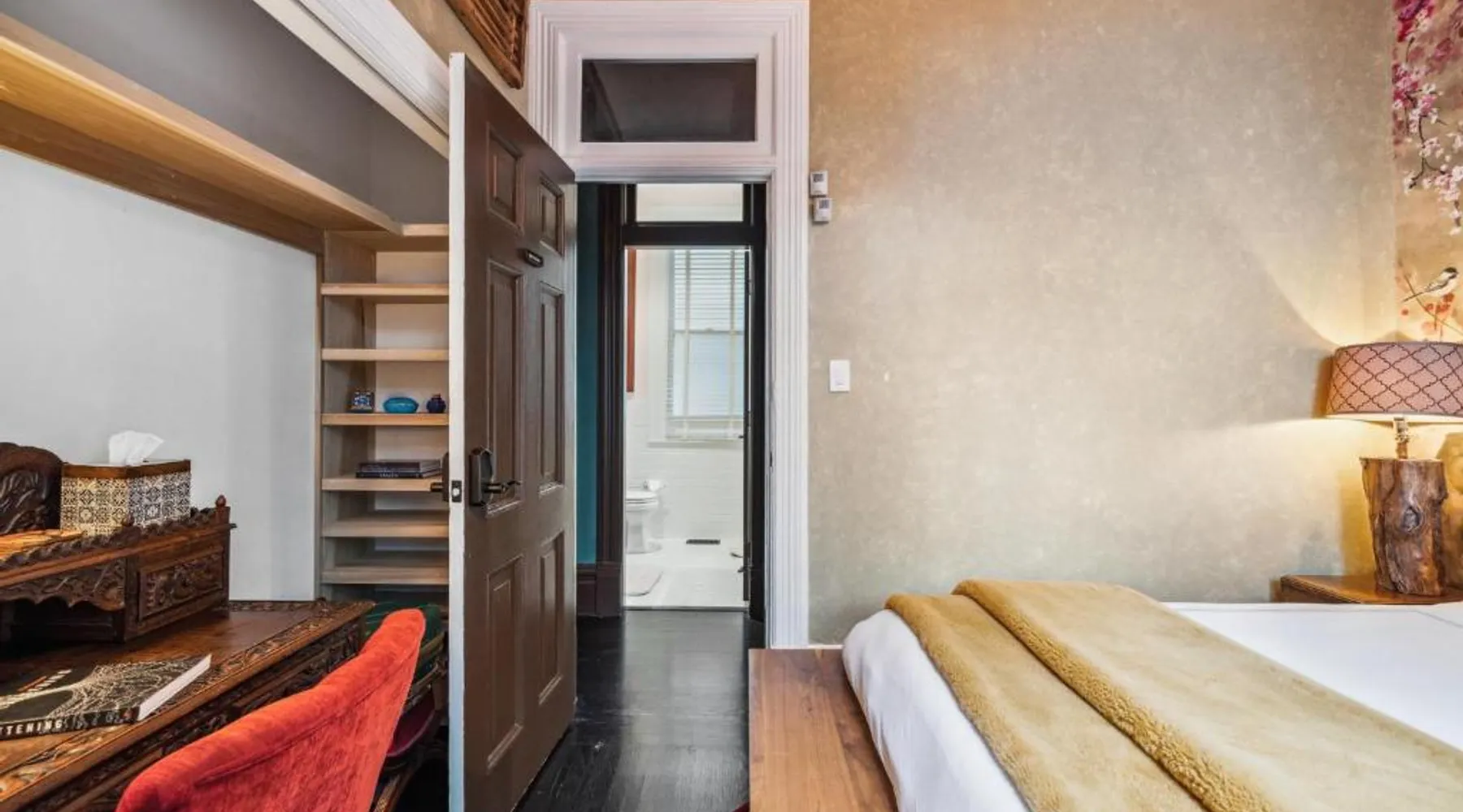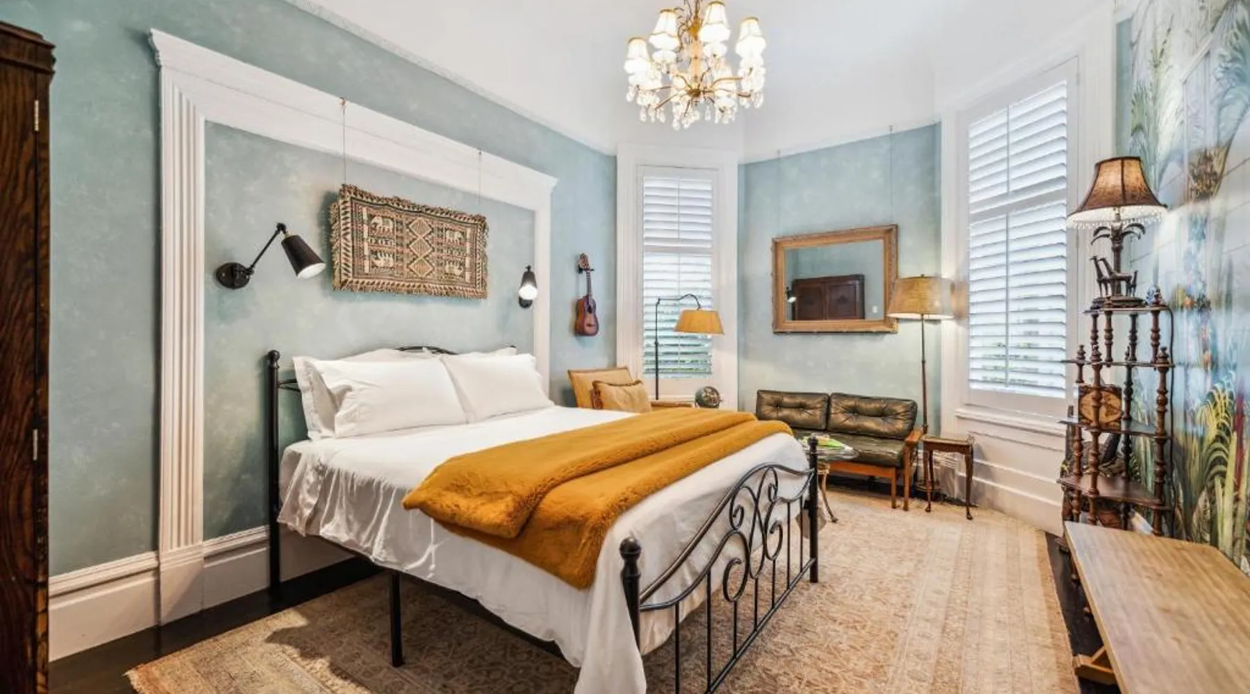 Historic Charm: The Historic & Charming Victorian Home Sleeps 11 in San Francisco offers a unique holiday home experience. Guests enjoy a historic setting with a private entrance and a spacious patio. Modern Amenities: The property features free WiFi, air-conditioning, and a fully equipped kitchen. Additional amenities include a spa bath, bathrobes, and a work desk. Prime Location: Located 13 mi from San Francisco International Airport, the home is a 15-minute walk from the University of San Francisco. Nearby attractions include San Francisco City Hall (1.7 mi) and Union Square (3.1 mi). Guest Favorites: Guests appreciate the convenient location and the property's high ratings. This double room features a spa bath. Guests can make meals in the kitchen that has a stovetop, a refrigerator, a dishwasher and kitchenware. The spacious double room features a tea and coffee maker, a seating area, as well as a shared bathroom boasting a shower and a hairdryer. The unit has 1 bed.