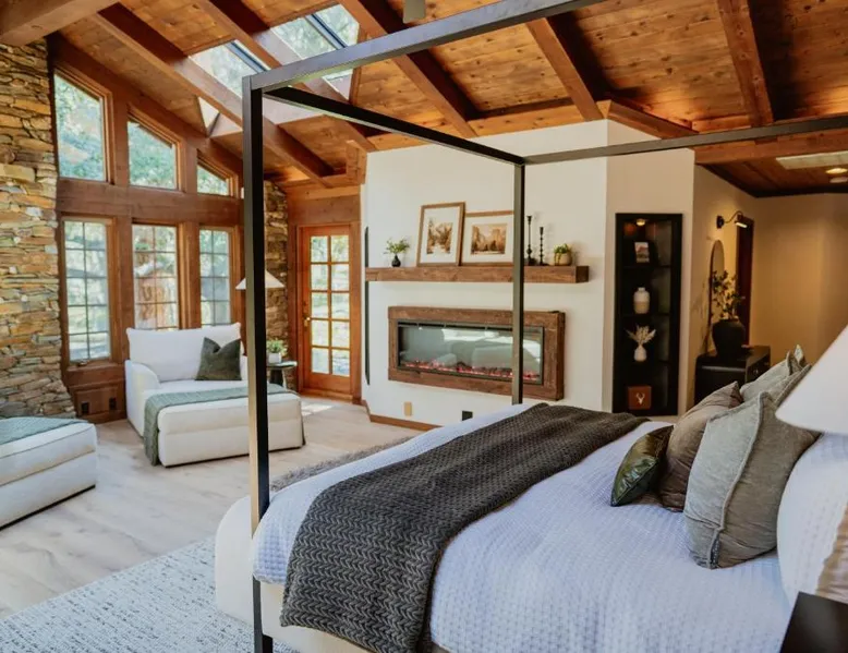 Spacious Accommodations: Stone House by Casa Oso in Mariposa offers a spacious villa with three bedrooms and four bathrooms. The property features a living room, terrace, and garden, ensuring ample space for relaxation. Modern Amenities: Guests enjoy free WiFi, air-conditioning, and a fully equipped kitchen. Additional facilities include a hot tub, outdoor fireplace, and an electric vehicle charging station. Free on-site private parking is available. Outdoor Activities: The villa provides access to hiking trails and a sun terrace. An outdoor play area and children's playground cater to families. Lake, garden, and mountain views enhance the outdoor experience. Convenient Location: Located 49 mi from Merced Municipal Airport and 23 mi from Yosemite South Entrance, the property offers easy access to local attractions. Highly rated by guests for its spaciousness and excellent facilities. This villa's standout features are the hot tub and fireplace. Featuring a private entrance, this air-conditioned villa consists of 2 living rooms, 3 separate bedrooms and 4 bathrooms with a bath and a shower. Guests will find a stovetop, a refrigerator, a dishwasher and kitchenware in the kitchen. The villa also offers a barbecue. The spacious villa provides a washing machine, a tea and coffee maker, a seating area as well as a terrace with lake views. The unit offers 4 beds.