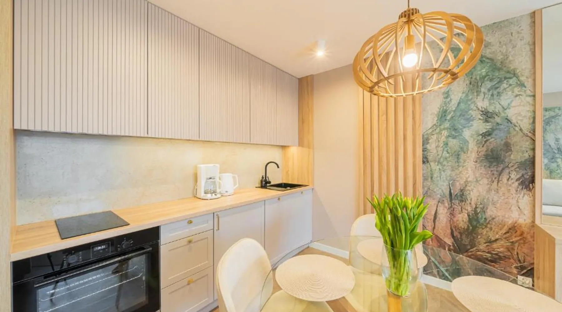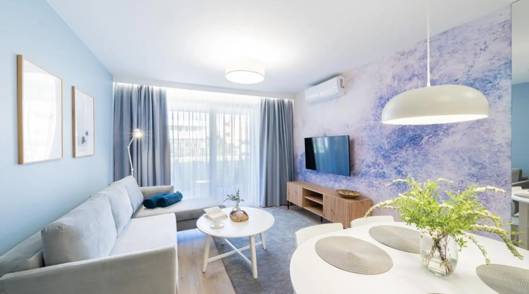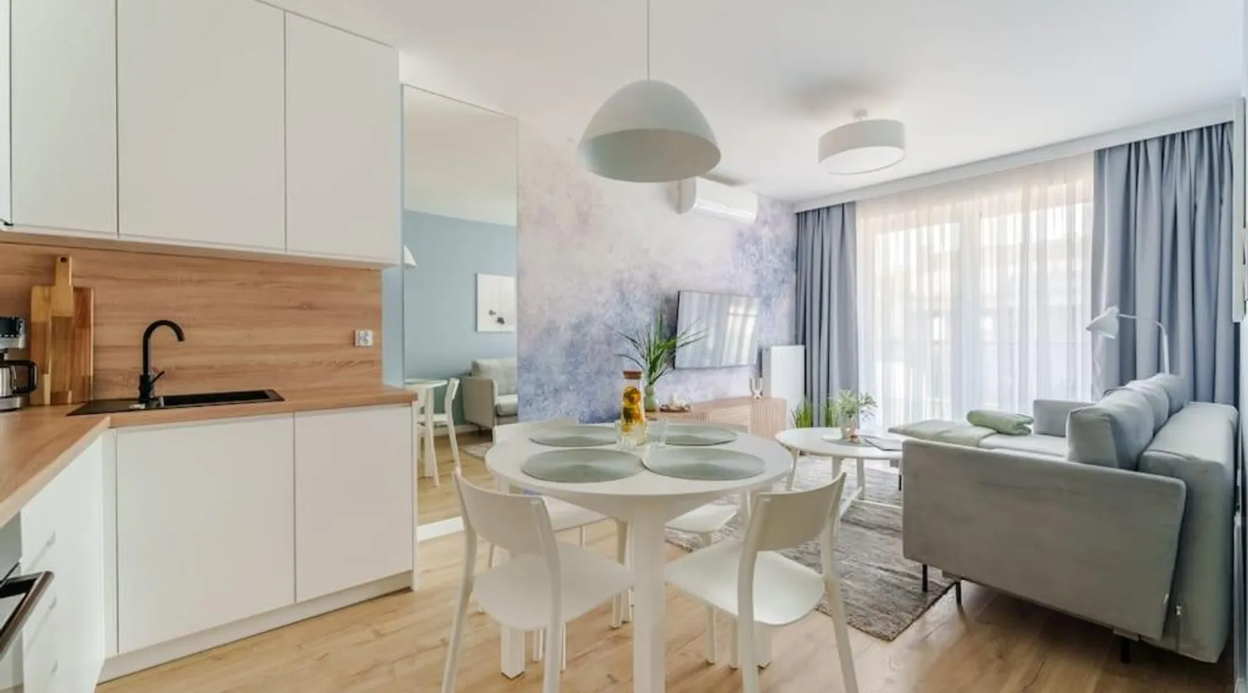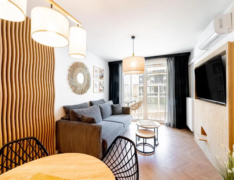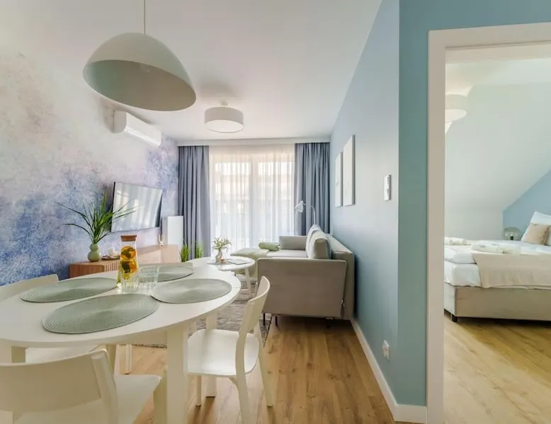 Beachfront Location: POSESJA APARTAMENTY & SPA in Grzybowo offers direct beachfront access and stunning sea views. Guests can relax on the terrace or balcony and enjoy the serene beachfront setting. Spa and Wellness: The apartment features a spa and wellness center with a sauna, steam room, and hot tub. Wellness packages and treatments are available to enhance the relaxation experience. Comfortable Accommodations: Each apartment includes air-conditioning, a kitchenette, and a private bathroom. Additional amenities include free WiFi, a washing machine, and a dishwasher. Local Attractions: Grzybowo Beach is a 6-minute walk away, while Kołobrzeg Railway Station is 4.3 mi distant. Solidarity Szczecin-Goleniów Airport is 66 mi from the property. This apartment provides a sauna. This apartment consists of 1 living room, 1 separate bedroom and 1 bathroom with a shower and free toiletries. The well-equipped kitchen features a stovetop, a refrigerator, a dishwasher and kitchenware. This air-conditioned apartment includes a dining area, a flat-screen TV with streaming services a washing machine and a terrace. The unit offers 2 beds.