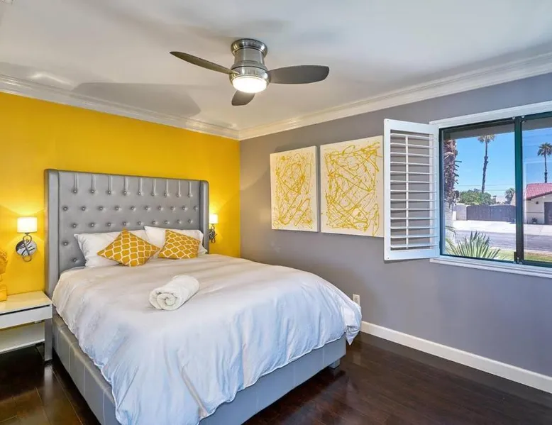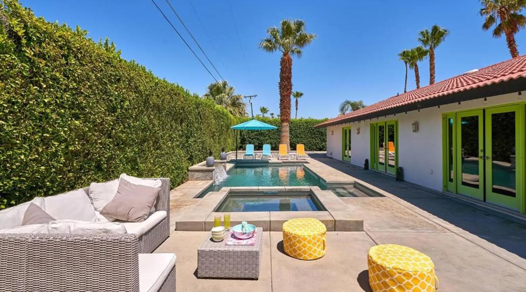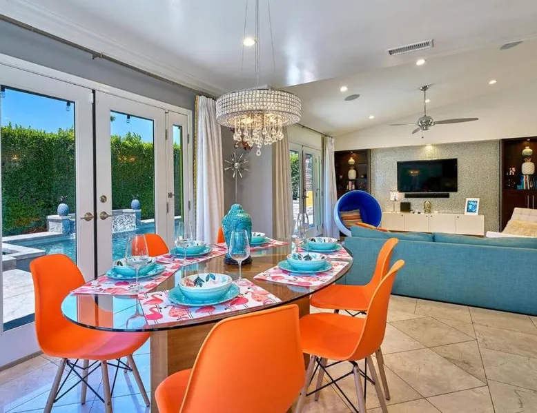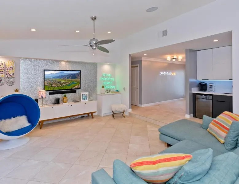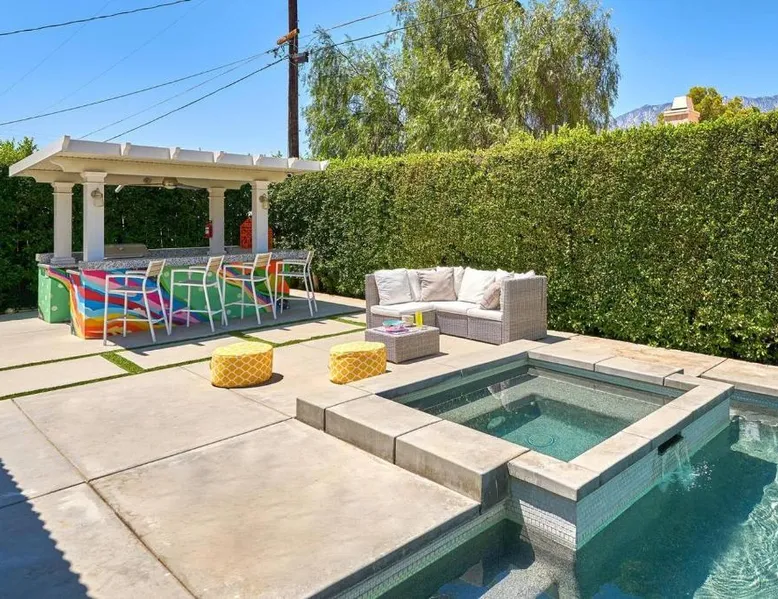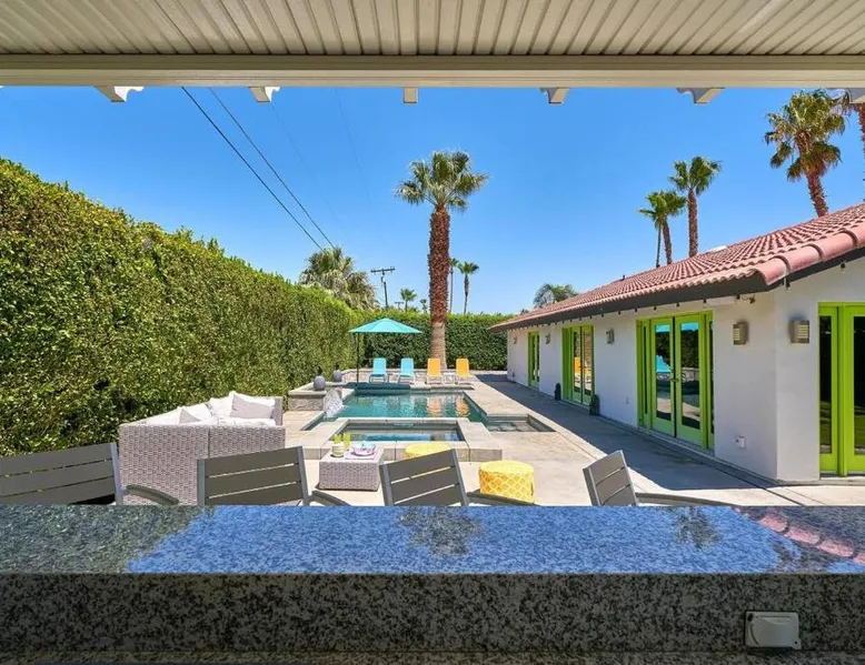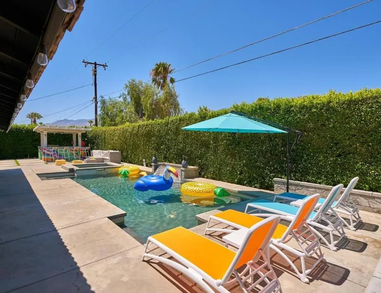 Spacious Accommodations: Pineapple Splash! Complete Privacy! Salt Pool! in Palm Springs offers a spacious holiday home with three bedrooms and two bathrooms. The property features a terrace, garden, and bar, providing ample space for relaxation and entertainment. Modern Amenities: Guests enjoy free WiFi, air-conditioning, and a fully equipped kitchenette. Additional facilities include a hot tub, family rooms, and free on-site private parking. The property is 0.6 mi from Palm Springs International Airport and close to attractions such as Escena Golf Club (1.9 mi) and Palm Springs Aerial Tramway (3.7 mi). This holiday home features a pool with a view and a hot tub. Boasting a private entrance, this spacious holiday home also includes 3 bedrooms, a seating area and 2 bathrooms with a walk-in shower and a bath. Guests will find a stovetop, a refrigerator, a dishwasher and an oven in the kitchen. The holiday home also features a barbecue. The air-conditioned holiday home offers a flat-screen TV with streaming services, a washing machine, a mini-bar, a tea and coffee maker as well as garden views. The unit has 3 beds.