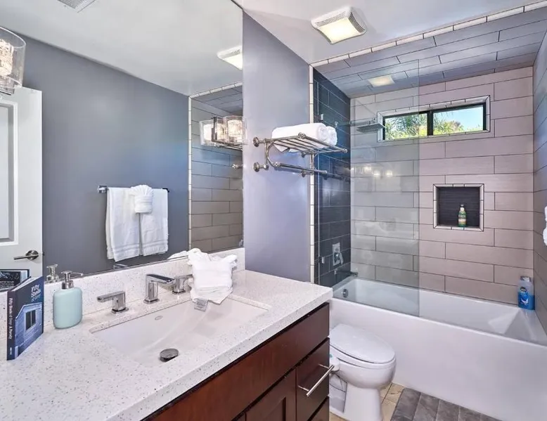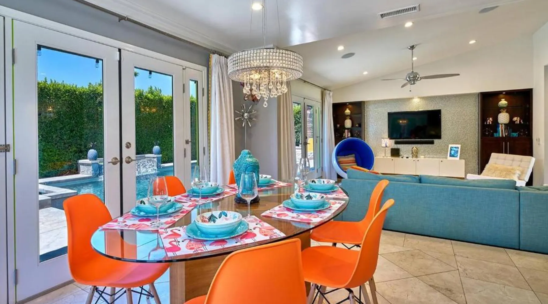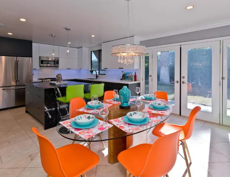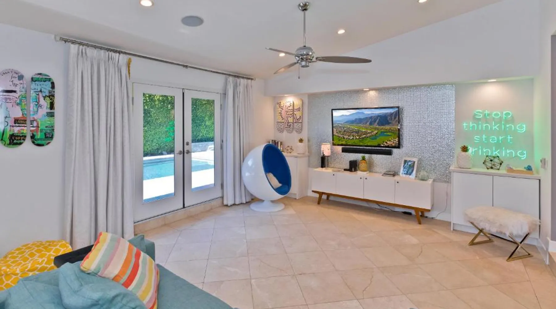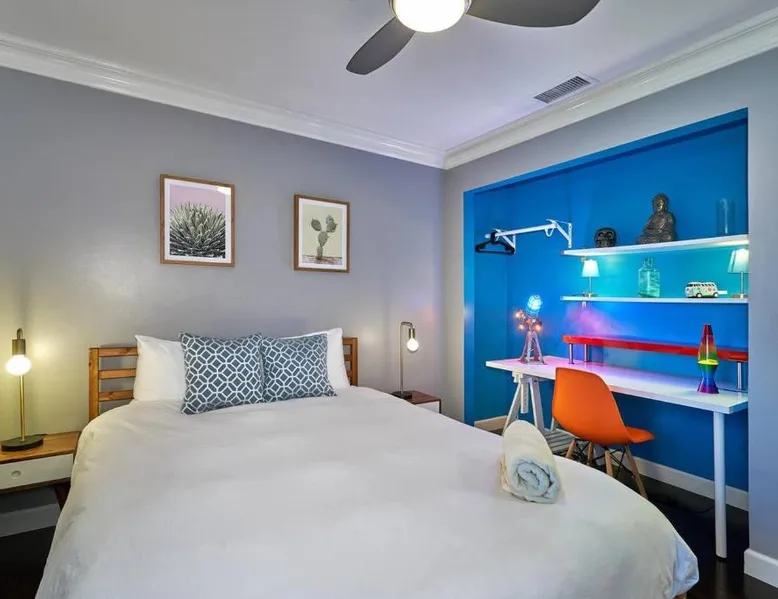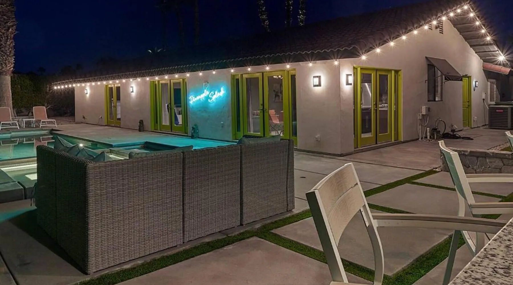 Spacious Accommodations: Pineapple Splash! Complete Privacy! Salt Pool! in Palm Springs offers a spacious holiday home with three bedrooms and two bathrooms. The property features a terrace, garden, and bar, providing ample space for relaxation and entertainment. Modern Amenities: Guests enjoy free WiFi, air-conditioning, and a fully equipped kitchenette. Additional facilities include a hot tub, family rooms, and free on-site private parking. The property is 0.6 mi from Palm Springs International Airport and close to attractions such as Escena Golf Club (1.9 mi) and Palm Springs Aerial Tramway (3.7 mi). This holiday home features a pool with a view and a hot tub. Boasting a private entrance, this spacious holiday home also includes 3 bedrooms, a seating area and 2 bathrooms with a walk-in shower and a bath. Guests will find a stovetop, a refrigerator, a dishwasher and an oven in the kitchen. The holiday home also features a barbecue. The air-conditioned holiday home offers a flat-screen TV with streaming services, a washing machine, a mini-bar, a tea and coffee maker as well as garden views. The unit has 3 beds.