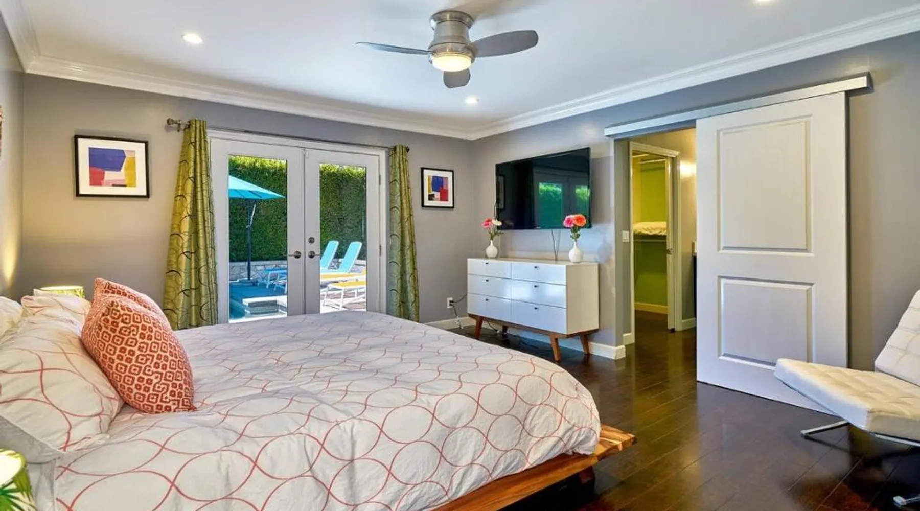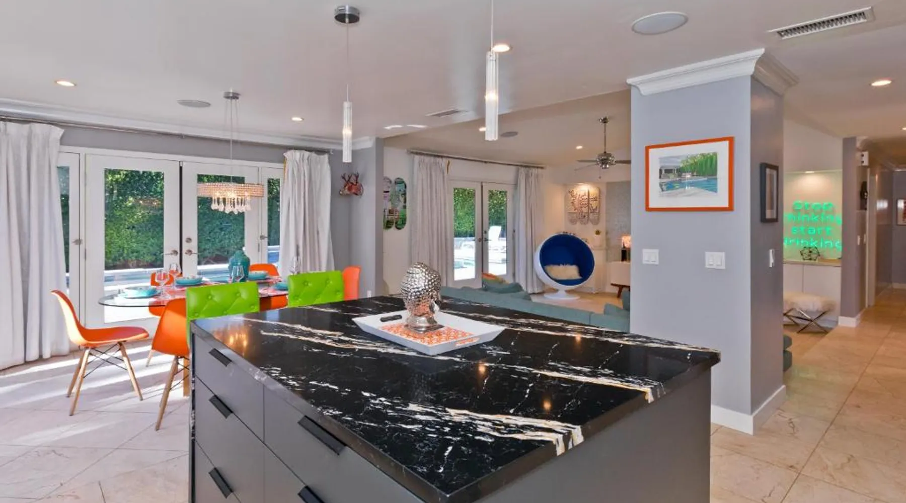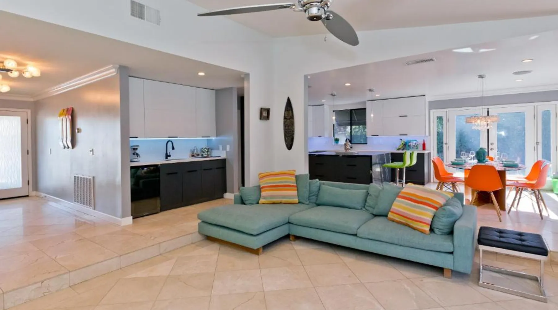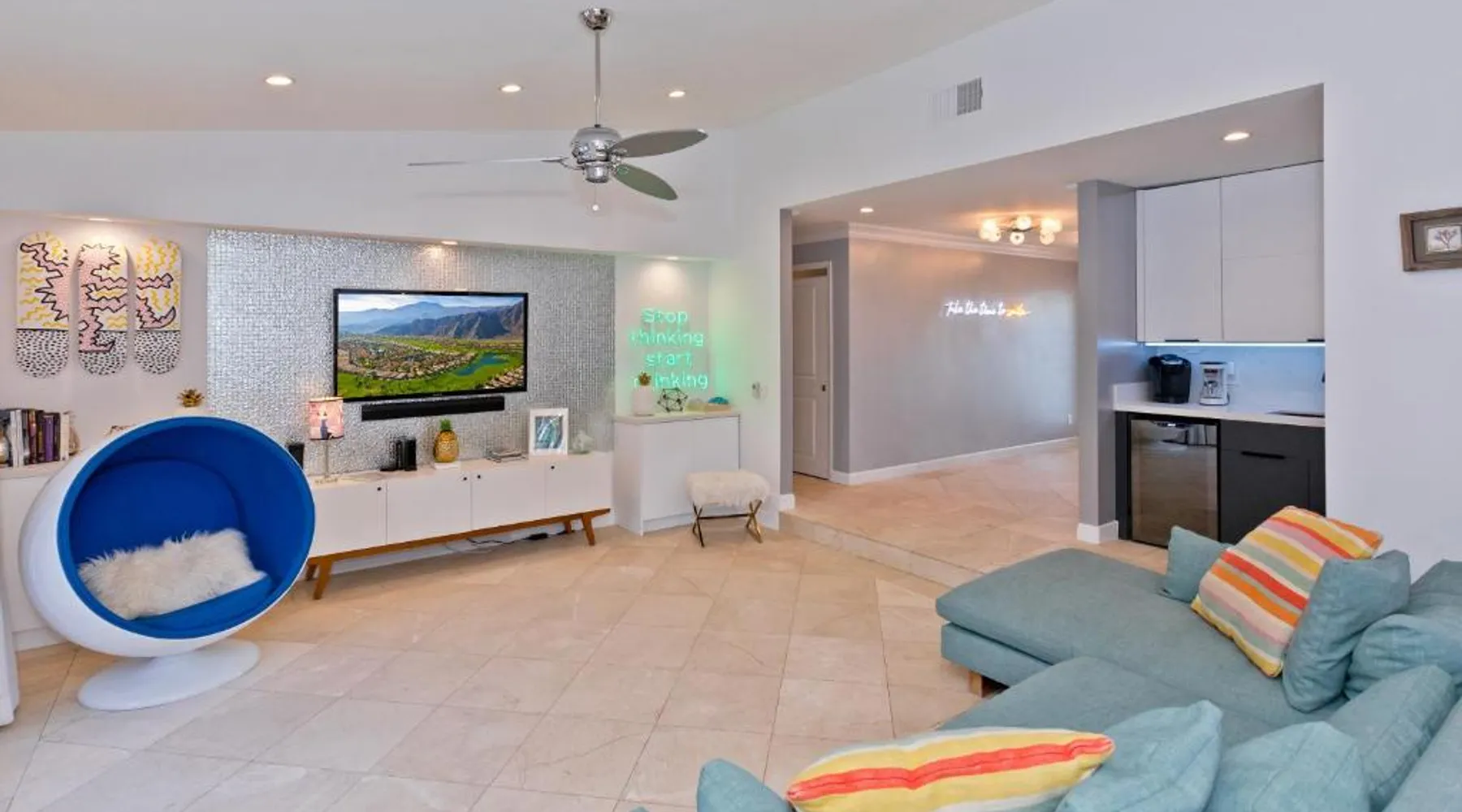Spacious Accommodations: Pineapple Splash! Complete Privacy! Salt Pool! in Palm Springs offers a spacious holiday home with three bedrooms and two bathrooms. The property features a terrace, garden, and bar, providing ample space for relaxation and entertainment. Modern Amenities: Guests enjoy free WiFi, air-conditioning, and a fully equipped kitchenette. Additional facilities include a hot tub, family rooms, and free on-site private parking. The property is 0.6 mi from Palm Springs International Airport and close to attractions such as Escena Golf Club (1.9 mi) and Palm Springs Aerial Tramway (3.7 mi). This holiday home features a pool with a view and a hot tub. Boasting a private entrance, this spacious holiday home also includes 3 bedrooms, a seating area and 2 bathrooms with a walk-in shower and a bath. Guests will find a stovetop, a refrigerator, a dishwasher and an oven in the kitchen. The holiday home also features a barbecue. The air-conditioned holiday home offers a flat-screen TV with streaming services, a washing machine, a mini-bar, a tea and coffee maker as well as garden views. The unit has 3 beds.