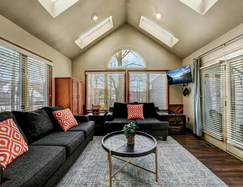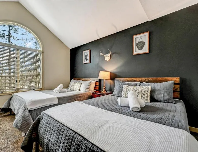 Spacious Accommodations: Poconos Paradise Lakeskihikewater Parkkids in Lake Harmony offers a spacious holiday home with five bedrooms and three bathrooms. The property features a living room, family rooms, and an indoor play area. Modern Amenities: Guests enjoy free WiFi, air-conditioning, a heated pool, and a sun terrace. Additional facilities include a games room, ski storage, and free on-site private parking. Outdoor Activities: The holiday home provides ski-to-door access, hiking trails, and a balcony with lake and mountain views. Winter sports enthusiasts can explore nearby attractions such as Pocono Raceway (6.8 mi) and Jack Frost Mountain Resort (8.1 mi). Convenient Location: Located 42 mi from Lehigh Valley International Airport, the property is near Pocono Raceway (6.8 mi), Jack Frost Mountain Resort (8.1 mi), Kalahari Waterpark (19 mi), and Great Wolf Lodge Pocono Mountains (21 mi). This holiday home features a fireplace. Boasting a private entrance, this air-conditioned holiday home features 4 living rooms, 5 separate bedrooms and 3 bathrooms with a bath and a shower. Guests will find a stovetop, a refrigerator, a dishwasher and kitchenware in the kitchen. The holiday home also comes with a barbecue. The spacious holiday home features a washing machine, a tea and coffee maker, a seating area as well as a terrace with lake views. The unit has 9 beds.