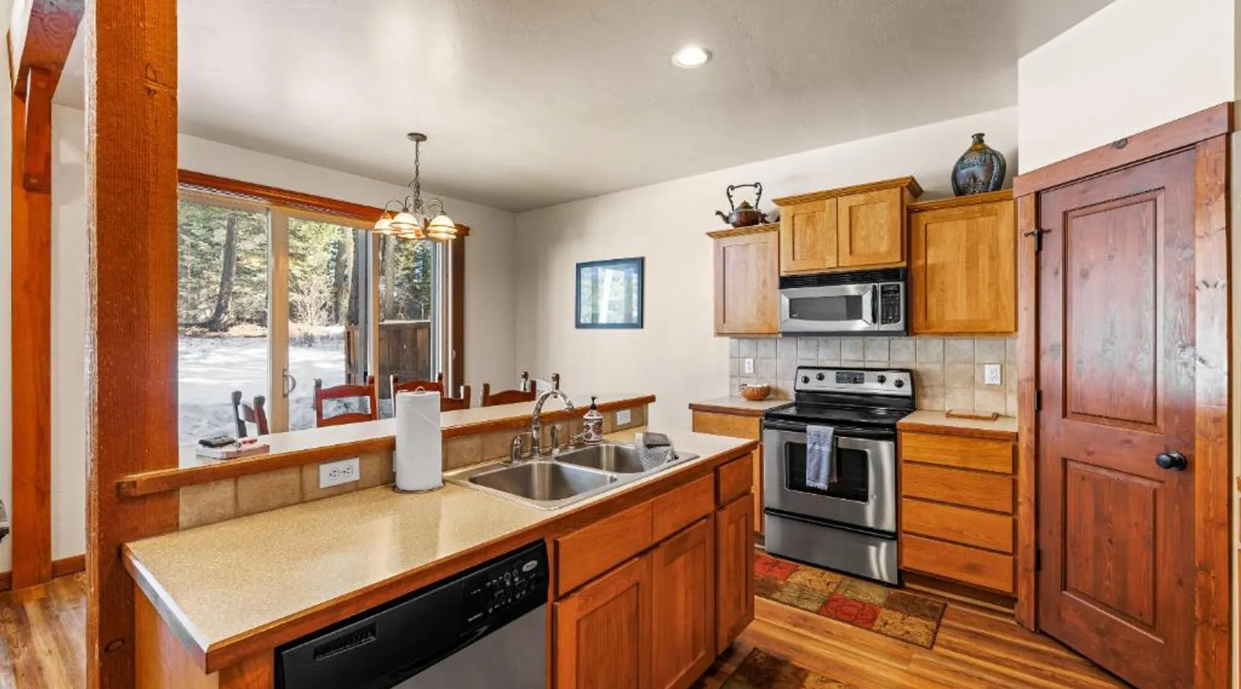 Spacious Accommodations: New - Golfers View - on Golf Course - Close to park and lake in McCall offers a spacious holiday home with four bedrooms and two bathrooms. The living room features mountain views and a cozy fireplace. Relaxing Facilities: Guests can unwind at the spa and wellness center or enjoy the balcony and patio. The property includes a washing machine, dishwasher, and a fully equipped kitchen with modern appliances. Convenient Amenities: The holiday home provides a 24-hour front desk, children's playground, and a barbecue area. Additional amenities include a TV, dining area, and a variety of kitchenware. Local Attractions: Located near an ice-skating rink and a golf course, the property offers skiing activities. The surrounding area features parks and lakes, providing ample opportunities for outdoor enthusiasts. The fireplace is the standout feature of this holiday home. Guests will find a stovetop, a refrigerator, a dishwasher and kitchenware in the well-fitted kitchen. The holiday home also comes with a barbecue. The spacious holiday home features a TV with cable channels, a washing machine, a tea and coffee maker, a dining area as well as mountain views. The unit has 5 beds.