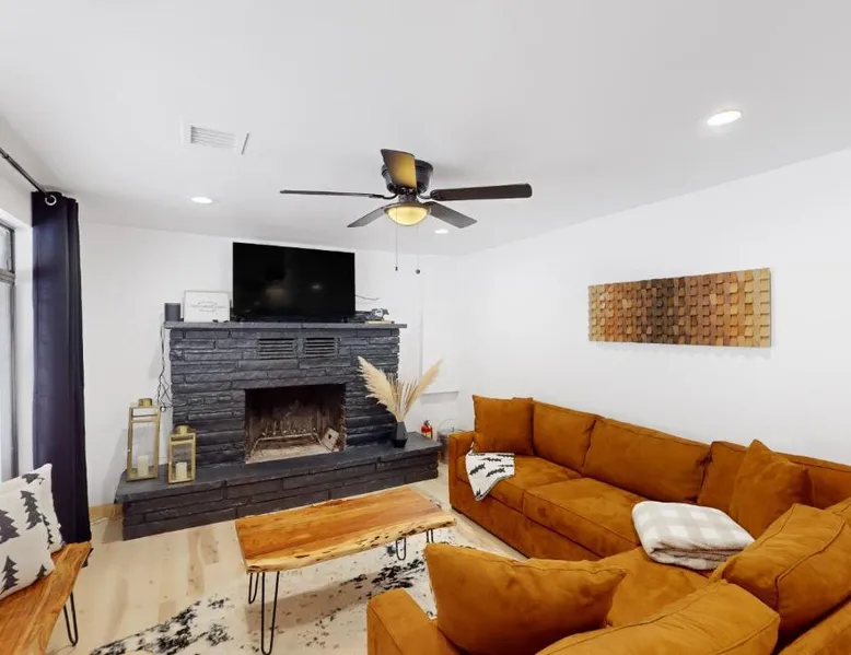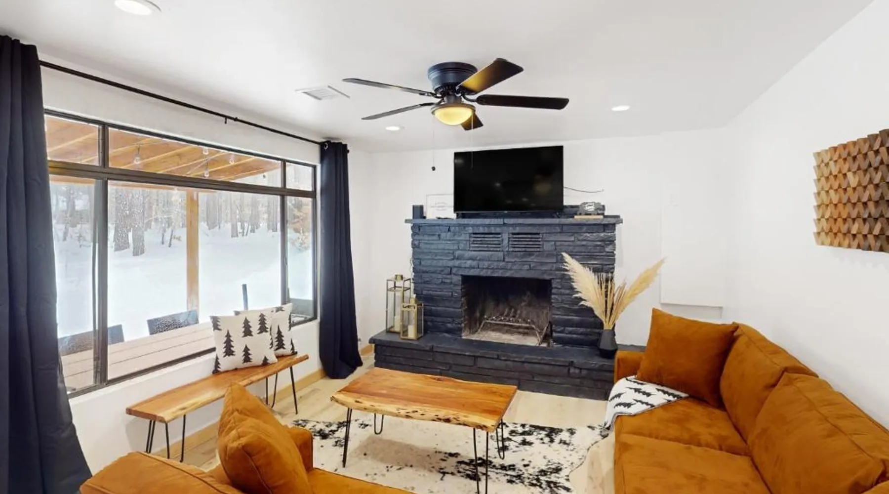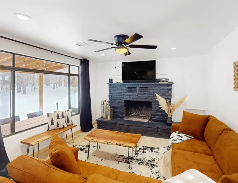 Comfortable Living: Modern Pine Sanctuary in Indian Pine offers a two-bedroom holiday home with a living room. The property features a fully equipped kitchen, air-conditioning, and a cozy fireplace. Outdoor Amenities: Guests can relax in the outdoor seating area with mountain views. The patio includes outdoor furniture and a sofa bed, providing a pleasant outdoor space. Convenient Facilities: The holiday home includes a washing machine, dishwasher, microwave, and a work desk. Streaming services and a TV enhance the stay. Accessible Location: Located 14 mi from Show Low Regional Airport, the property is highly rated by guests. Reception staff speak Czech, German, English, Spanish, French, Italian, Dutch, and Portuguese. This holiday home's special feature is the fireplace. Featuring a private entrance, this air-conditioned holiday home consists of 1 living room, 2 separate bedrooms and 1 bathroom with a hairdryer. In the well-equipped kitchen, guests will find a stovetop, a refrigerator, a dishwasher and kitchenware. The holiday home provides a washing machine, a tea and coffee maker, tumble dryer, a flat-screen TV with streaming services, as well as mountain views. The unit offers 4 beds.