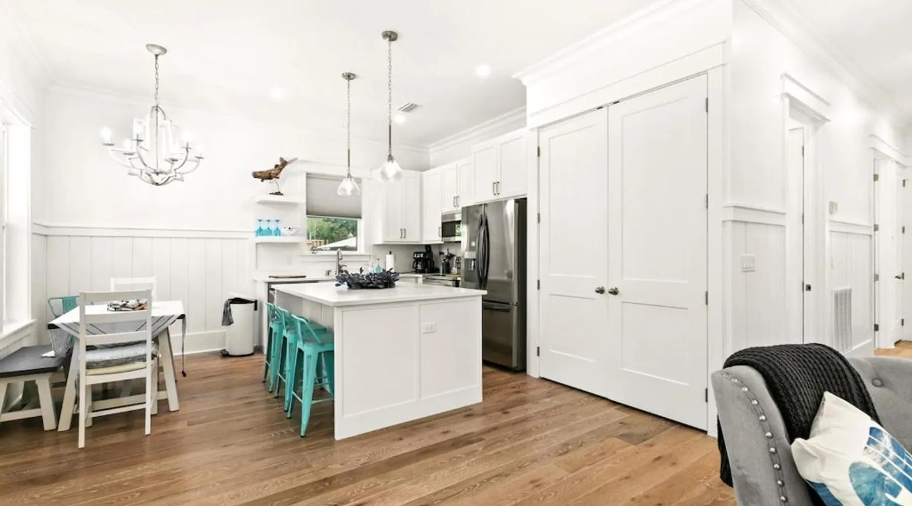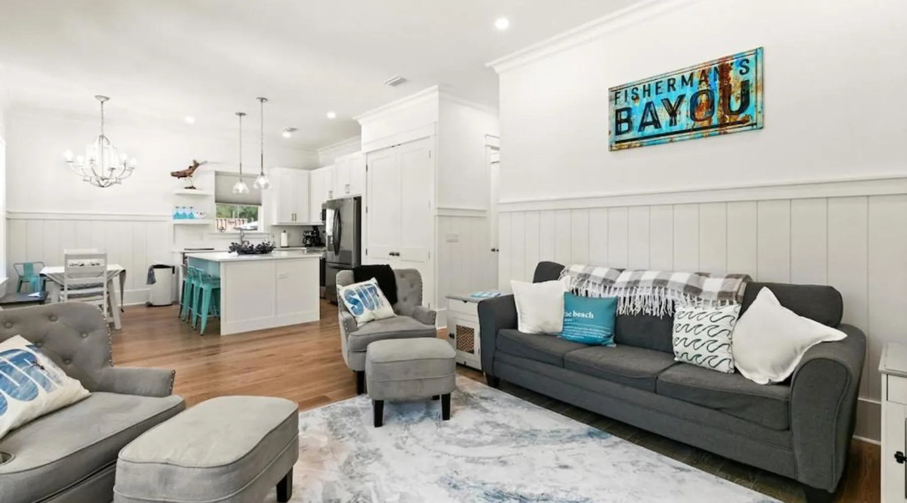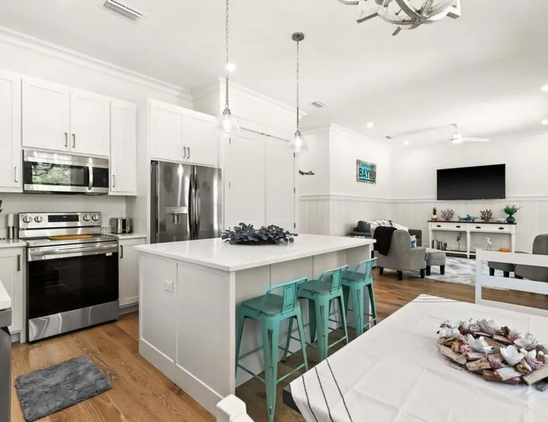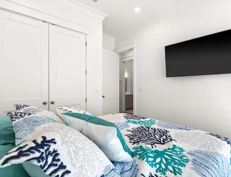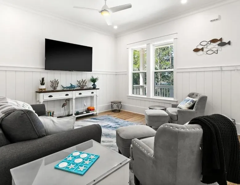 Spacious Holiday Home in Santa Rosa Beach: Barefoot Bayou offers a spacious holiday home in Santa Rosa Beach, featuring three bedrooms and two bathrooms. The property includes a living room, ensuring comfort for all guests. Modern Amenities and Facilities: Guests enjoy free WiFi, air-conditioning, and a fully equipped kitchen with a dishwasher and microwave. Additional amenities include a washing machine, patio, and barbecue. Free on-site parking is available. Outdoor and Leisure Activities: The property features a beautiful garden and provides access to cycling activities. Nearby attractions include Destin Harbor Boardwalk (19 mi) and Bluewater Bay Resort (22 mi). Featuring a private entrance, this air-conditioned apartment consists of 1 living room, 3 separate bedrooms and 2 bathrooms with a bath and a hairdryer. Guests will find a stovetop, a refrigerator, a dishwasher and kitchenware in the well-fitted kitchen. The apartment also provides guests with a barbecue. The spacious apartment provides a TV with cable channels, a washing machine, a tea and coffee maker, a wardrobe as well as lake views. The unit offers 5 beds.