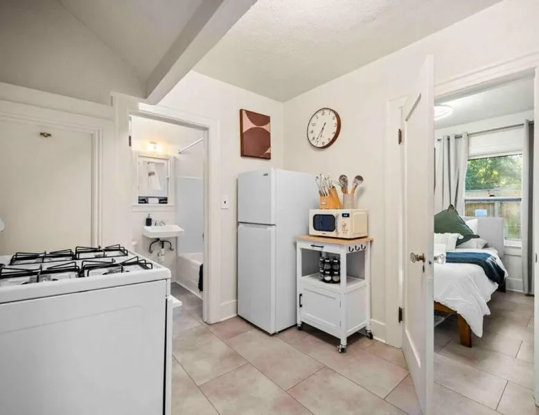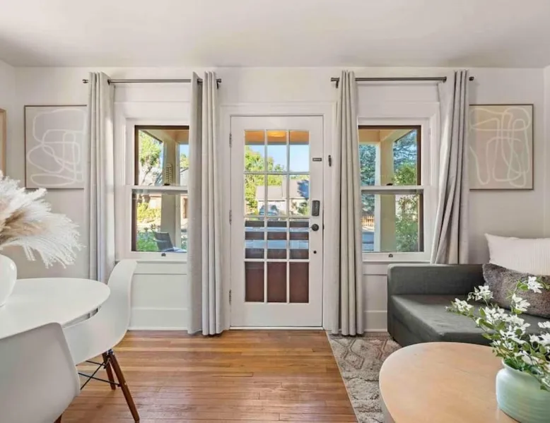 Comfortable Living: Desert Modern Downtown Flagstaff Unit with Hot Tub in Flagstaff offers a holiday home with one bedroom and a living room. The ground-floor unit features a private entrance, carpeted floors, and a sofa bed. Modern Amenities: Guests enjoy free WiFi, air-conditioning, a fitness center, and a garden. The property includes a hot tub, patio, kitchen, and dining area. Additional amenities include a work desk, TV, and free toiletries. Convenient Location: Located 3.7 mi from Flagstaff Pulliam Airport, the holiday home is near Northern Arizona University (1.2 mi) and Lowell Observatory (1.2 mi). An ice-skating rink is also in the vicinity. The hot tub is the standout feature of this holiday home. Boasting a private entrance, this air-conditioned holiday home includes 1 living room, 1 separate bedroom and 1 bathroom with a bath and a shower. In the well-fitted kitchen, guests will find a stovetop, a refrigerator, kitchenware and an oven. A seating area with a TV, a tea and coffee maker and a patio are offered in this holiday home. The unit has 2 beds.