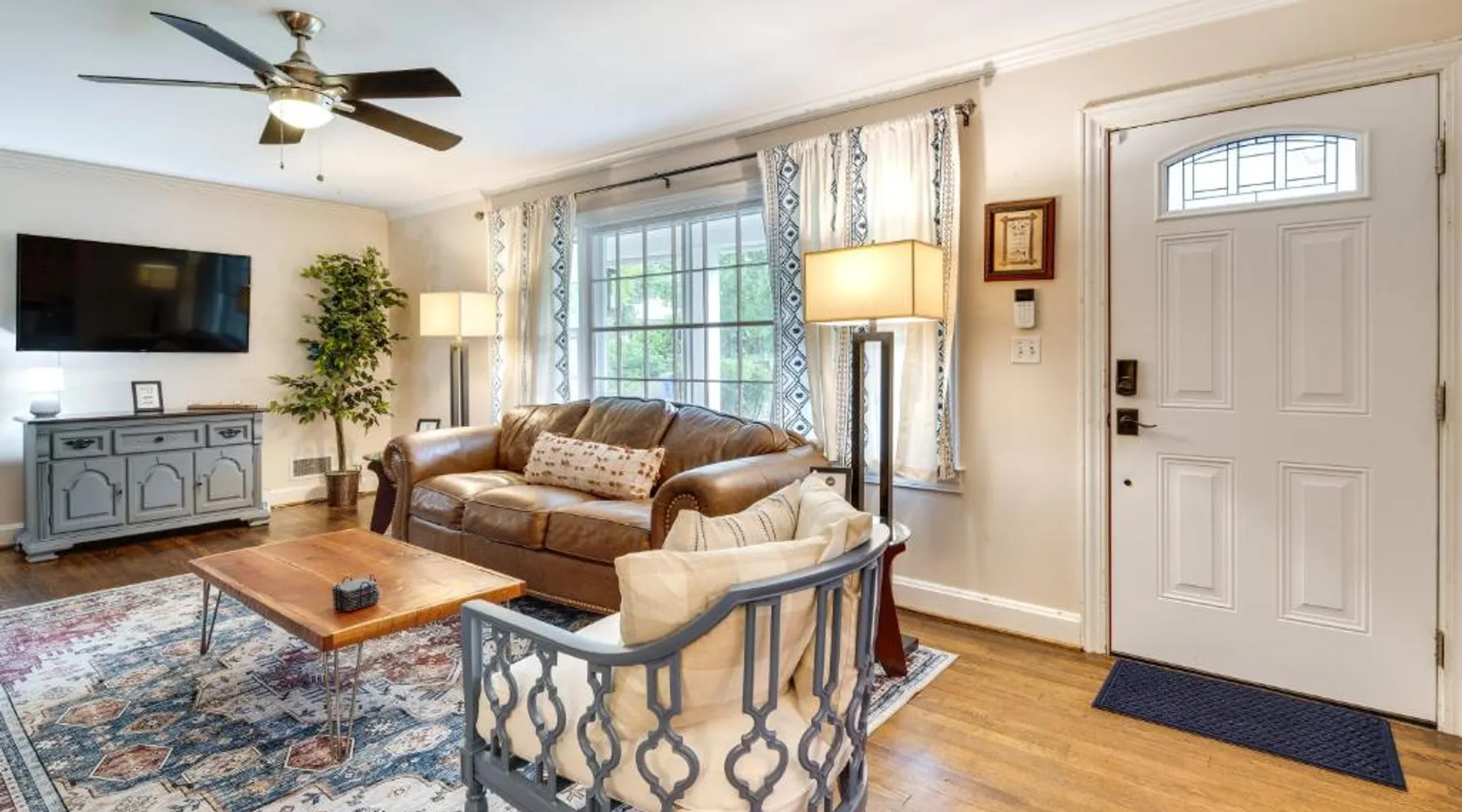 Spacious Accommodations: Hendersonville Haven with Fire Pit, Grill, Deck! in Hendersonville offers a spacious holiday home with three bedrooms and two bathrooms. The living room provides ample space for relaxation. Modern Amenities: Guests enjoy free WiFi, air-conditioning, and a fully equipped kitchen with a coffee machine, microwave, and dishwasher. Additional amenities include a washing machine, fireplace, and barbecue. Wellness and Leisure: The property features a spa and wellness center, perfect for relaxation. A private entrance and free toiletries enhance the comfort of the stay. Convenient Location: Located 11 mi from Asheville Regional Airport, the holiday home is near attractions such as Biltmore Estate (22 mi) and North Carolina Arboretum (17 mi). Highly rated by guests. This holiday home's special feature is the fireplace. This spacious holiday home consists of 1 living room, 3 separate bedrooms and 2 bathrooms with a bath and free toiletries. Guests will find a stovetop, a refrigerator, a dishwasher and kitchenware in the fully equipped kitchen. The holiday home also provides guests with a barbecue. This holiday home is air-conditioned and features a TV, a washing machine, a private entrance and a coffee machine. The unit offers 4 beds.