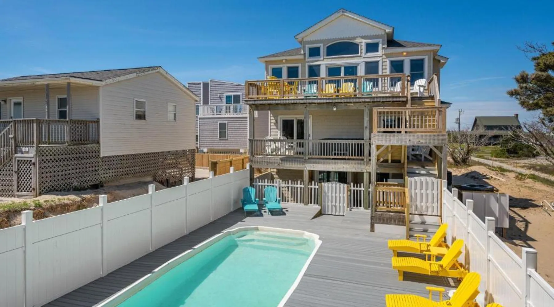 Beachfront and Free WiFi: SNH241 Ocean Oasis in Nags Head offers direct beachfront access and complimentary WiFi. Guests can relax on the balcony or enjoy the private pool. Spacious Accommodations: The holiday home features eight bedrooms and five bathrooms, ensuring ample space for all visitors. Leisure Facilities: A games room provides entertainment, while free on-site parking adds convenience. Local Attractions: Norfolk International Airport is 90 mi away, offering easy travel options. Boasting 8 bedrooms and 5 bathrooms with a shower, this spacious holiday home has a seating area and private pool where you can relax. Guests will find a stovetop, a refrigerator, a dishwasher and kitchenware in the fully equipped kitchen. The holiday home also comes with a barbecue. This air-conditioned holiday home features a dining area, a flat-screen TV with satellite channels a washing machine and a balcony. The unit offers 10 beds.