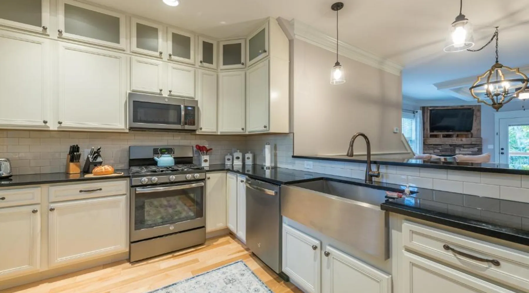 Spacious Accommodations: Mythical Manor Tudor-style Cottage in Black Mountain offers three bedrooms and three bathrooms. The spacious layout includes a dining area and a fully equipped kitchen with modern appliances. Modern Amenities: Guests enjoy free WiFi, air-conditioning, and a washing machine. The property features a patio, fireplace, barbecue, and a fully equipped kitchen with a dishwasher and microwave. Convenient Location: Located 23 mi from Asheville Regional Airport, the cottage is close to attractions such as Biltmore Estate (17 mi) and the Folk Art Center (11 mi). Free on-site parking is available. Guests will have a special experience as this holiday home provides a fireplace. Guests will find a stovetop, a refrigerator, a dishwasher and kitchenware in the well-fitted kitchen. The holiday home also has a barbecue. The spacious air-conditioned holiday home offers a TV, a washing machine, a tea and coffee maker and a dining area. The unit offers 3 beds.