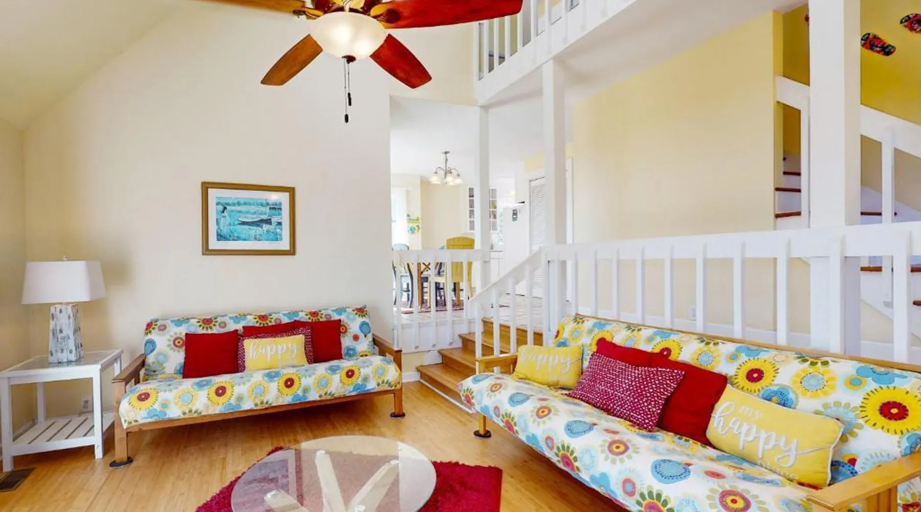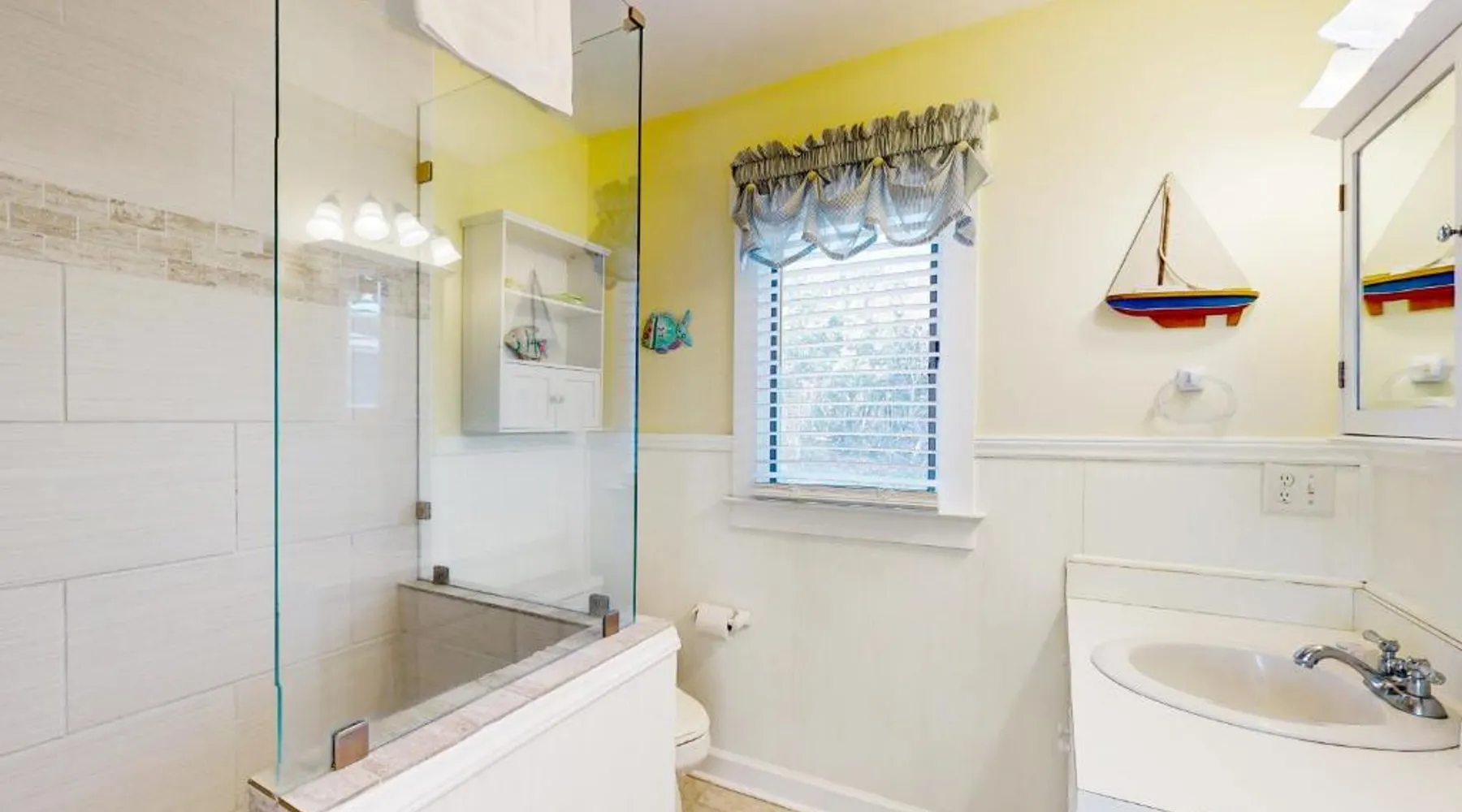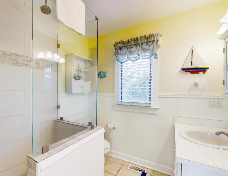 Spacious Accommodations: Mystic Heights in Emerald Isle offers a spacious holiday home with three bedrooms and two bathrooms. The property features a private entrance and a fully equipped kitchen with modern appliances. Outdoor Amenities: Guests can relax in the outdoor seating area with sea views or on the terrace and balcony. The property includes an outdoor furniture set and a patio for outdoor dining. Comfortable Living: The home is equipped with air-conditioning, a washing machine, and a work desk. Additional amenities include streaming services, a dishwasher, and free toiletries. Prime Location: Emerald Isle Beach is a 1-minute walk away, and Albert J. Ellis Airport is 40 mi from the property. Nearby attractions include Emerald Isle Marina and the Emerald Isle Golf Club. Featuring 3 bedrooms and 2 bathrooms with a hairdryer, this spacious holiday home offers a well-fitted kitchen and a terrace. In the fully equipped kitchen, guests will find a stovetop, a refrigerator, a dishwasher and kitchenware. The air-conditioned holiday home provides a TV with streaming services, a washing machine, a private entrance, a tea and coffee maker as well as sea views. The unit has 6 beds.