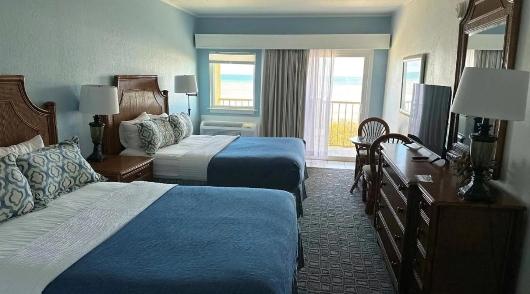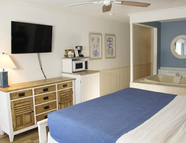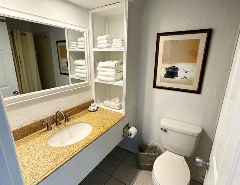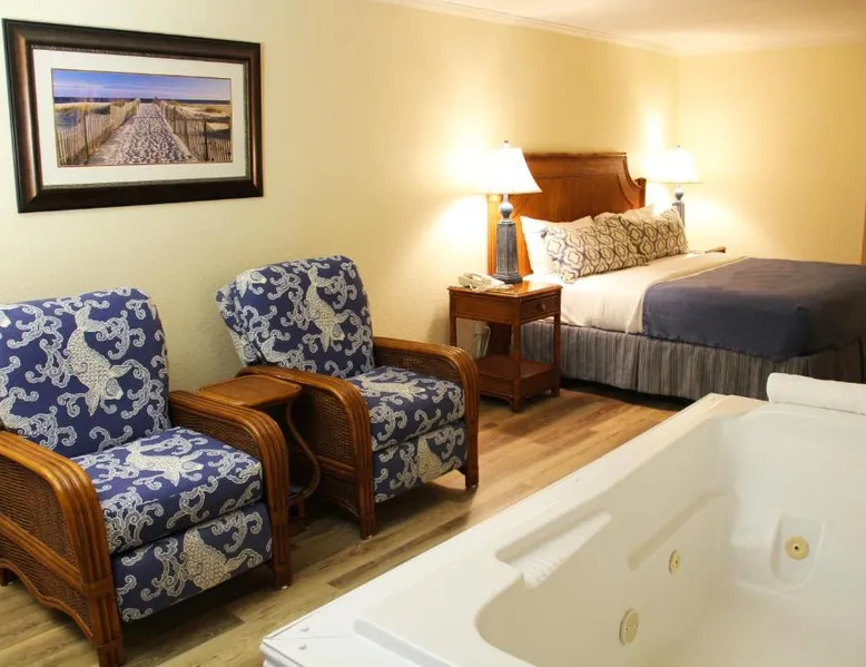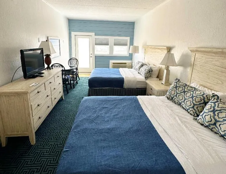 Beachfront Location: Surf Side Hotel in Nags Head offers direct beachfront access with stunning sea views. Guests can relax on the sun terrace or take a dip in the swimming pool with a view. Comfortable Accommodations: Rooms feature air-conditioning, private bathrooms, and modern amenities such as free WiFi, streaming services, and flat-screen TVs. Additional facilities include a lounge, hot tub, and outdoor seating area. Delicious Breakfast: A buffet breakfast is served daily, including local specialties, warm dishes, fresh pastries, fruits, and juices. Guests appreciate the variety and quality of the morning meal. Nearby Attractions: Nags Head Beach is just a few steps away, providing easy access to the beach. Other activities include fishing and exploring the surrounding area. Offering free toiletries, this double room includes a private bathroom with a bath, a shower and a hairdryer. The spacious air-conditioned double room offers a flat-screen TV with streaming services, soundproof walls, a tea and coffee maker, a seating area as well as sea views. The unit offers 2 beds.