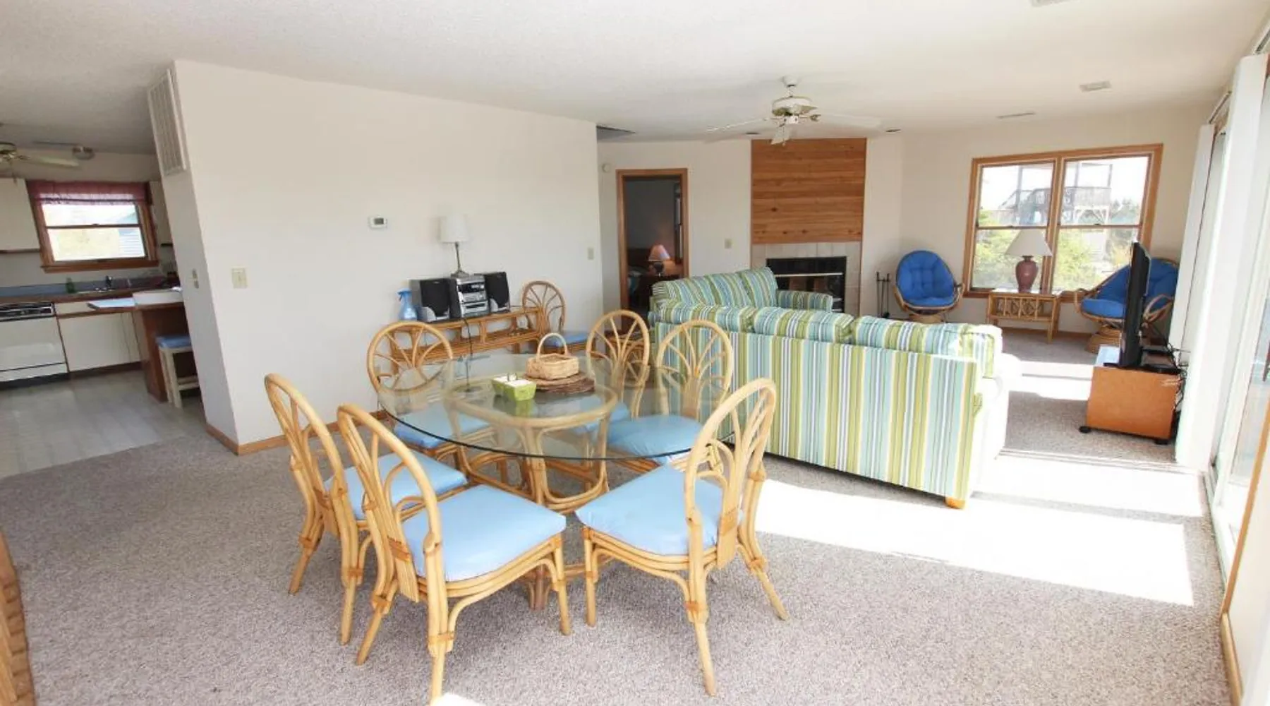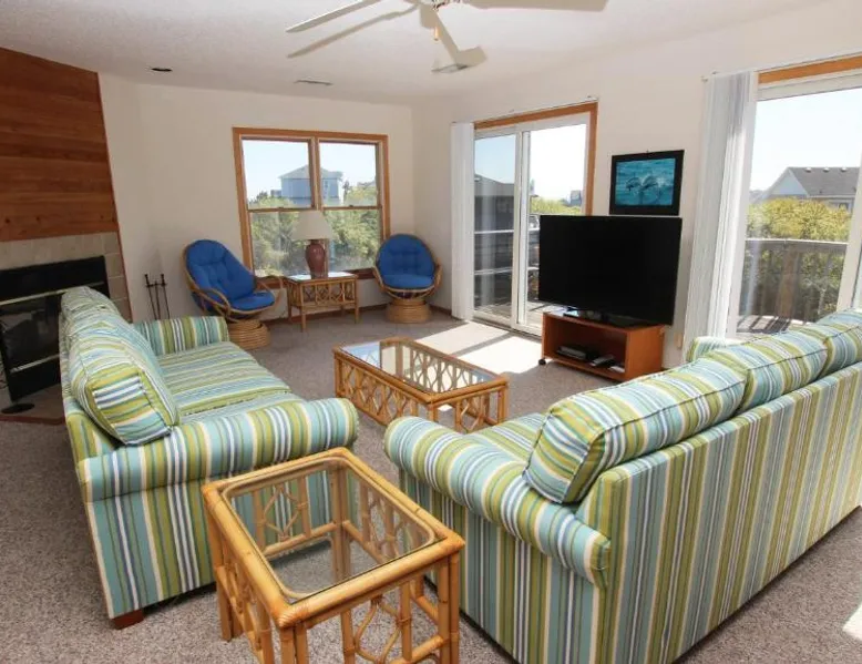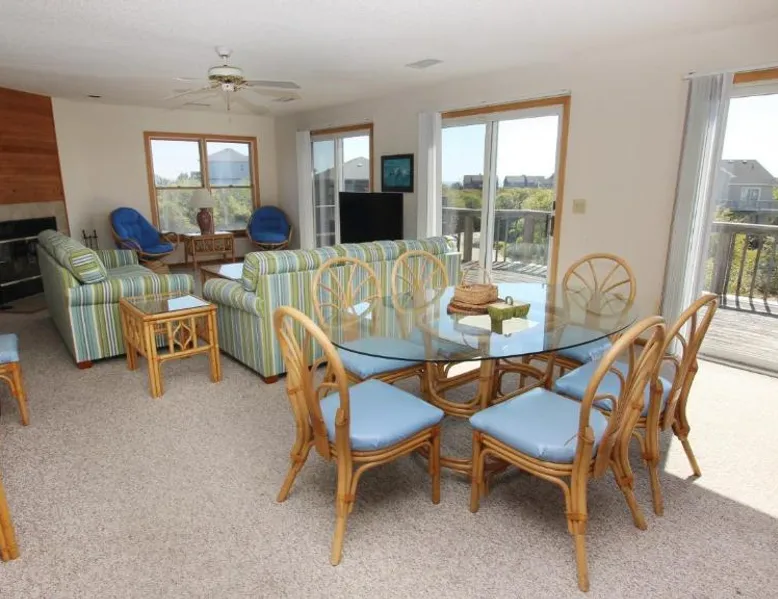 Spa and Wellness Center: Oceanside in Sanderling offers a spa and wellness center for relaxation. Guests can enjoy a waterpark and children's playground, providing entertainment for all ages. Comfortable Accommodations: The holiday home features five bedrooms and three bathrooms. Amenities include a fully equipped kitchen, washing machine, fireplace, barbecue, refrigerator, shower, dining area, kitchenware, oven, and stovetop. Local Attractions: Duck Beach is an 8-minute walk away, offering scenic views and beach activities. Norfolk International Airport is 81 mi from the property. The fireplace is the standout feature of this holiday home. Guests will find a stovetop, a refrigerator, kitchenware and an oven in the kitchen. The holiday home also comes with a barbecue. The holiday home features a washing machine, a dining area, tumble dryer, as well as a TV. The unit has 7 beds.
