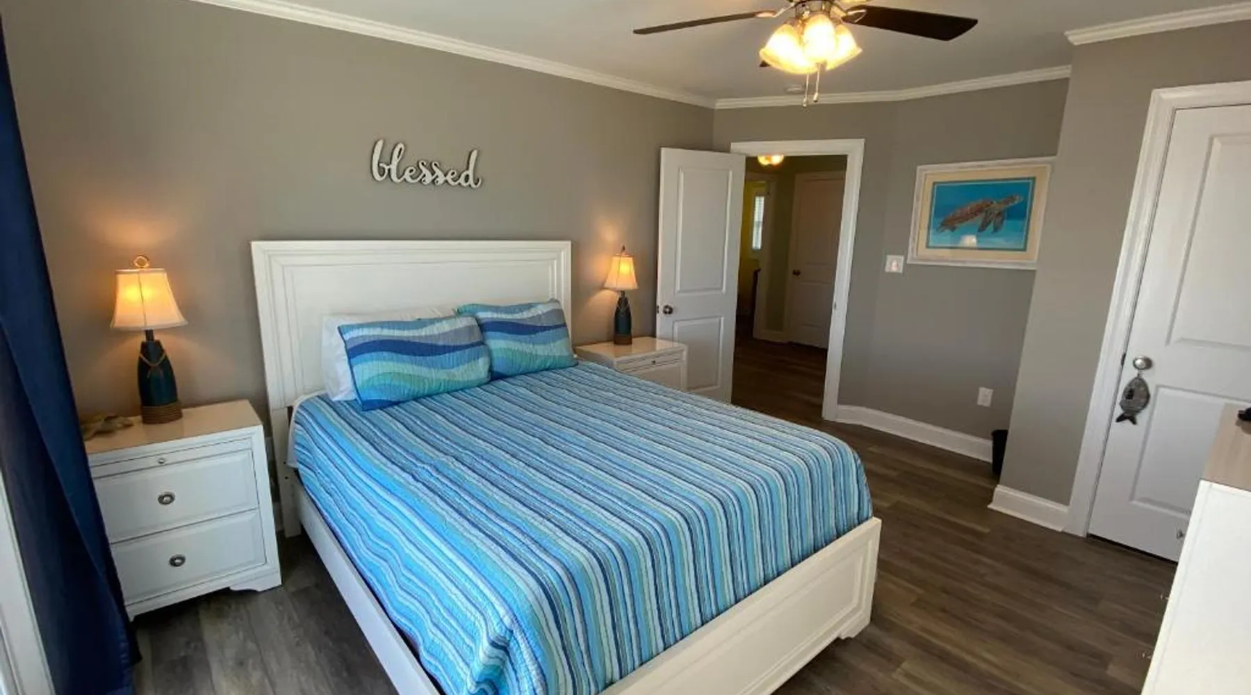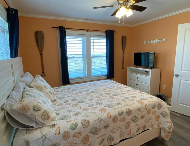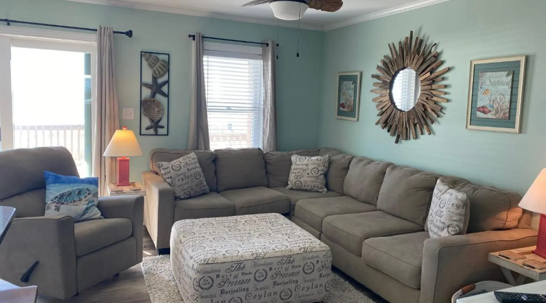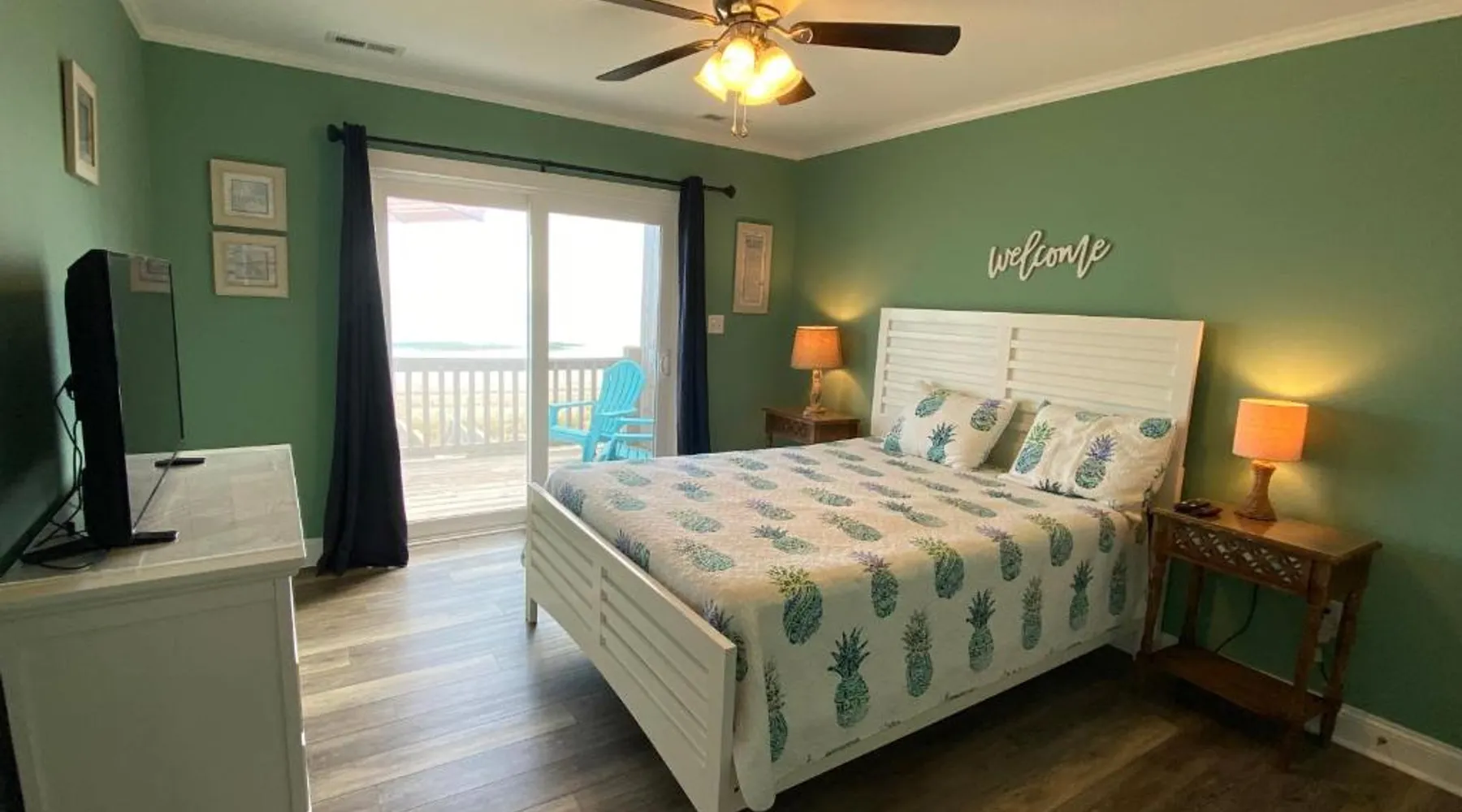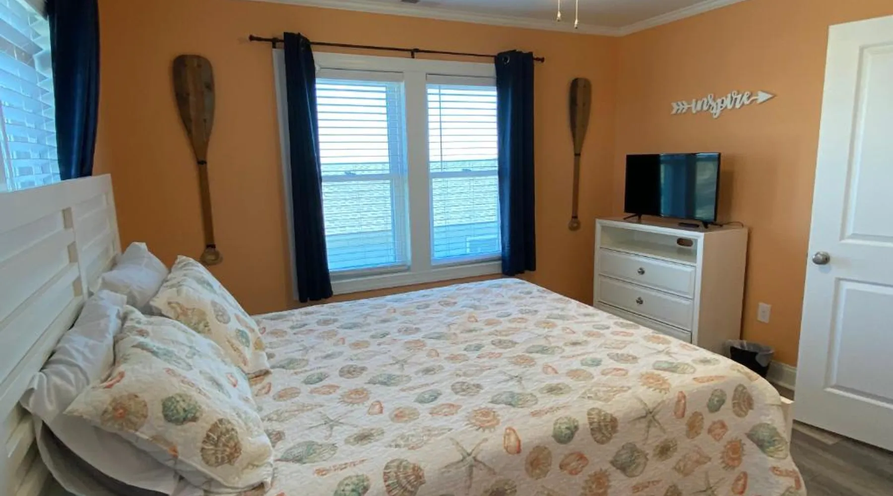 Beachfront Living: 2 if by Sea- East Unit in Emerald Isle offers direct beachfront access with a private beach area. Guests can relax on the sun terrace and enjoy sea views. Free WiFi is available throughout the property. Spacious Accommodations: The holiday home features four bedrooms and two bathrooms, ensuring ample space for all visitors. The living room includes a sofa and dining area, while the kitchen is equipped with modern appliances. Convenient Facilities: The property provides a lounge, outdoor seating area, picnic area, and bike hire. Free on-site private parking is available, and Albert J. Ellis Airport is 44 mi away. Emerald Isle Beach is just a few steps from the property. Featuring a private entrance, this air-conditioned holiday home consists of 1 living room, 4 separate bedrooms and 2 bathrooms with a bath and a shower. In the kitchen, guests will find a stovetop, a refrigerator, a dishwasher and kitchenware. The spacious holiday home provides a flat-screen TV with streaming services, a washing machine, a tea and coffee maker, a seating area as well as sea views. The unit offers 4 beds.