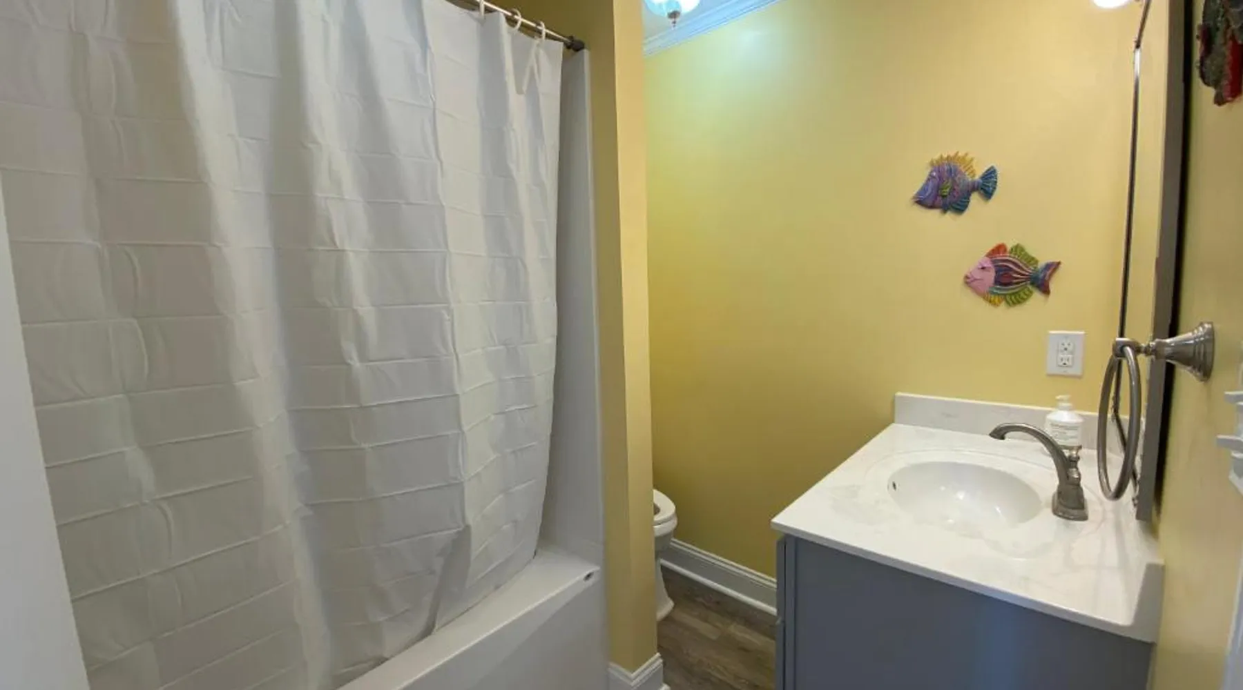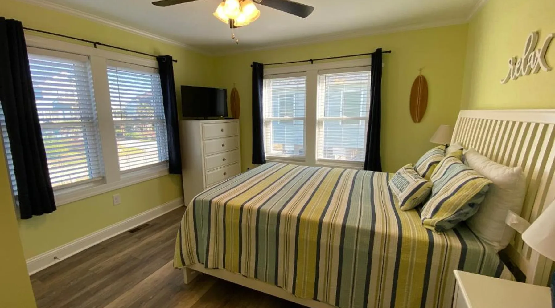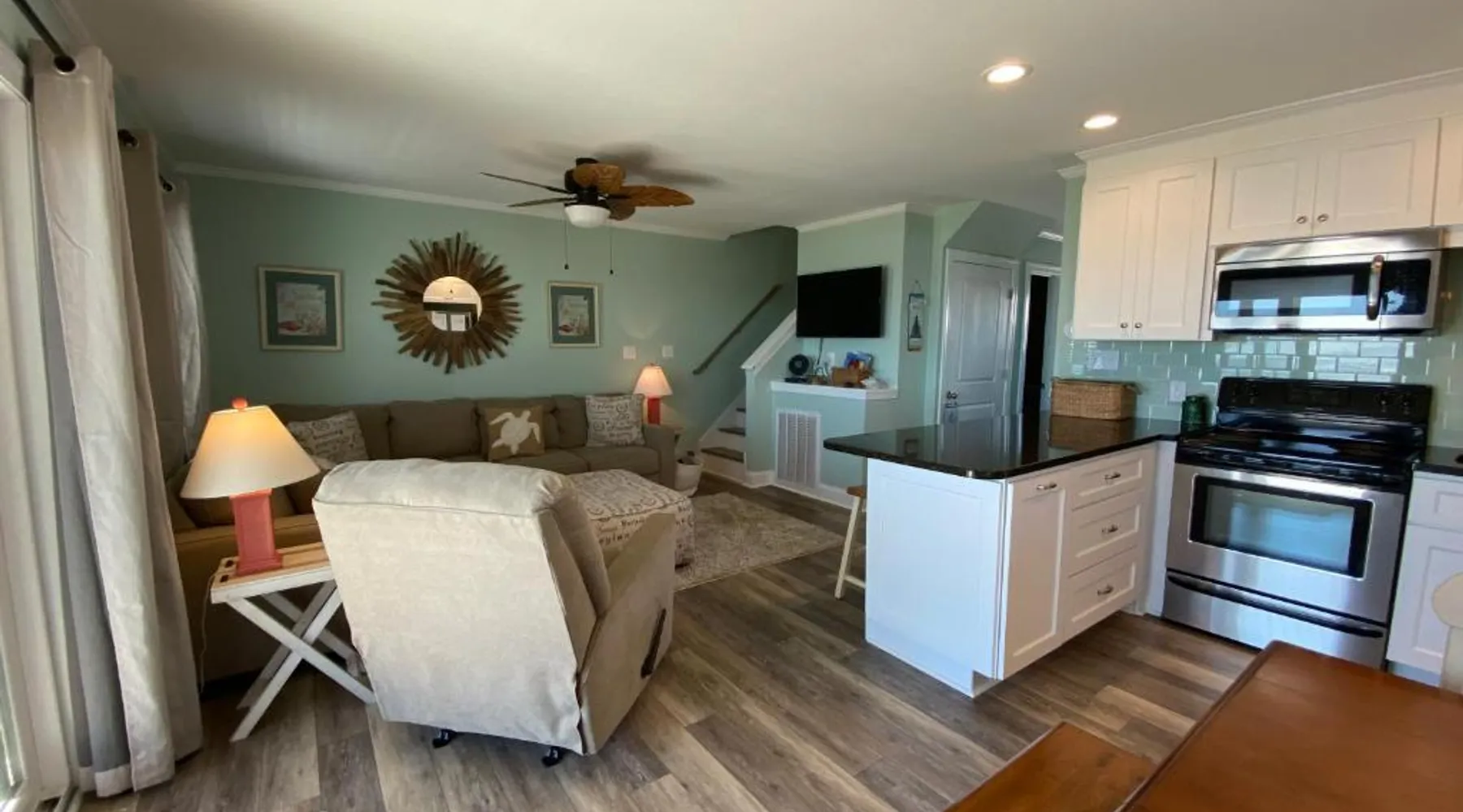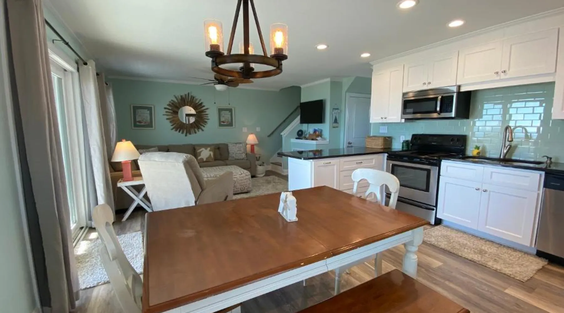 Beachfront Living: 2 if by Sea- East Unit in Emerald Isle offers direct beachfront access with a private beach area. Guests can relax on the sun terrace and enjoy sea views. Free WiFi is available throughout the property. Spacious Accommodations: The holiday home features four bedrooms and two bathrooms, ensuring ample space for all visitors. The living room includes a sofa and dining area, while the kitchen is equipped with modern appliances. Convenient Facilities: The property provides a lounge, outdoor seating area, picnic area, and bike hire. Free on-site private parking is available, and Albert J. Ellis Airport is 44 mi away. Emerald Isle Beach is just a few steps from the property. Featuring a private entrance, this air-conditioned holiday home consists of 1 living room, 4 separate bedrooms and 2 bathrooms with a bath and a shower. In the kitchen, guests will find a stovetop, a refrigerator, a dishwasher and kitchenware. The spacious holiday home provides a flat-screen TV with streaming services, a washing machine, a tea and coffee maker, a seating area as well as sea views. The unit offers 4 beds.