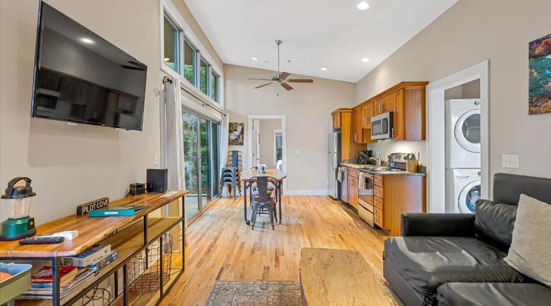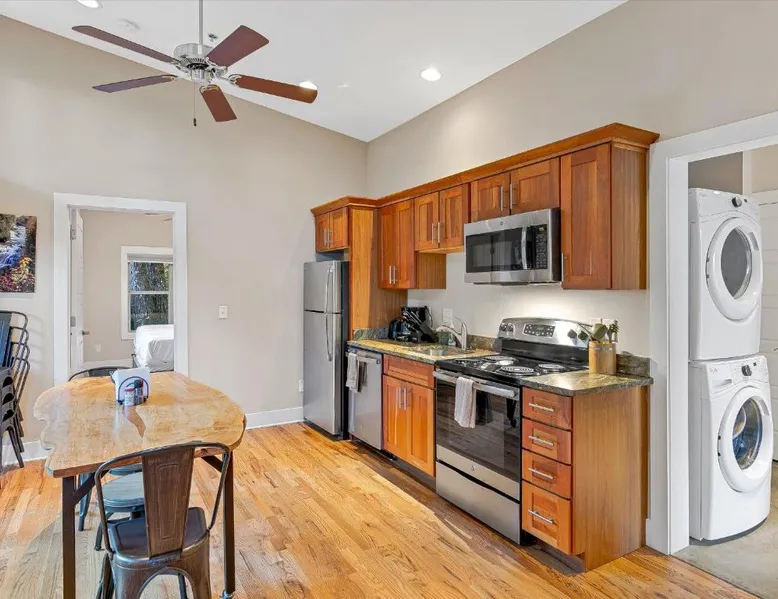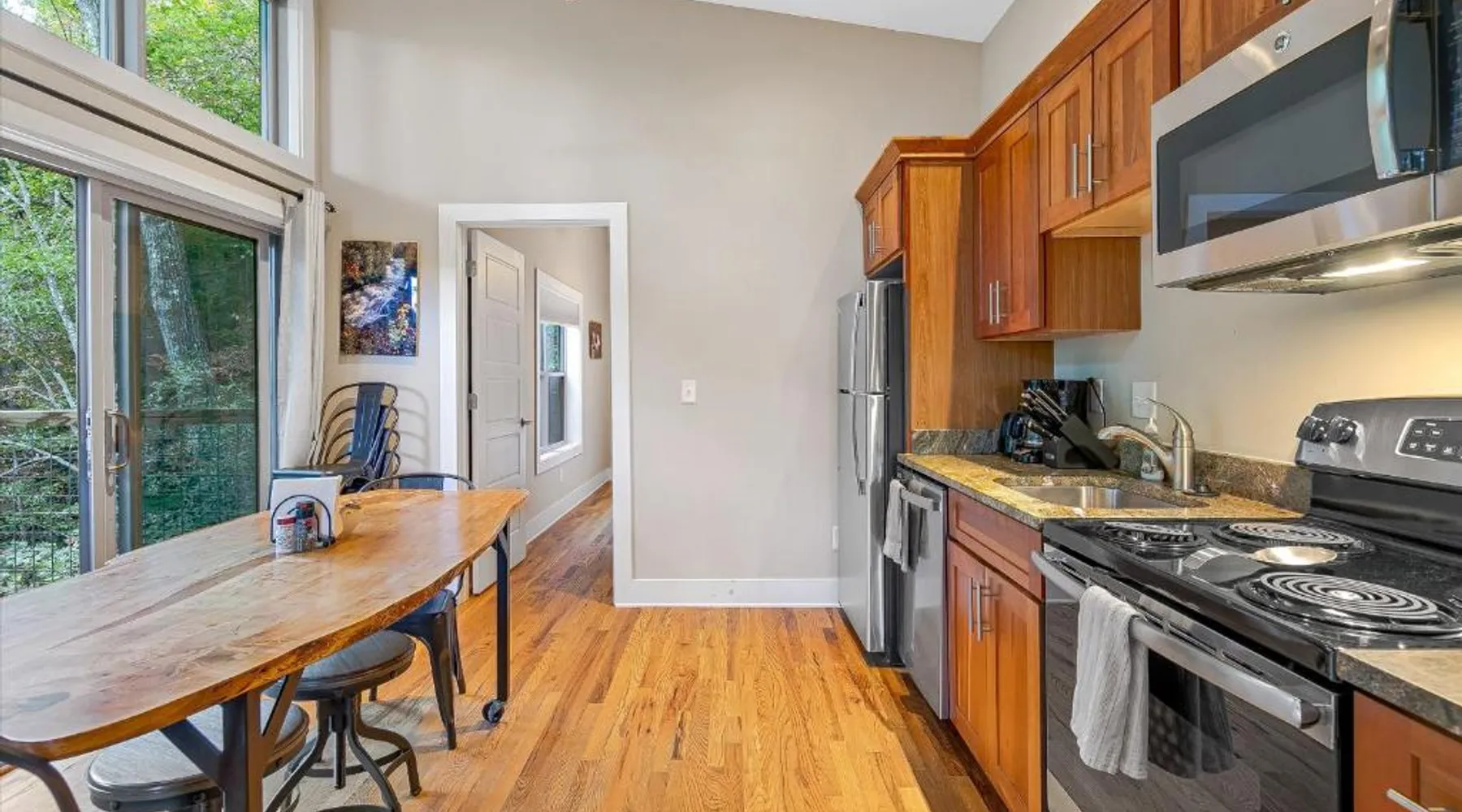 Comfortable Accommodations: Pilot Cove in Pisgah Forest offers family rooms with air-conditioning, private bathrooms, and modern amenities. Each room includes a balcony or terrace with mountain views, a kitchen, and a dining area. Essential Facilities: Guests enjoy free WiFi, a terrace, and free on-site private parking. Additional amenities include streaming services, a washing machine, and a dishwasher. Convenient Location: Located 15 mi from Asheville Regional Airport, Pilot Cove is near attractions such as Biltmore Estate (30 mi), Caesars Head State Park (19 mi), and the North Carolina Arboretum (22 mi). Guest Favorites: Visitors appreciate the convenient location, bike/bicycle rentals, and comfortable rooms. Boasting a private entrance, this air-conditioned holiday home features 1 living room, 1 separate bedroom and 1 bathroom with a walk-in shower and a hairdryer. Guests can make meals in the kitchen that has a stovetop, a refrigerator, a dishwasher and an oven. Featuring a terrace with mountain views, this holiday home also features a washing machine and a flat-screen TV with streaming services. The unit has 4 beds.