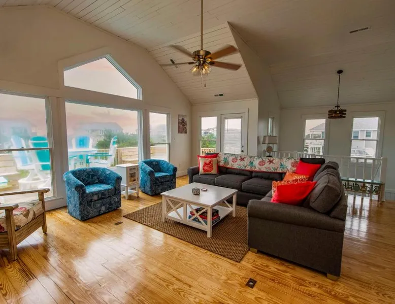 Nestled between the Atlantic Ocean and Currituck Sound, this oceanfront retreat offers a variety of accommodations, each featuring private balconies or patios with ocean, sound, or resort views. Thoughtfully designed interiors create a serene, stylish ambiance, perfect for a relaxing escape. Guests can indulge in a diverse culinary experience, including the highly anticipated Theodosia, an all-new dining concept by renowned chef Vivian Howard, set to debut in late Spring 2025. The resort also features the renewed Beach House Bar, ideal for morning coffee, craft cocktails, and sunset views by the firepit. The Sanderling is located just 3.9 mi from Duck, NC, and 11 mi from the Currituck Beach Lighthouse, with easy access to the Wright Brothers National Memorial and other top Outer Banks attractions. The apartment offers air conditioning. The unit has 7 beds.
