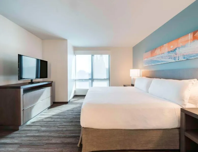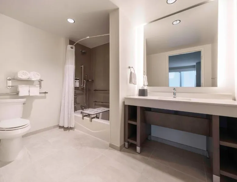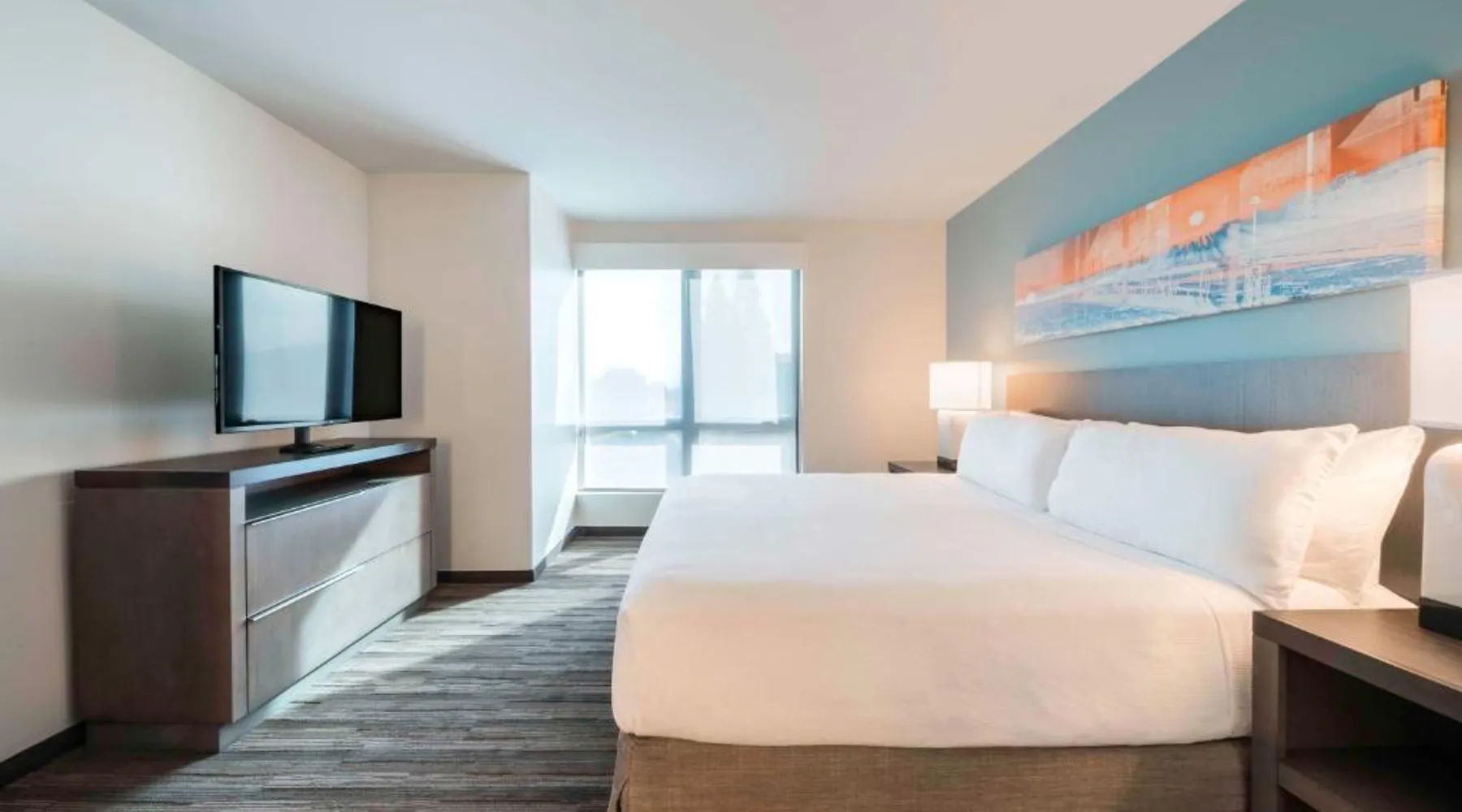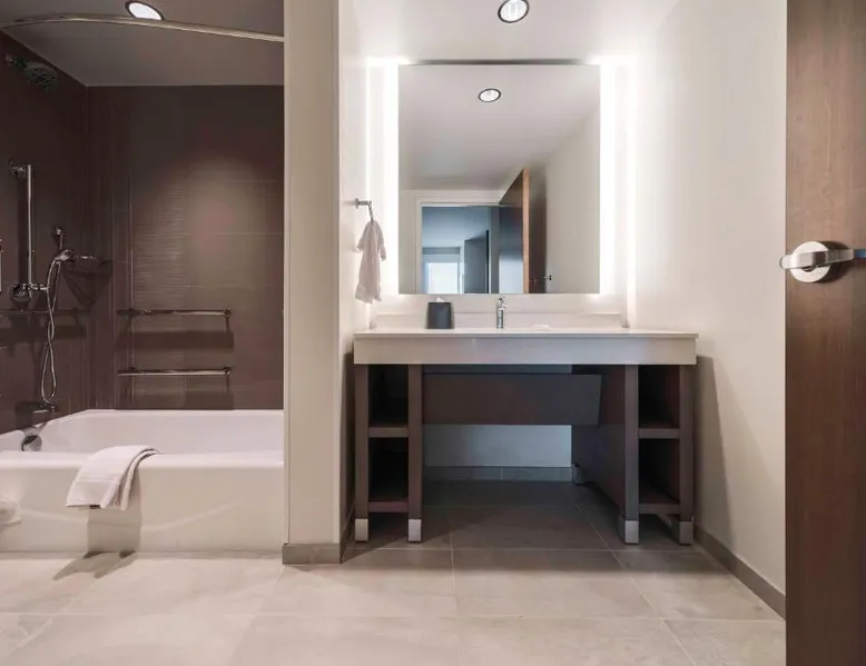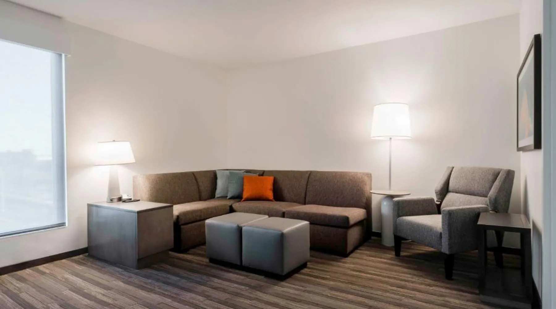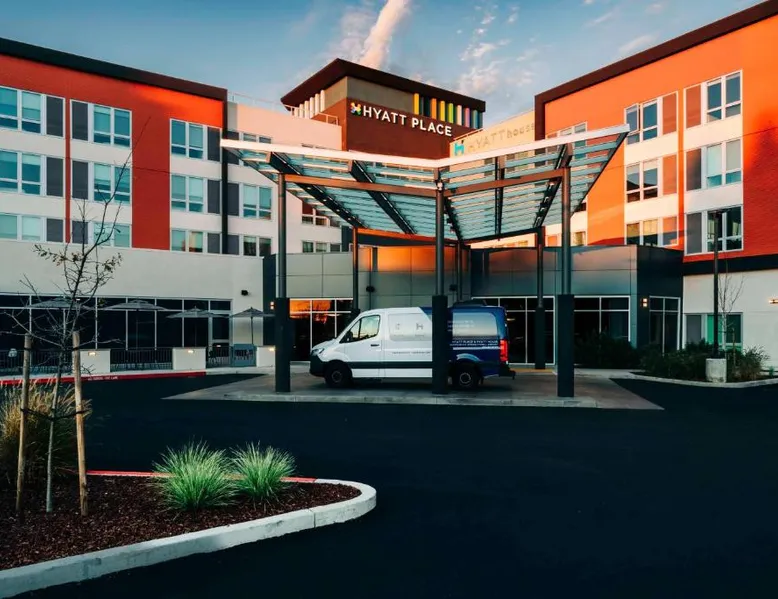 Comfortable Accommodations: Hyatt House Sacramento Airport - Natomas in Sacramento offers comfortable rooms with air-conditioning, private bathrooms, and modern amenities. Guests enjoy free WiFi, work desks, and flat-screen TVs. Exceptional Facilities: The hotel features a fitness center, year-round outdoor swimming pool, and a family-friendly restaurant serving dinner. Additional facilities include a bar, outdoor fireplace, and free airport shuttle service. Convenient Location: Located 3.1 mi from Sacramento International Airport, the hotel is near attractions such as Discovery Park (4.3 mi) and the Crocker Art Museum (6.2 mi). Free WiFi is available throughout the property. Guest Satisfaction: Highly rated for its attentive staff, comfortable rooms, and impeccable cleanliness, Hyatt House Sacramento Airport - Natomas ensures a pleasant stay for all guests. This air-conditioned suite is consisted of of a flat-screen TV with cable channels and a private bathroom.