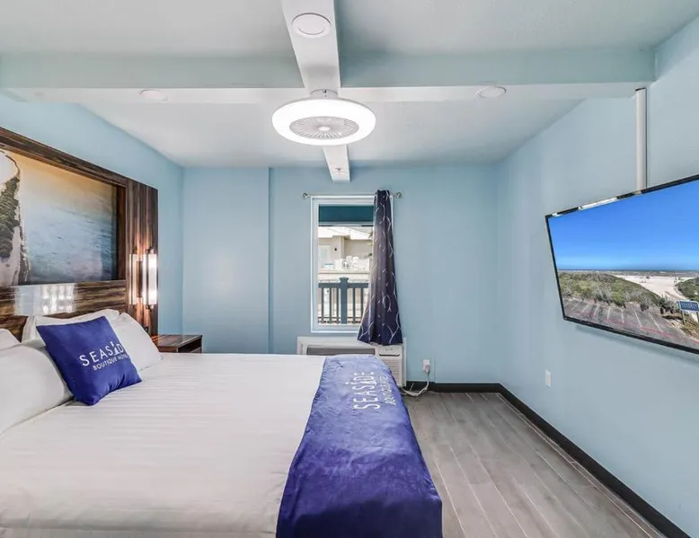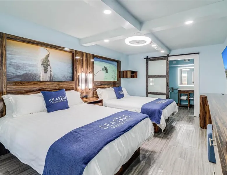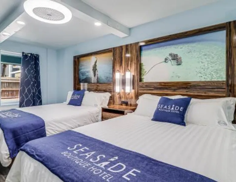 Comfortable Accommodations: Seaside Boutique Hotel in Port Aransas offers family rooms with sea views, kitchenettes, and private bathrooms. Each room includes air-conditioning, a work desk, and free WiFi. Leisure Facilities: Guests can relax on the sun terrace or enjoy the year-round outdoor swimming pool. Additional amenities include a minimarket, outdoor seating area, and free on-site private parking. Prime Location: Located a 3-minute walk from Port Aransas Beach and 38 mi from Corpus Christi International Airport. Nearby attractions include Port Aransas Marina and Mustang Island Art Gallery. Highly rated for beach access and excellent service. Featuring free toiletries, this suite includes a private bathroom with a walk-in shower and a hairdryer. The spacious air-conditioned suite features a flat-screen TV with streaming services, soundproof walls, a tea and coffee maker, a seating area as well as sea views. The unit has 5 beds.