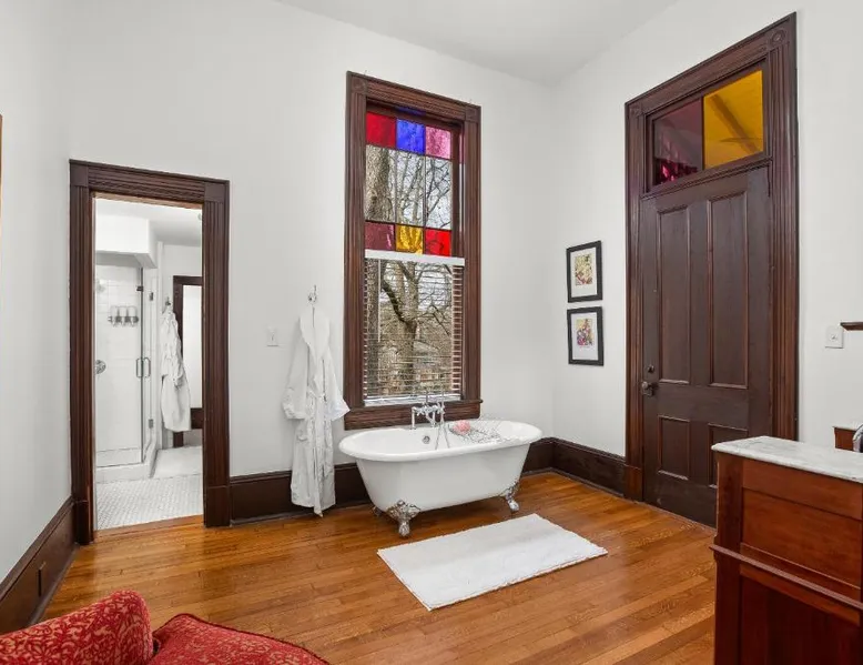 Comfortable Accommodations: Summit Street Inns in Winston-Salem offers family rooms with private bathrooms, air-conditioning, and free WiFi. Each room includes a tea and coffee maker, walk-in shower, and parquet floors. Exceptional Facilities: Guests can relax in the garden or terrace, enjoy the outdoor seating area, and utilize the picnic space. The property features a lounge, business area, and free on-site private parking. Delicious Breakfast: A variety of breakfast options are available, including continental, American, and gluten-free. The restaurant is highly rated by guests for its quality and service. Prime Location: Located 20 mi from Piedmont Triad Airport, the hotel is near attractions such as Old Salem (1.4 mi) and M C Benton Jr Convention Center (less than 0.6 mi). Free WiFi is accessible throughout the property. The spacious double room features air conditioning, a private entrance, as well as a private bathroom boasting a walk-in shower and a hairdryer. The unit has 1 bed.