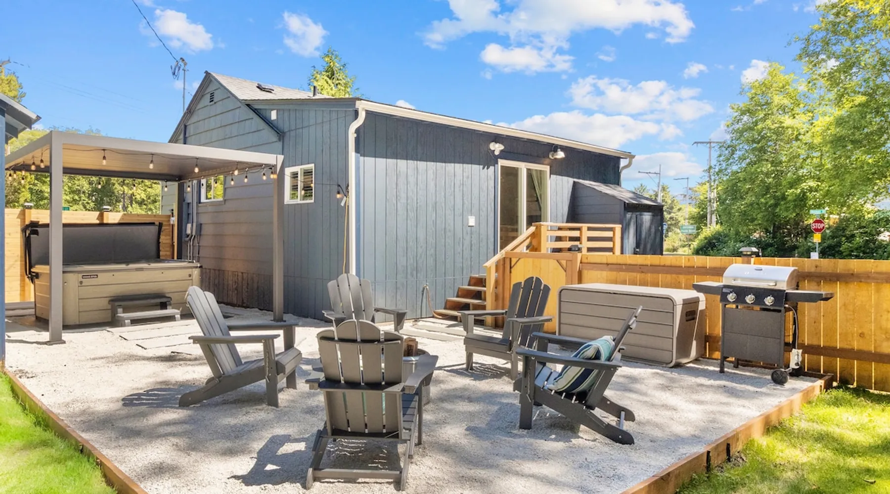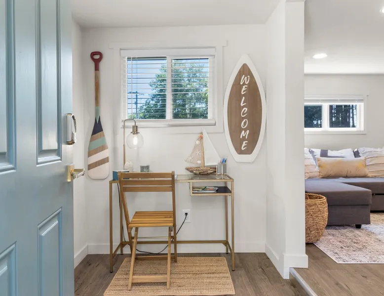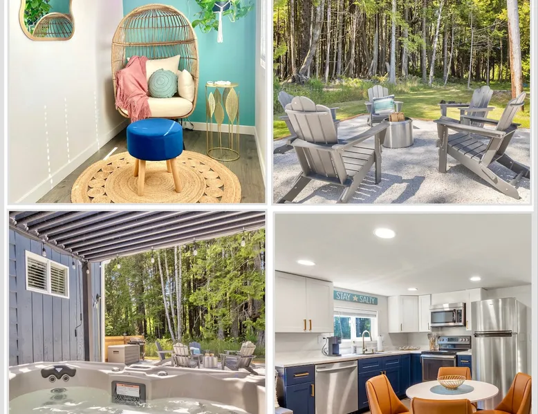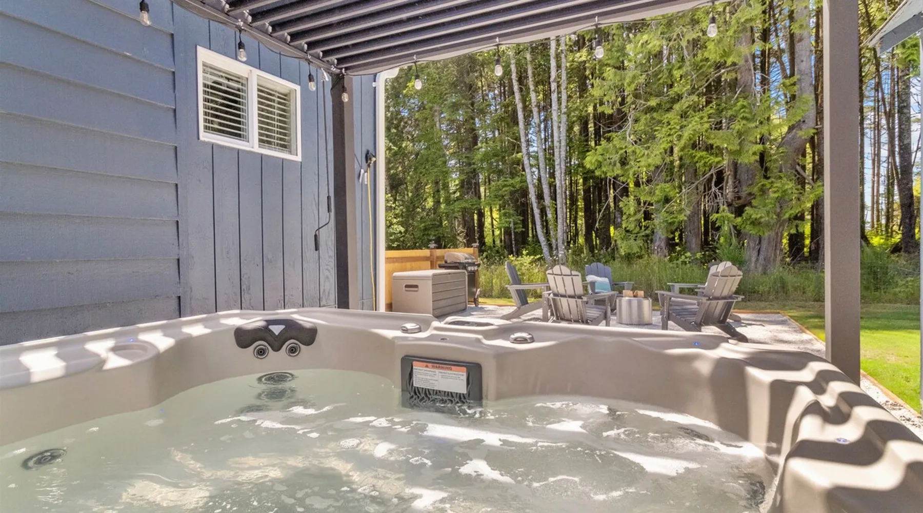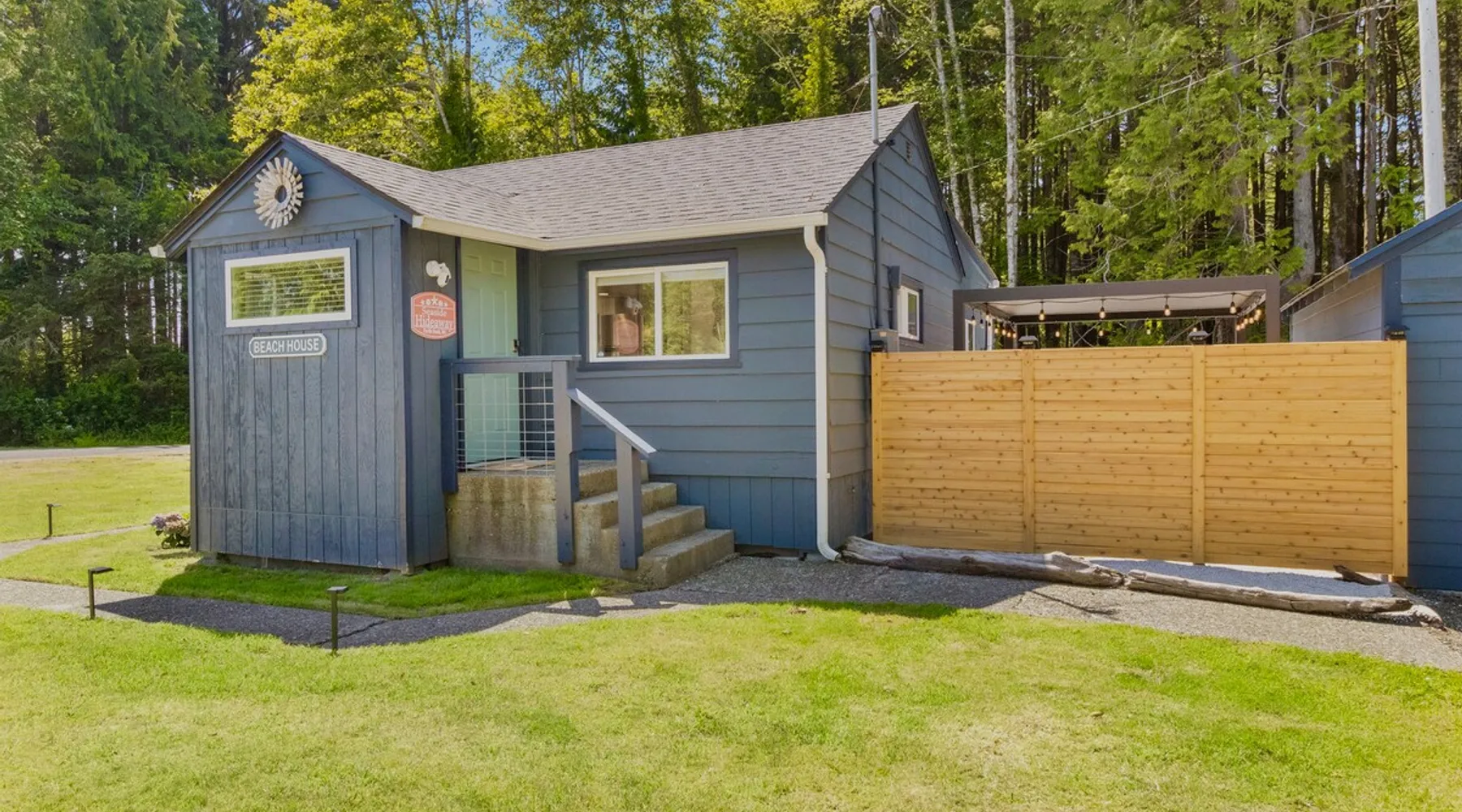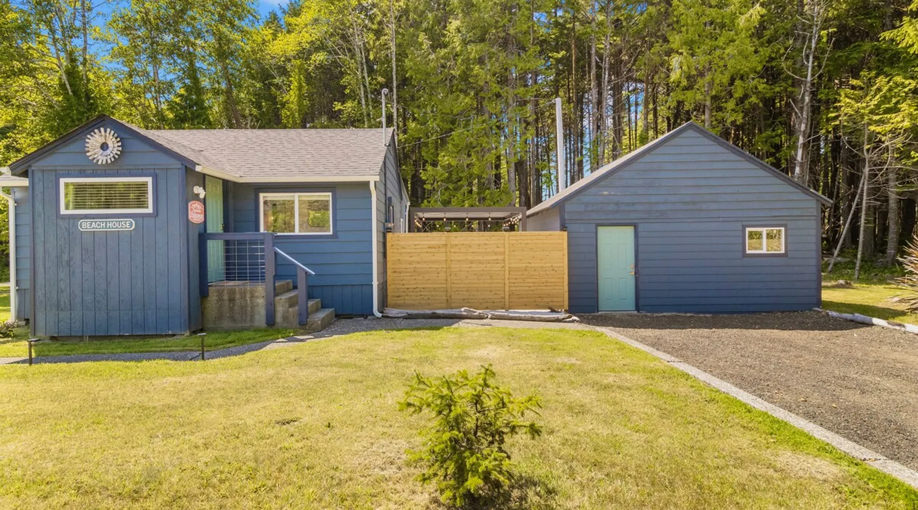 The Seaside Hideaway is the perfect private beach getaway where you can relax and recharge. Enjoy a quick 3 minute walk right onto the sandy beach or drive if preferred. The wide open beautiful beach is perfect for relaxing, swimming, clamming, kite flying, and watching sunsets. Also located only 1 mile from the adorable beach town of Seabrook! Enjoy the boutique shops, book store, toy store, ice cream/candy store, Bakery, restaurants, wine bar, spa, arcade, grocery market and so much more. The space Whether you are traveling with your family, on a romantic getaway, or a fun friend's trip, our property has everything you will need. We welcome you to our Seaside Hideaway and hope you enjoy our: * Hot tub that is under an opening/closing Pergola, so you can enjoy in rain or sunshine. * Fire Pit surrounded by a peaceful wooded scenery and crushed oyster shells for the best PNW beach vibe. * Lounge in comfy Adirondack chairs while making smores or enjoying some wine. * Grill for yummy outside dining * Beach Equipment provided for all day fun at the beach * Fully stocked kitchen with all the appliances and cookware you may need. Just hit up the Grocery Market in Seabrook for food supplies and enjoy all your family's favorite meals. * Relaxing reading nook. Sip your morning coffee with a good book. * Wifi * Our 2 smart TV's for family movie nights or bingeing shows. * Luxury new Queen Bed to get the restful sleep you deserve to recharge * Pull out sleeper sofa with extra blankets and pillows provided for sofa sleeping * Comfy Bunk Beds that can be used by kiddos, teenagers, or adults. * Supplies/toys for children * Games for every age * Washer and Dryer * AC for those hot summer days Check us out on IG at @seasidehideaway.wa and tag us!!! We can not wait to help you enjoy the vacation you deserve. STAY SALTY! Other things to note Please note that our cozy beach cottage has roughly 6’9” ceilings in the main living area.