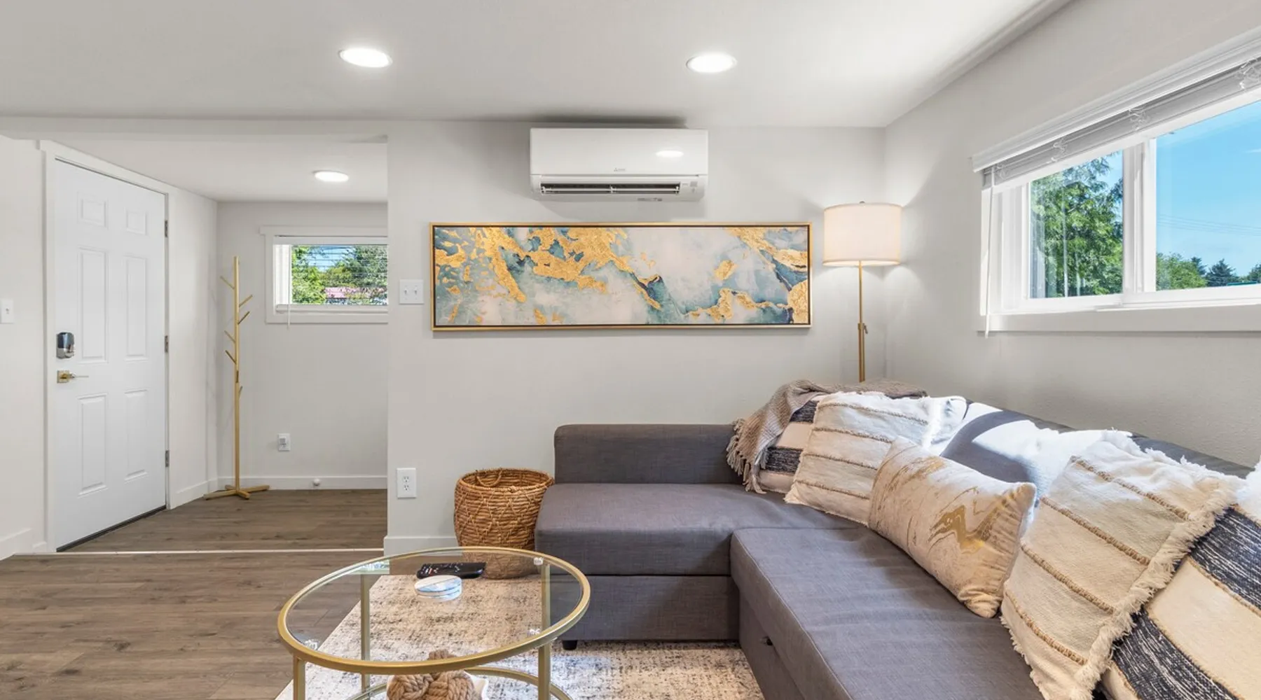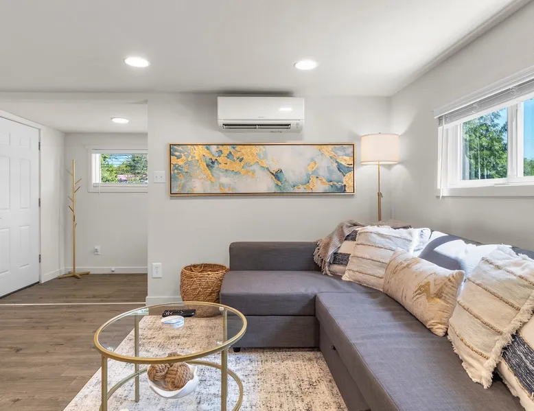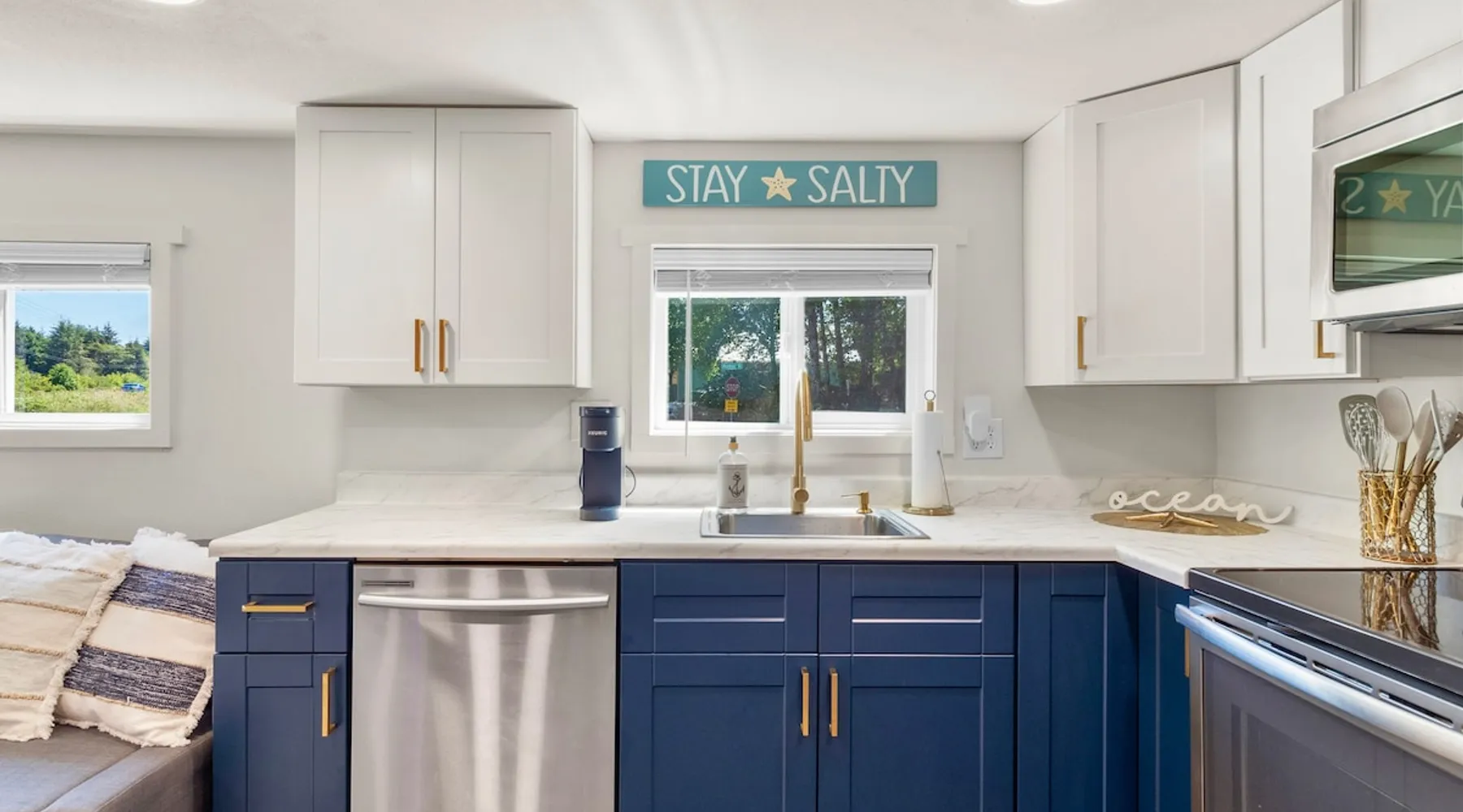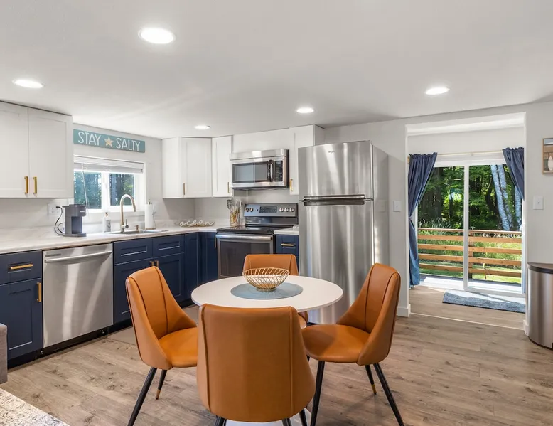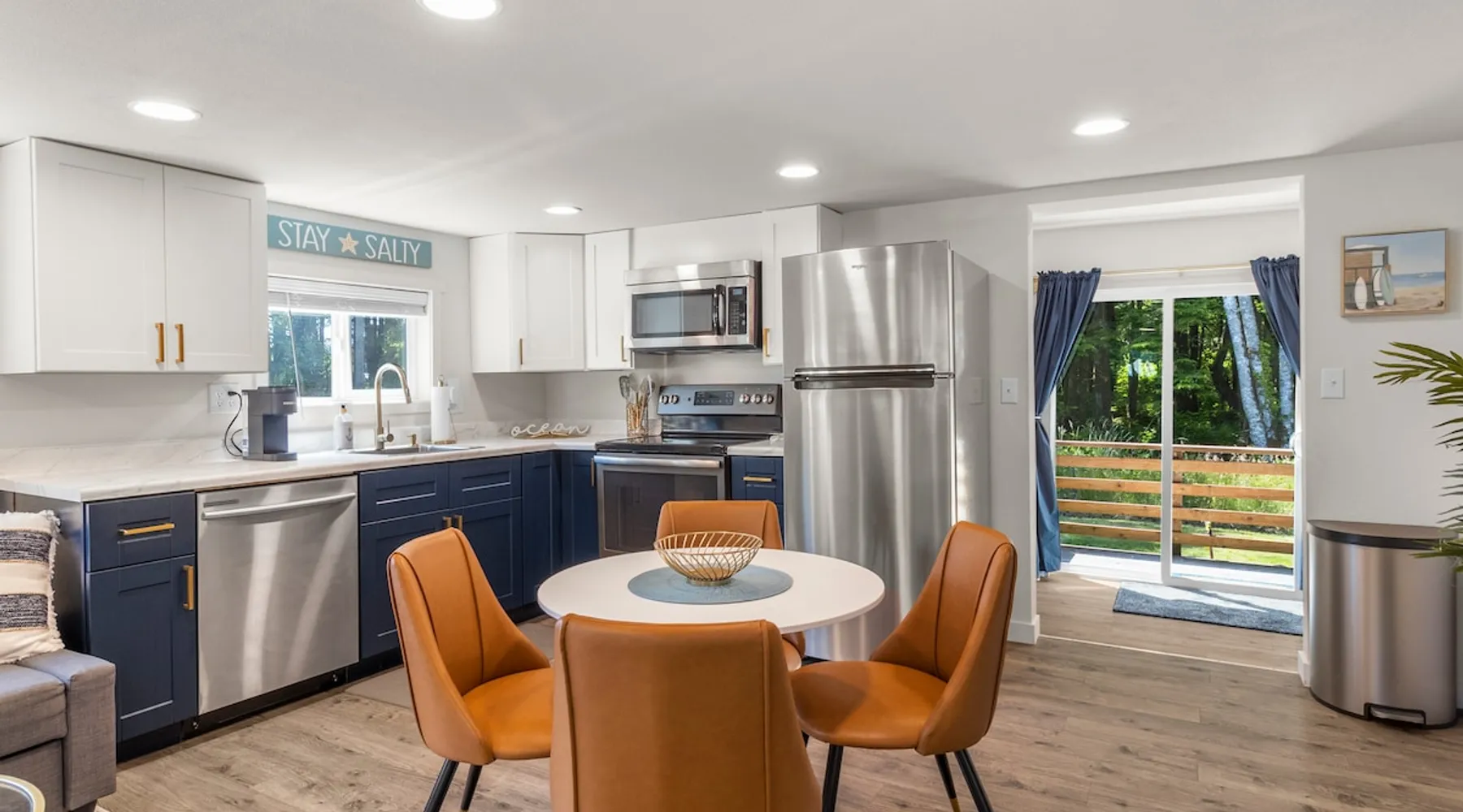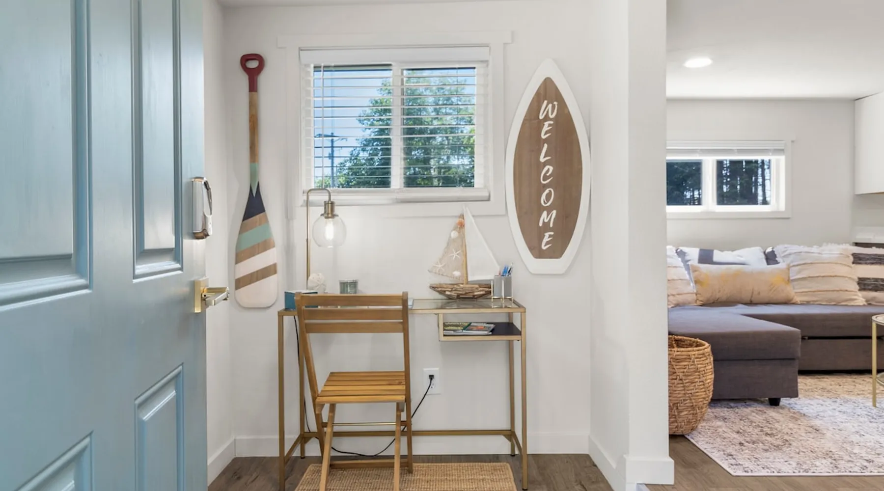 The Seaside Hideaway is the perfect private beach getaway where you can relax and recharge. Enjoy a quick 3 minute walk right onto the sandy beach or drive if preferred. The wide open beautiful beach is perfect for relaxing, swimming, clamming, kite flying, and watching sunsets. Also located only 1 mile from the adorable beach town of Seabrook! Enjoy the boutique shops, book store, toy store, ice cream/candy store, Bakery, restaurants, wine bar, spa, arcade, grocery market and so much more. The space Whether you are traveling with your family, on a romantic getaway, or a fun friend's trip, our property has everything you will need. We welcome you to our Seaside Hideaway and hope you enjoy our: * Hot tub that is under an opening/closing Pergola, so you can enjoy in rain or sunshine. * Fire Pit surrounded by a peaceful wooded scenery and crushed oyster shells for the best PNW beach vibe. * Lounge in comfy Adirondack chairs while making smores or enjoying some wine. * Grill for yummy outside dining * Beach Equipment provided for all day fun at the beach * Fully stocked kitchen with all the appliances and cookware you may need. Just hit up the Grocery Market in Seabrook for food supplies and enjoy all your family's favorite meals. * Relaxing reading nook. Sip your morning coffee with a good book. * Wifi * Our 2 smart TV's for family movie nights or bingeing shows. * Luxury new Queen Bed to get the restful sleep you deserve to recharge * Pull out sleeper sofa with extra blankets and pillows provided for sofa sleeping * Comfy Bunk Beds that can be used by kiddos, teenagers, or adults. * Supplies/toys for children * Games for every age * Washer and Dryer * AC for those hot summer days Check us out on IG at @seasidehideaway.wa and tag us!!! We can not wait to help you enjoy the vacation you deserve. STAY SALTY! Other things to note Please note that our cozy beach cottage has roughly 6’9” ceilings in the main living area.