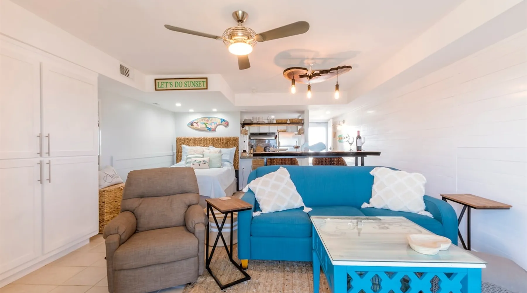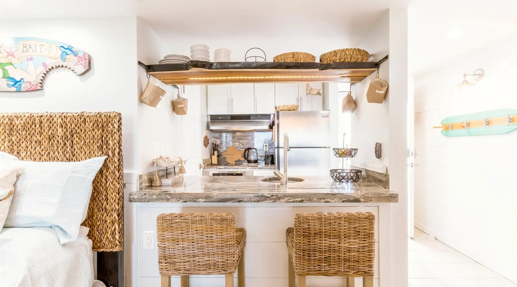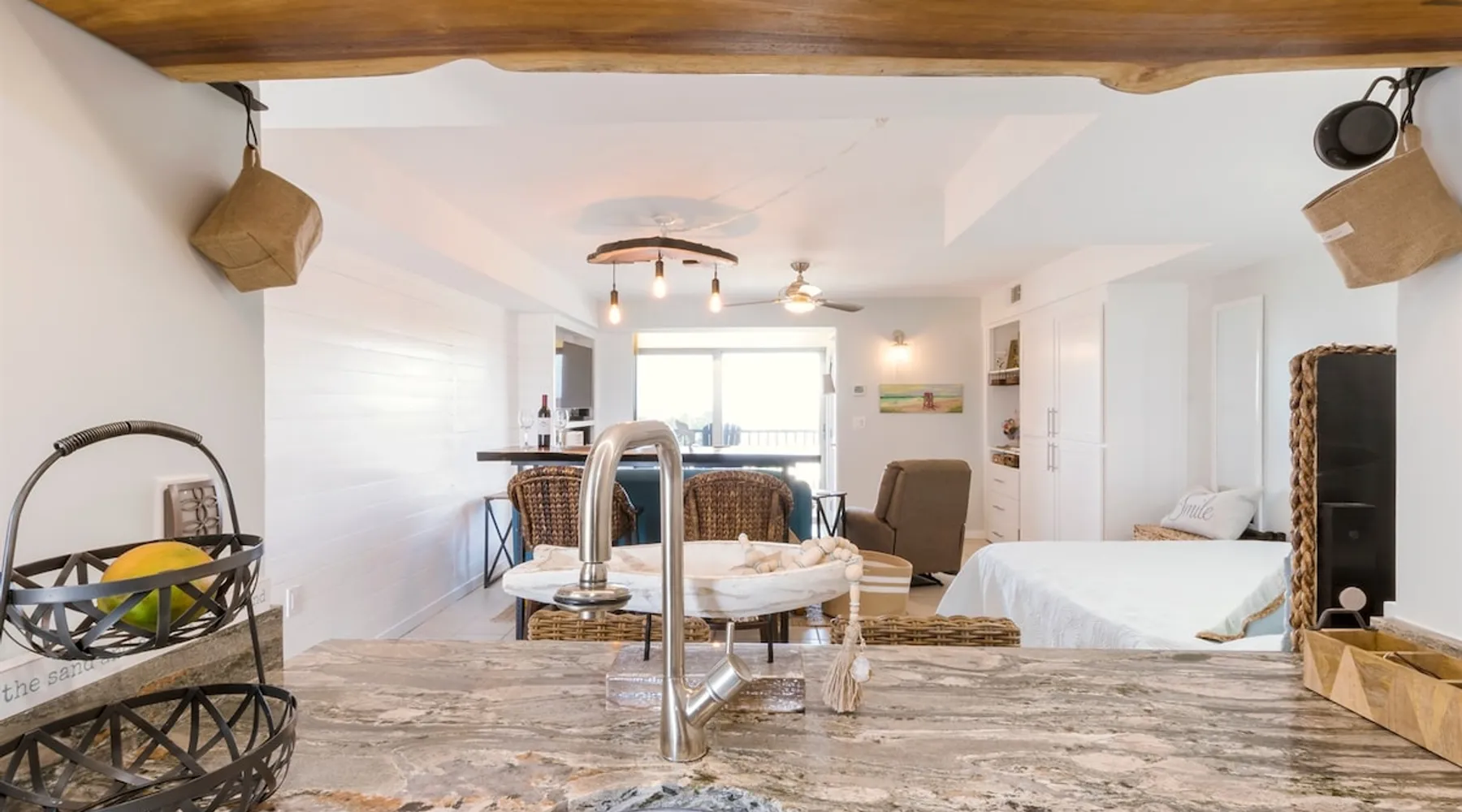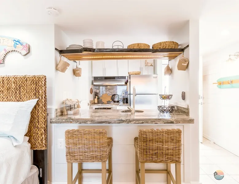 Welcome to Seaside Hideaway–your NSB escape! Awaken to spectacular ocean views and sunrises every morning from this charming 4th floor studio, mere steps from the sands of one of Florida's most desirable beaches! This cozy studio features a fully equipped stainless steel kitchen and all of the amenities you'll need for a perfect stay at the beach. Nestled in a tranquil area of beachside, Seaside Hideaway is ideally located near local top rated restaurants and shops! The space Studio (4th Floor): One (1) Queen Bed, One (1) Queen Sleeper Sofa Pull-Out Guest access After the Rental Agreement is e-signed and the $250.00 security hold is scheduled, access instructions along with house rules will be emailed to the guest within three (3) days before arrival. Other things to note Booking guest must review and e-sign the property Rental Agreement before check-in. A $250.00 USD security hold will be separately pre-authorized on your credit card on file by Fun Coast Rentals one (1) day before arrival and will be released within two (2) days following departure, provided no damages are found at the property. For stays longer than 7 days, the security hold will be released and recaptured each 7 day period of your stay. Credit card information will be separately collected during the secure Rental Agreement e-signing process. Parking: One (1) dedicated on-site parking space is available. One (1) free additional guest parking space may also be available on a first come, first served basis and is therefore not guaranteed. All parking is uncovered and requires the provided parking passes to be displayed at all times on vehicle or be subject to tow at vehicle owner's expense. Two (2) total parking passes are provided. Lost/stolen/damaged parking passes incur $50 USD replacement fee per pass. RV's, trailers or oversized trucks of any kind are not permitted on premises.