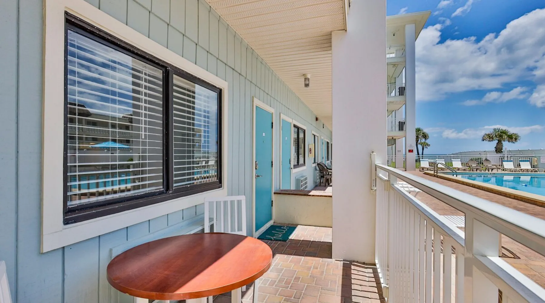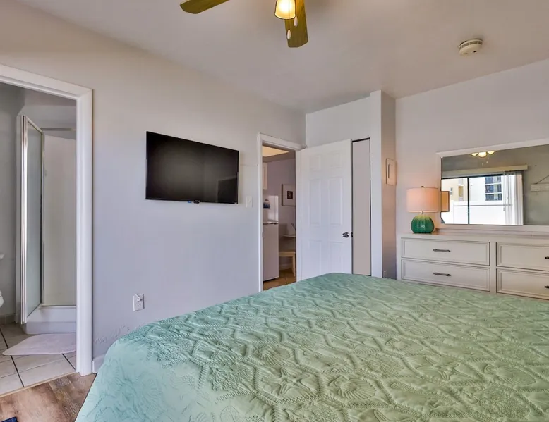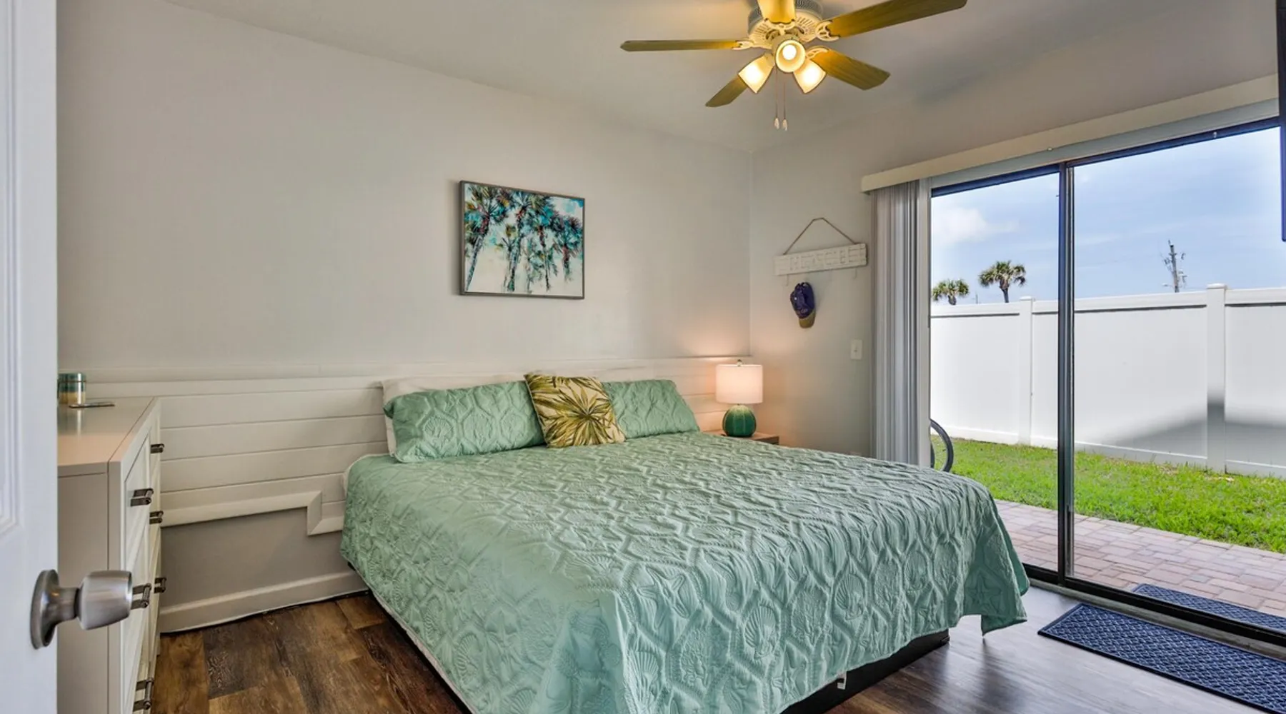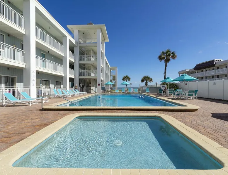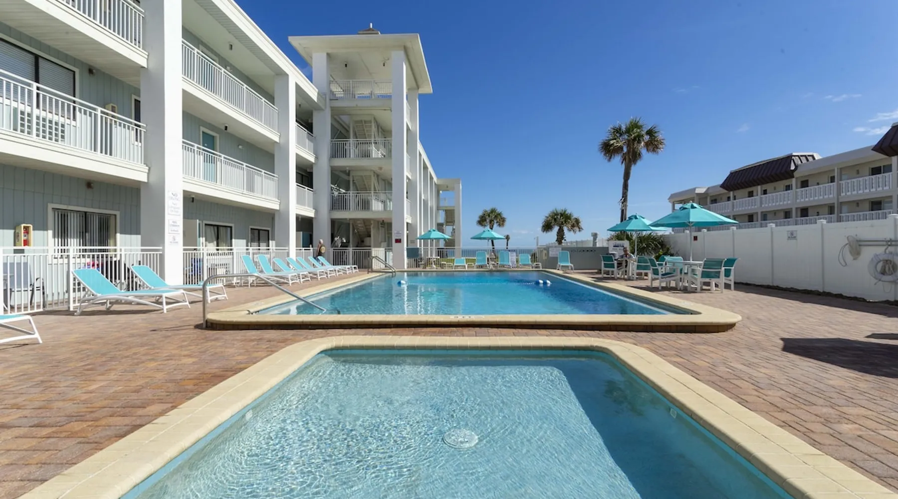 106 Coastal Waters The space Welcome to your poolside retreat, where we’re dedicated to making your stay exceptional. This charming one-bedroom condo features a luxurious king bed and an ensuite bathroom with a walk-in shower and bidet-equipped toilet. We provide complimentary linens and a brand-new mattress pad to ensure your comfort. Stay connected with free WiFi, perfect for browsing, streaming, or working remotely. After a day of sun and fun, relax with cable TV and enjoy your favorite shows. The fully stocked kitchen includes all the essentials for preparing meals, plus the added convenience of a water filter at the sink and an ice maker, so there’s no need for bottled water. Just steps from the ocean, our condo offers the perfect blend of relaxation and convenience. Lounge by the pool, soak up the sun, and enjoy the sound of the waves in this ideal coastal escape. Coastal Waters 106 is a 1/1 condo that can accommodate up to 2-3 guests, need more space? NO PROBLEM! This unit can be combined with unit 107, the adjoining door allows you to easily combine both units and can sleep up to 8! please contact us for more details and pricing on combining both units! Coastal Waters is an oceanfront complex on the driving section of New Smyrna Beach. When you're not basking on the white sands of NSB, you'll find the complex provides great on-site amenities such as a heated swimming pool, 2 gas BBQ's and direct ocean access. Within walking distance to many great restaurants with just a short drive from Flagler Ave. Located near 27th avenue park, walking distance to some of NSB’s popular hometown restaurants and just minutes away from Flagler Avenue & Canal Street! There is parking in the front and an overflow parking across the street which can accommodate your trailer or boat, parking is first come first serve with appropriate parking pass. New Smyrna Beach is known for its small town character and family atmosphere. The warm climate, wide, white sand beaches, and variety of outdoor activities make this the perfect Florida beach vacation spot.