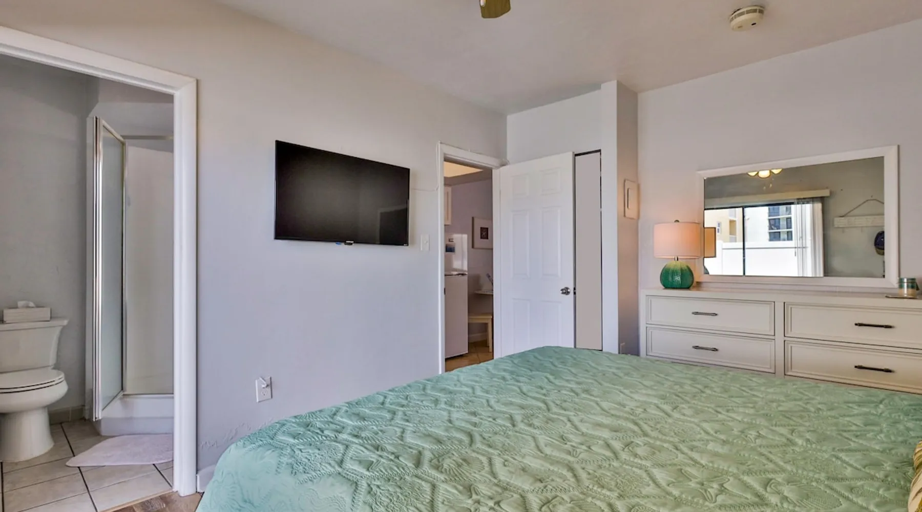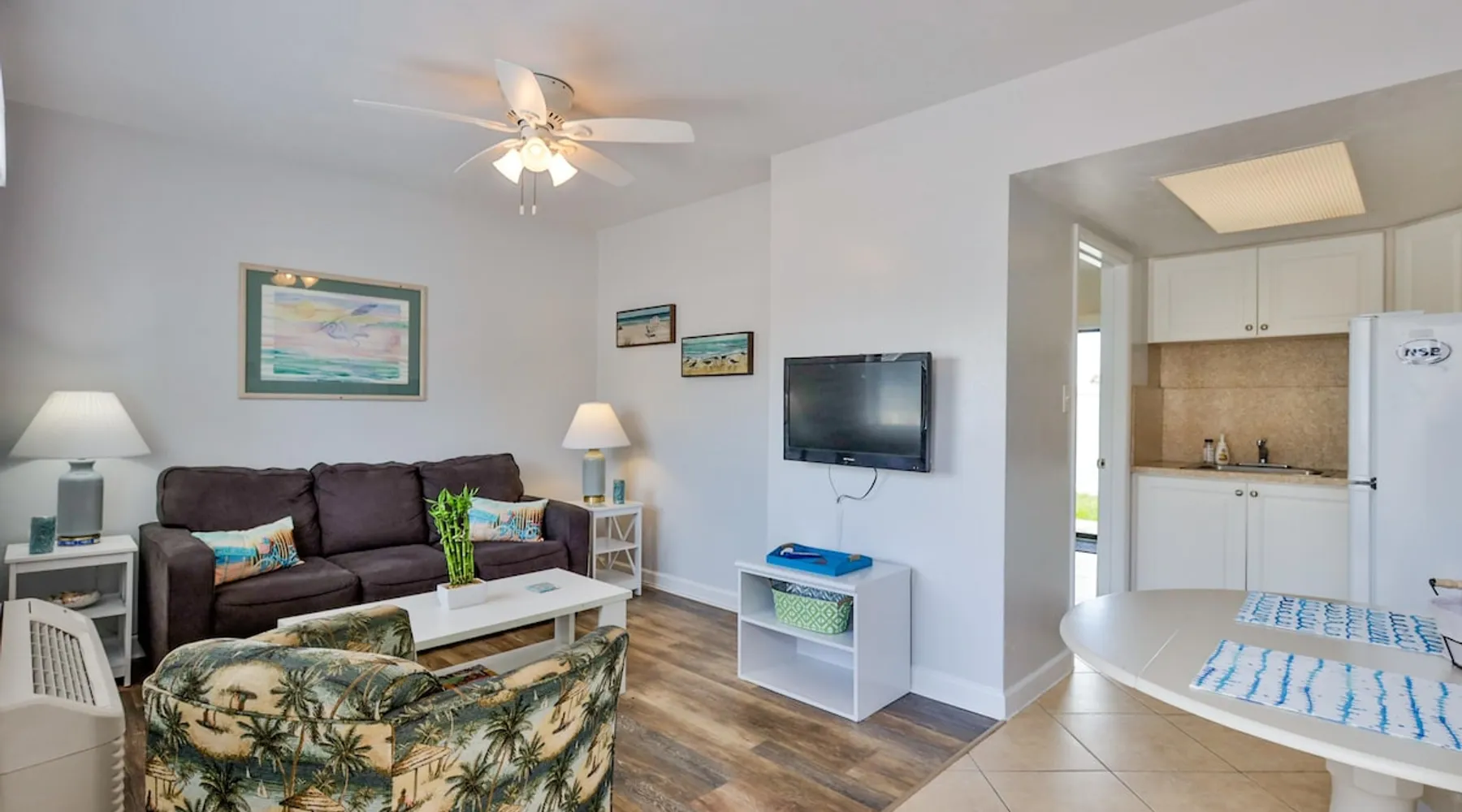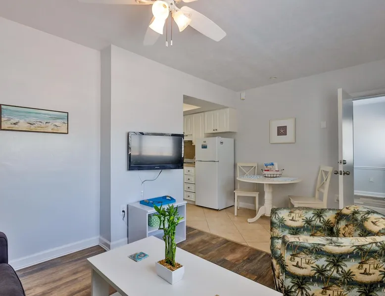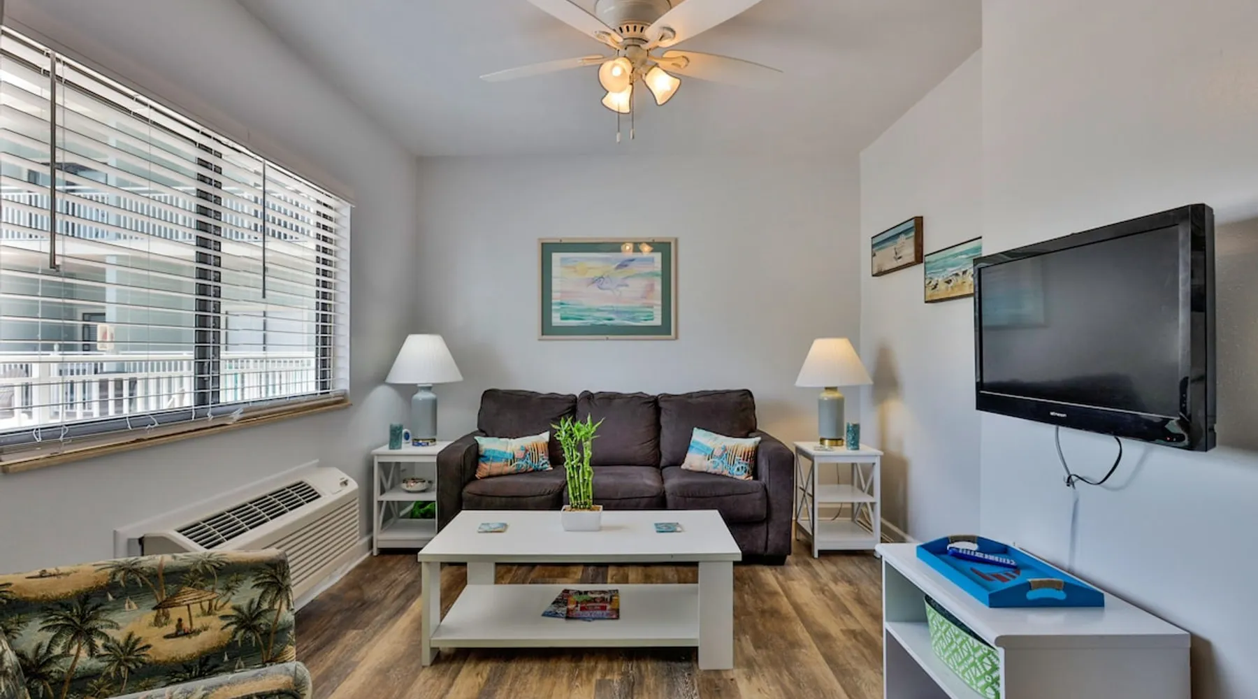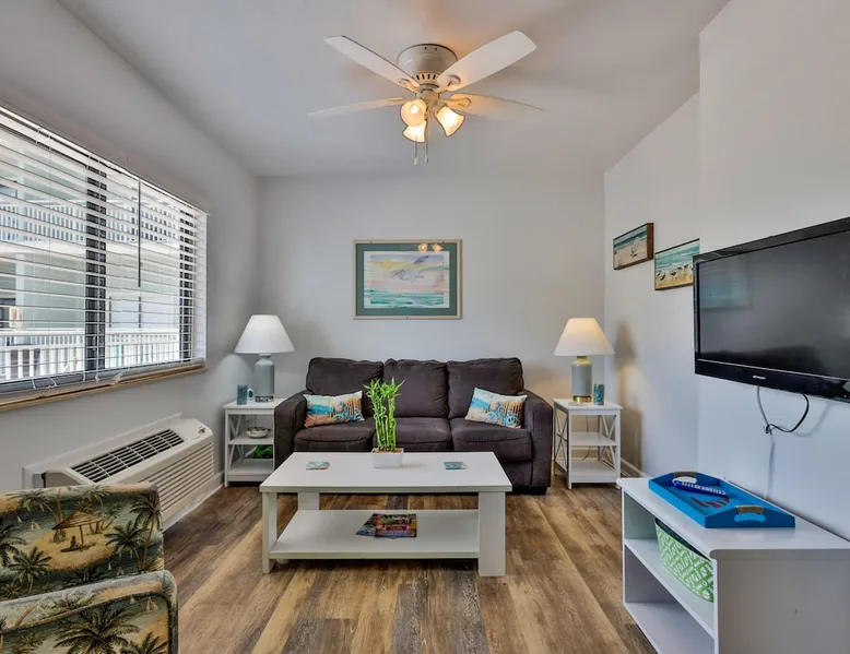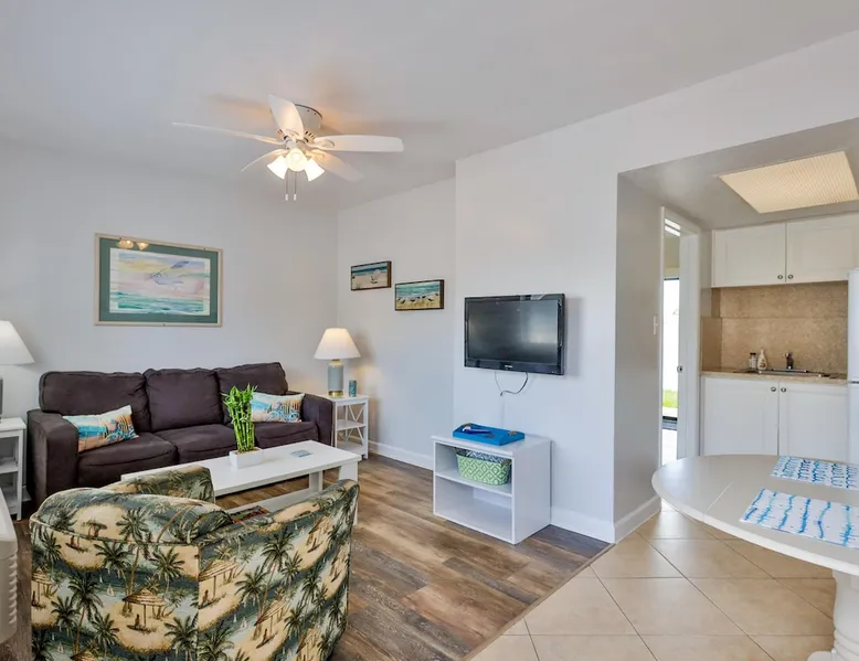 106 Coastal Waters The space Welcome to your poolside retreat, where we’re dedicated to making your stay exceptional. This charming one-bedroom condo features a luxurious king bed and an ensuite bathroom with a walk-in shower and bidet-equipped toilet. We provide complimentary linens and a brand-new mattress pad to ensure your comfort. Stay connected with free WiFi, perfect for browsing, streaming, or working remotely. After a day of sun and fun, relax with cable TV and enjoy your favorite shows. The fully stocked kitchen includes all the essentials for preparing meals, plus the added convenience of a water filter at the sink and an ice maker, so there’s no need for bottled water. Just steps from the ocean, our condo offers the perfect blend of relaxation and convenience. Lounge by the pool, soak up the sun, and enjoy the sound of the waves in this ideal coastal escape. Coastal Waters 106 is a 1/1 condo that can accommodate up to 2-3 guests, need more space? NO PROBLEM! This unit can be combined with unit 107, the adjoining door allows you to easily combine both units and can sleep up to 8! please contact us for more details and pricing on combining both units! Coastal Waters is an oceanfront complex on the driving section of New Smyrna Beach. When you're not basking on the white sands of NSB, you'll find the complex provides great on-site amenities such as a heated swimming pool, 2 gas BBQ's and direct ocean access. Within walking distance to many great restaurants with just a short drive from Flagler Ave. Located near 27th avenue park, walking distance to some of NSB’s popular hometown restaurants and just minutes away from Flagler Avenue & Canal Street! There is parking in the front and an overflow parking across the street which can accommodate your trailer or boat, parking is first come first serve with appropriate parking pass. New Smyrna Beach is known for its small town character and family atmosphere. The warm climate, wide, white sand beaches, and variety of outdoor activities make this the perfect Florida beach vacation spot.