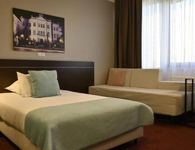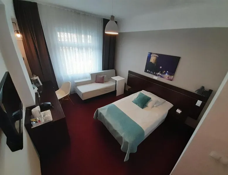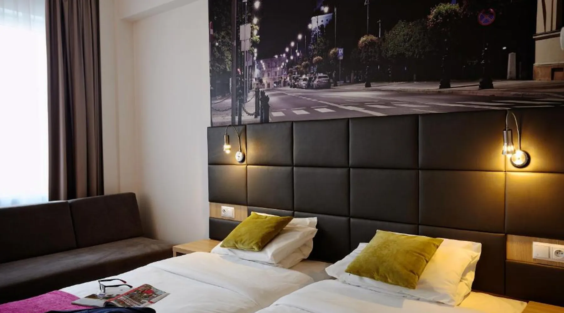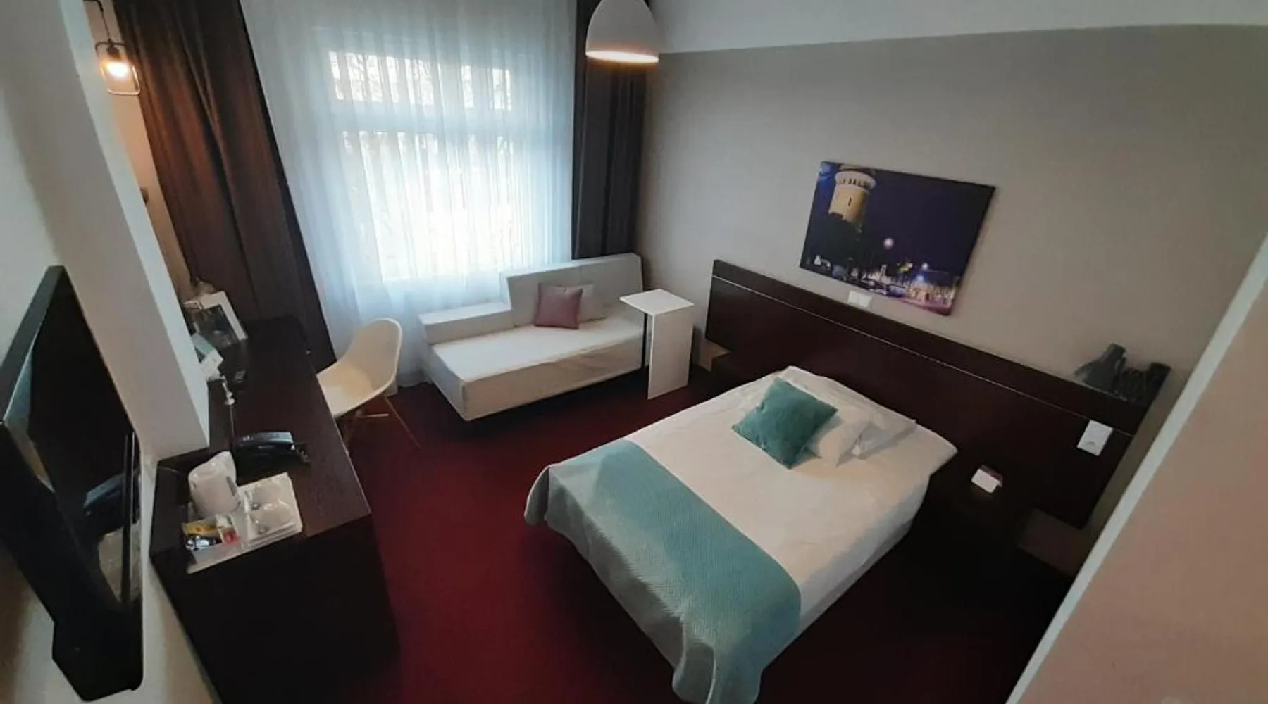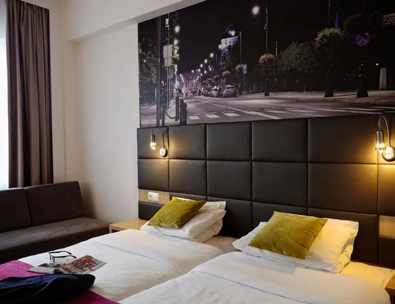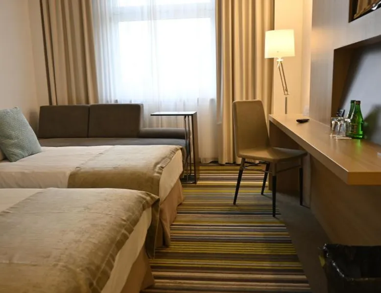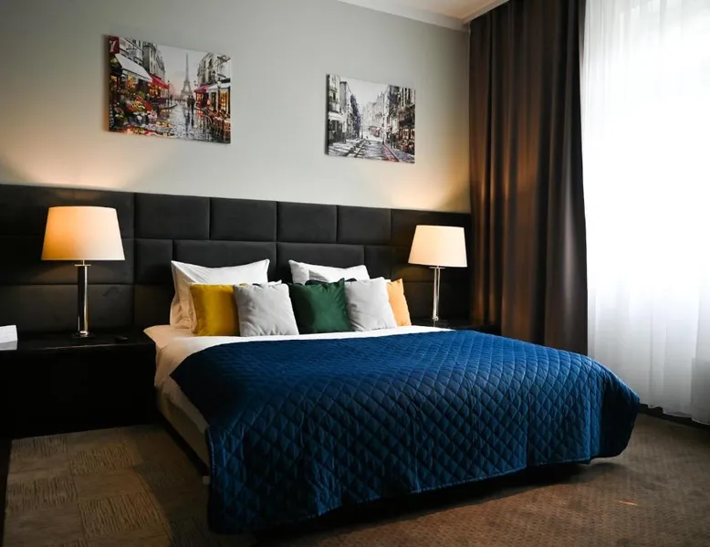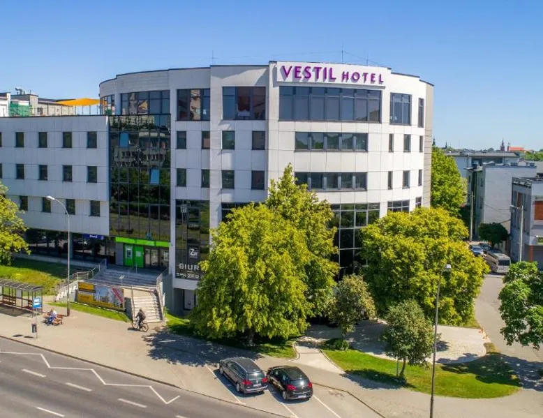 3-star Vestil Hotel hotel is located 0.9 mi from Piotrków Trybunalski Railway Station. It features modern rooms with free internet. Guests can relax in a unique atmosphere of the beer bath and spa center offering a wide variety of treatments. All soundproofed rooms at Vestil Hotel are fitted with an LCD TV with cable channels. There is also a working space with a large desk. Each comes with a private bathroom with a shower. A breakfast, available on-site at surcharge, is served every morning in the Pepper & Salt Restaurant, which specializes in international dishes. A hotel’s lounge bar offers a wide selection of drinks and beer. At the Vestil Hotel, front desk staff is available 24 hours a day. Guests can relax in a hot tub or a sauna. Monitored public parking is available on site. The air-conditioned double room provides a flat-screen TV with cable channels, soundproof walls, a mini-bar, a tea and coffee maker as well as city views. The unit offers 2 beds.