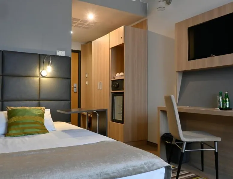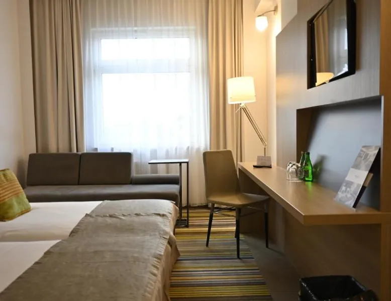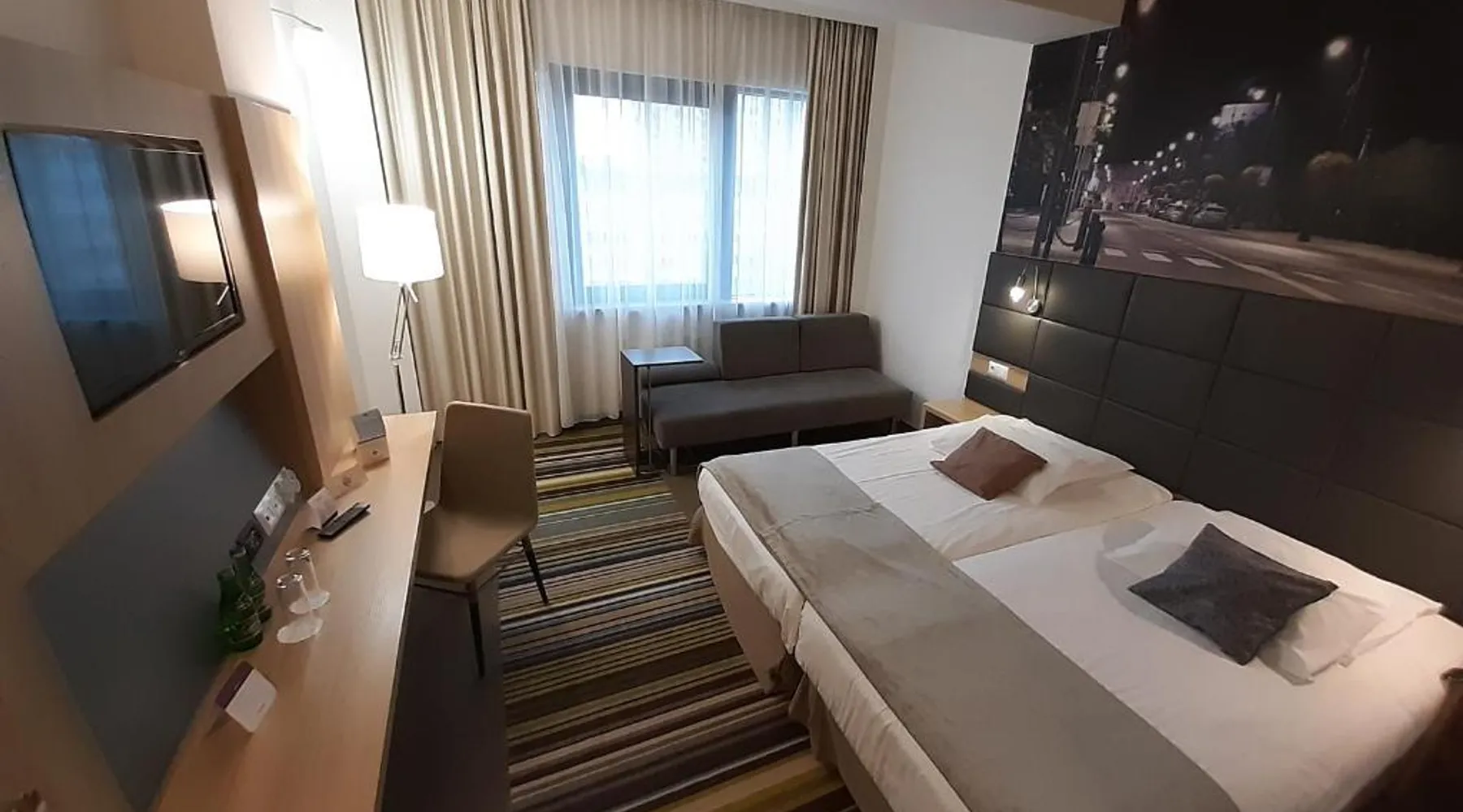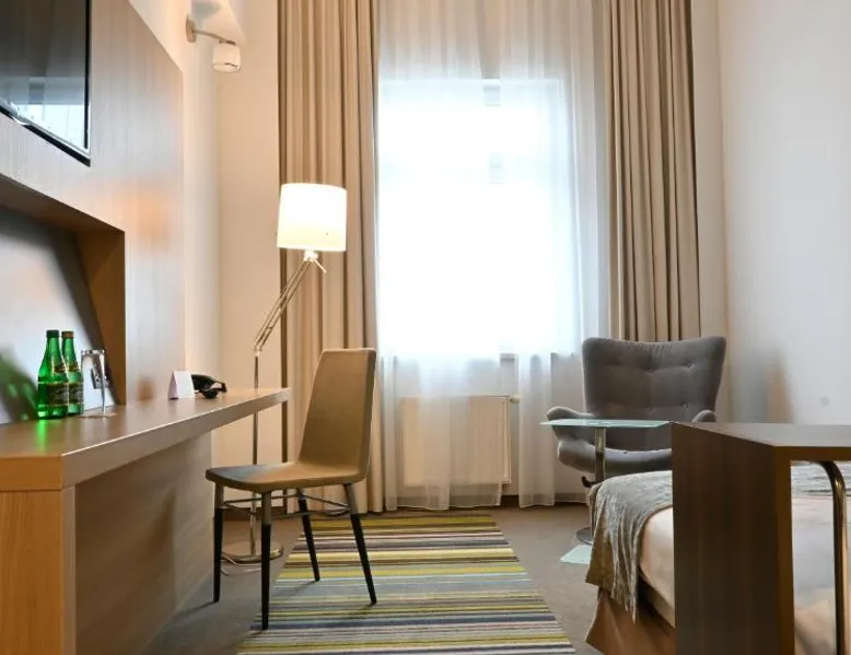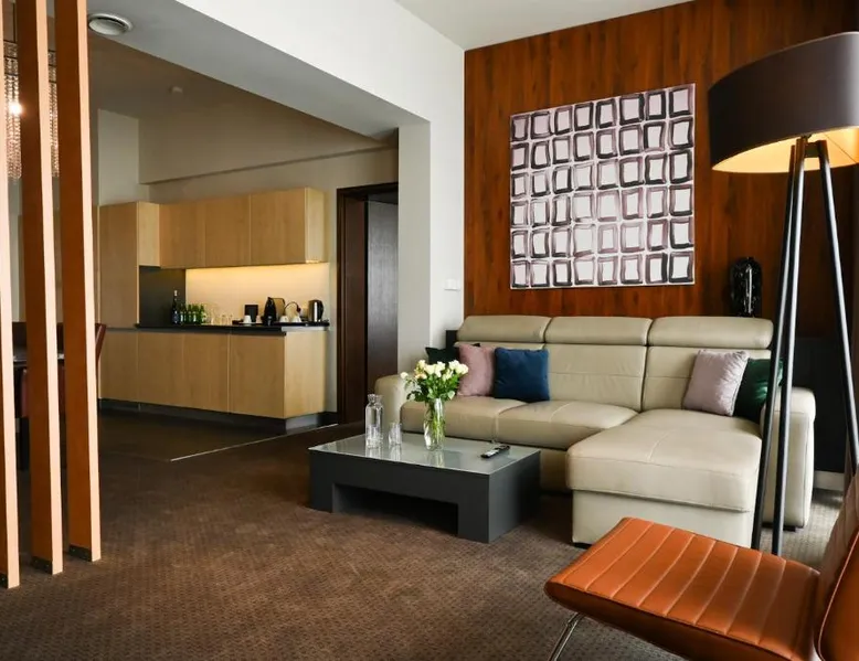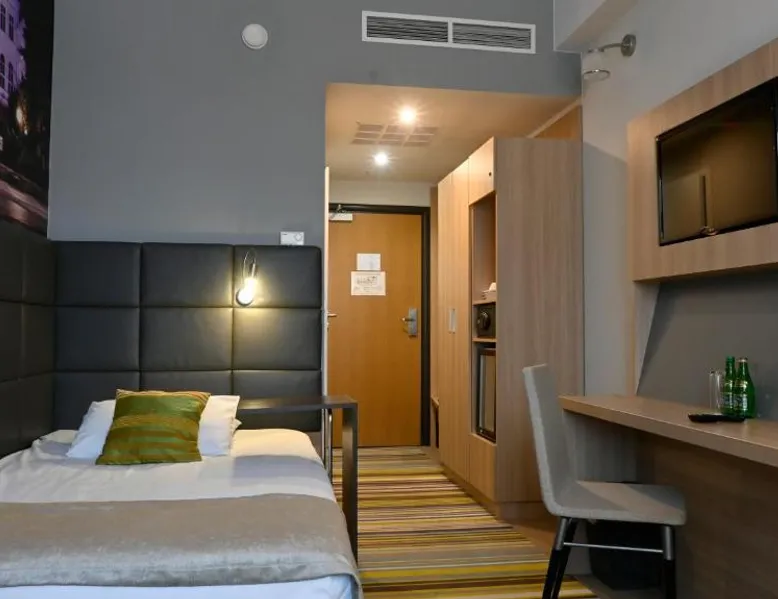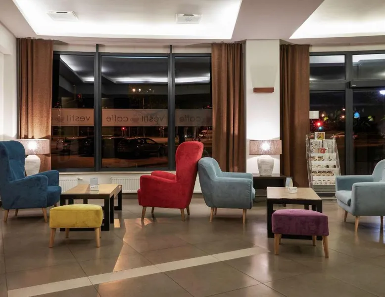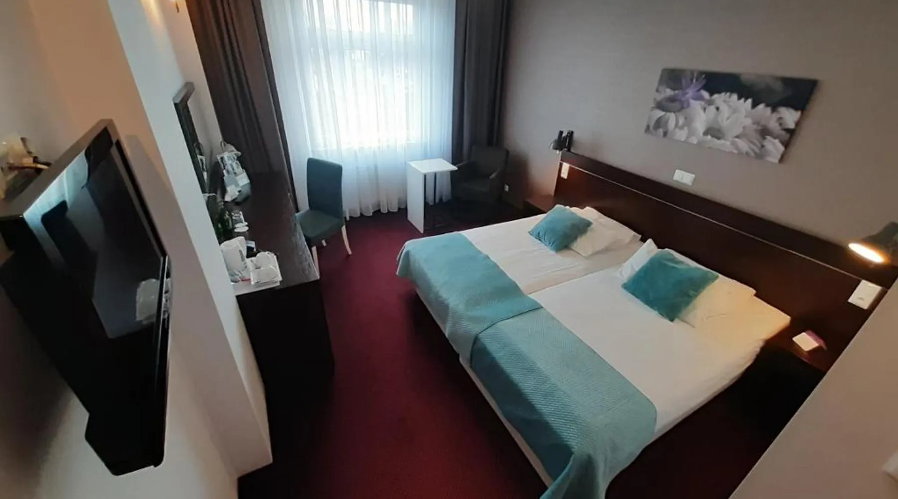 3-star Vestil Hotel hotel is located 0.9 mi from Piotrków Trybunalski Railway Station. It features modern rooms with free internet. Guests can relax in a unique atmosphere of the beer bath and spa center offering a wide variety of treatments. All soundproofed rooms at Vestil Hotel are fitted with an LCD TV with cable channels. There is also a working space with a large desk. Each comes with a private bathroom with a shower. A breakfast, available on-site at surcharge, is served every morning in the Pepper & Salt Restaurant, which specializes in international dishes. A hotel’s lounge bar offers a wide selection of drinks and beer. At the Vestil Hotel, front desk staff is available 24 hours a day. Guests can relax in a hot tub or a sauna. Monitored public parking is available on site. The air-conditioned double room provides a flat-screen TV with cable channels, soundproof walls, a mini-bar, a tea and coffee maker as well as city views. The unit offers 2 beds.