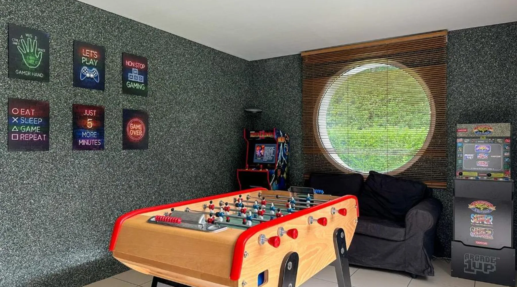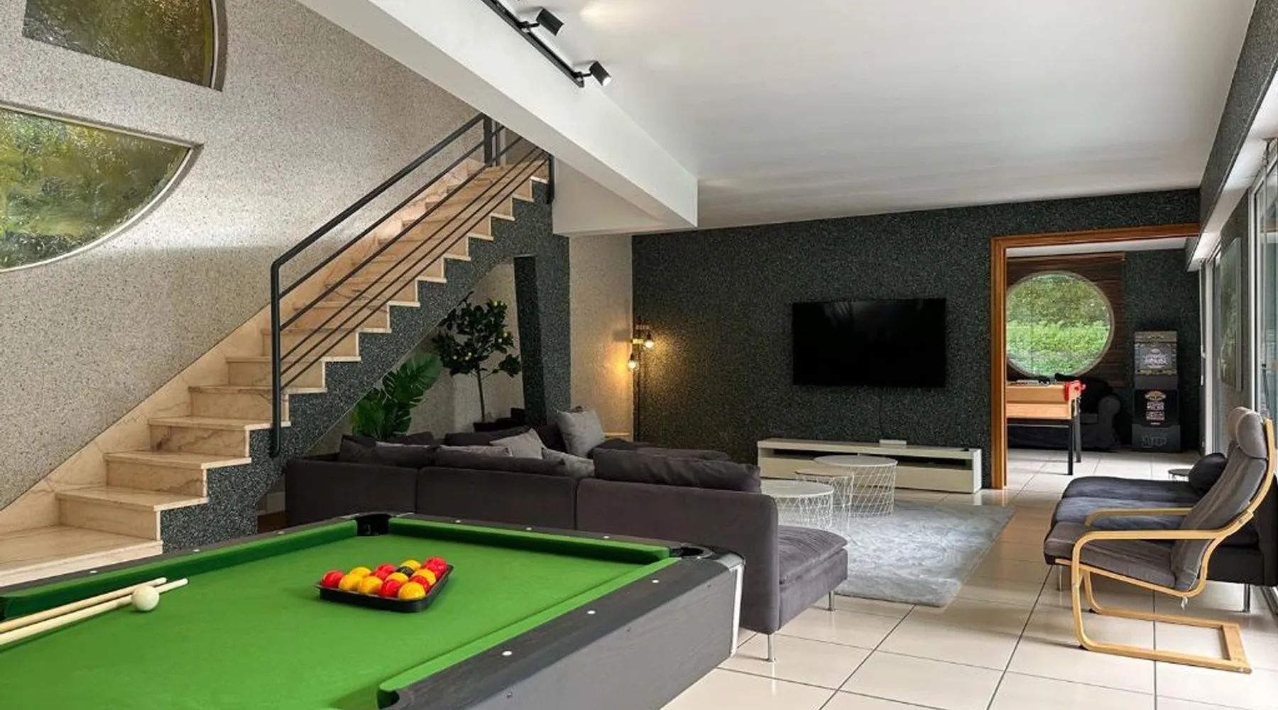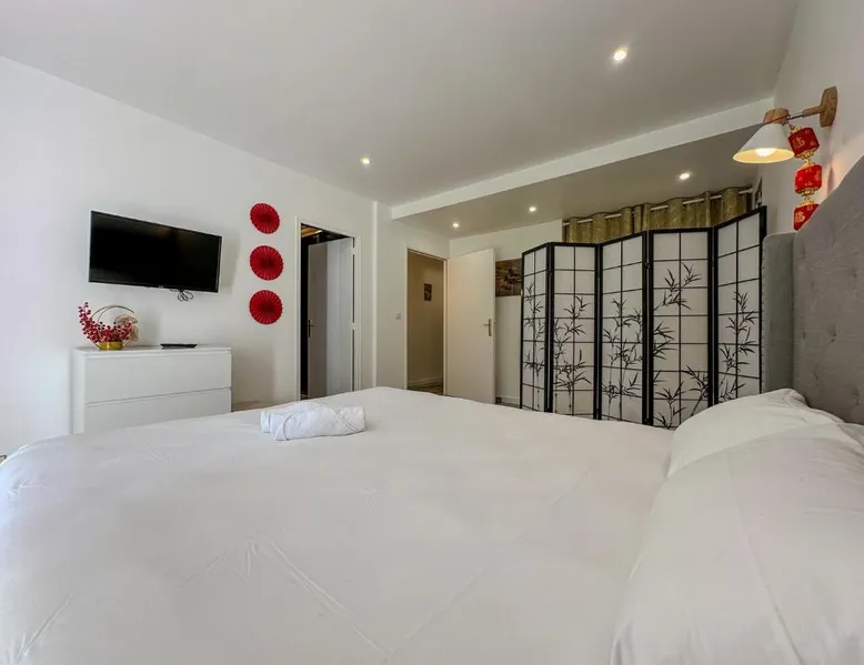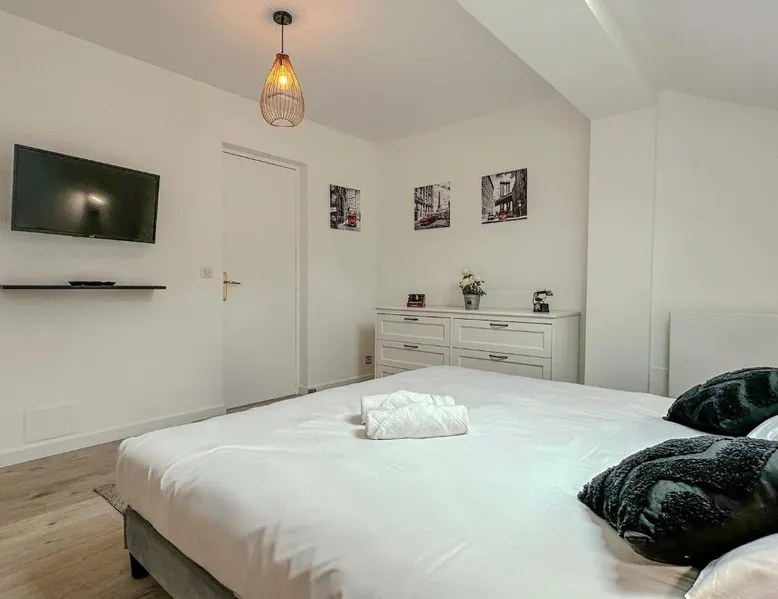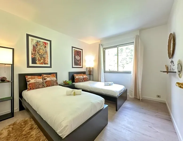 Spacious Accommodations: Villa avec piscine, Cinéma, terrain privé in Nogent-le-Phaye offers six bedrooms and four bathrooms. The property features a garden, terrace, and a year-round outdoor swimming pool. Free WiFi is available throughout the villa. Modern Amenities: Guests can enjoy air-conditioning, a heated pool, balcony, and a games room. The villa includes a fully equipped kitchen, washing machine, and a work desk. Additional amenities include streaming services, a fireplace, and a barbecue. Convenient Location: Located 44 mi from Paris Orly Airport, the villa is near attractions such as the Municipal Theater of Chartres and Chartres Cathedral, each 4.3 mi away. Other points of interest include Chartrexpo at 2.7 mi and Rambouillet Castle at 26 mi. Highly Rated by Guests: Guests appreciate the spaciousness and excellent facilities, making it a highly rated choice for a comfortable stay. The fireplace is a top feature of this villa. Boasting a private entrance, this spacious villa also comes with 6 separate bedrooms and 4 bathrooms with a bath and a shower. Guests will find a refrigerator, a dishwasher, kitchenware and an oven in the well-fitted kitchen. The villa also includes a barbecue. The air-conditioned villa features a TV with streaming services, a washing machine, a coffee machine, tumble dryer as well as garden views. The unit has 11 beds.