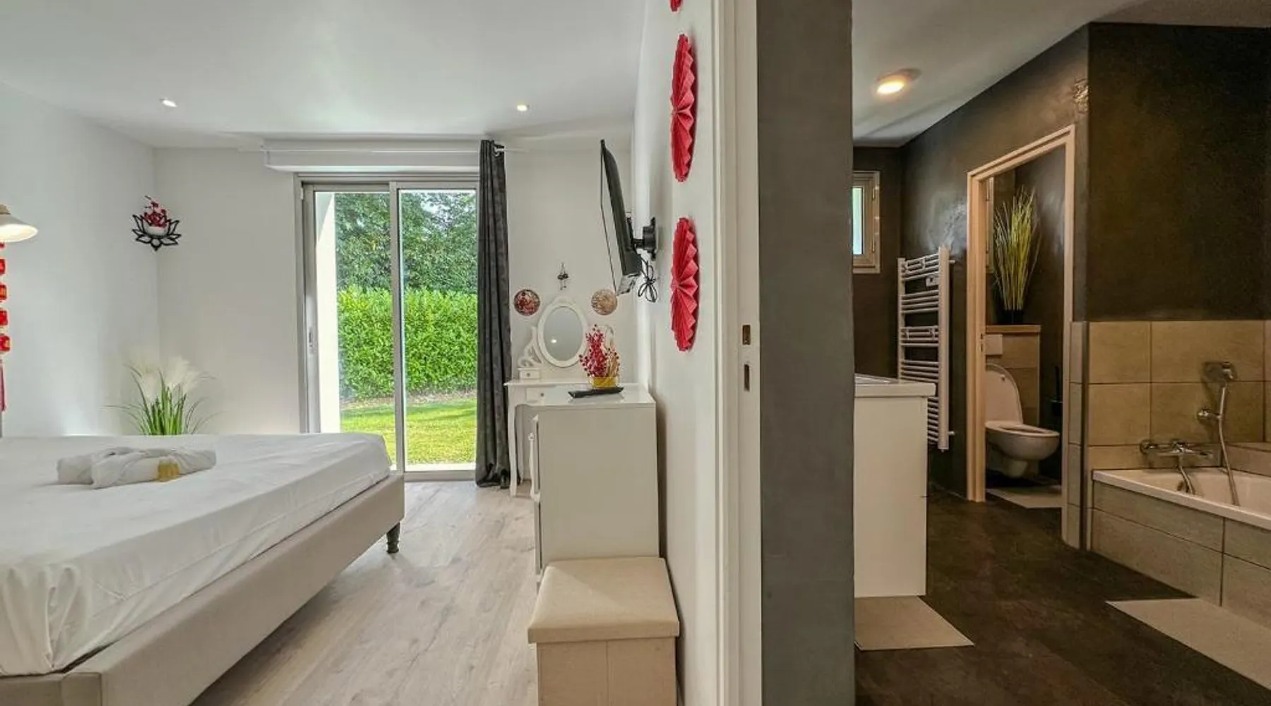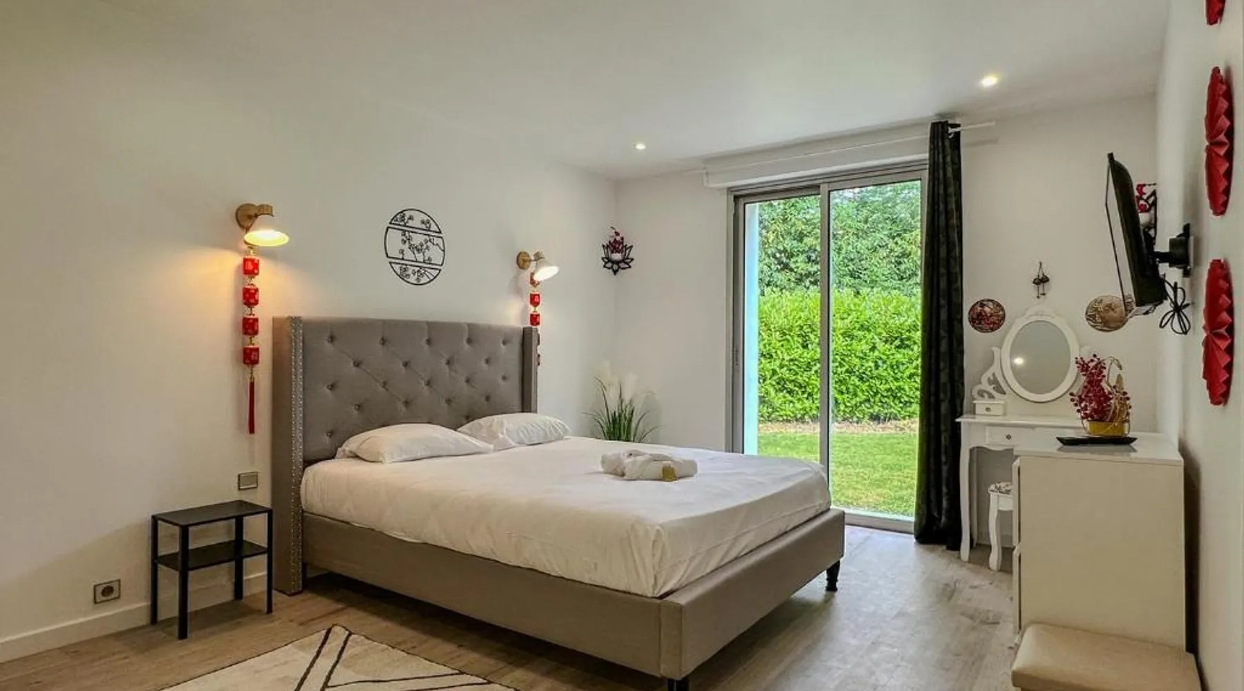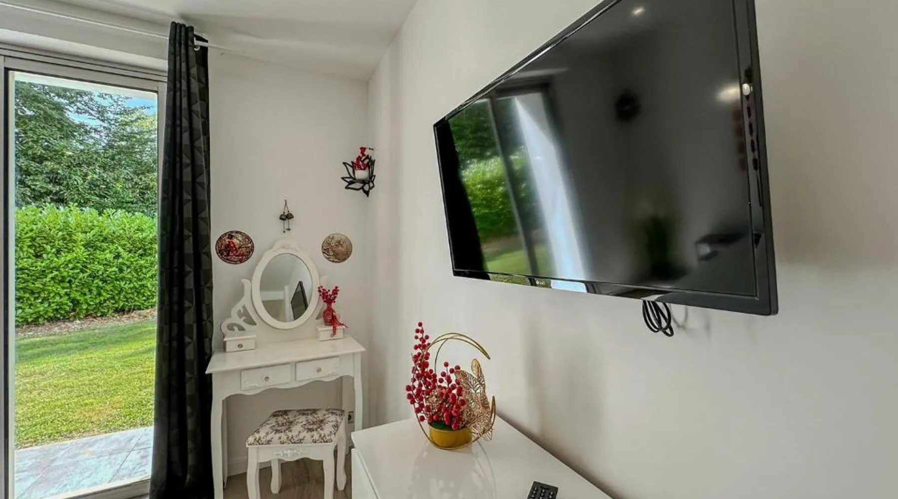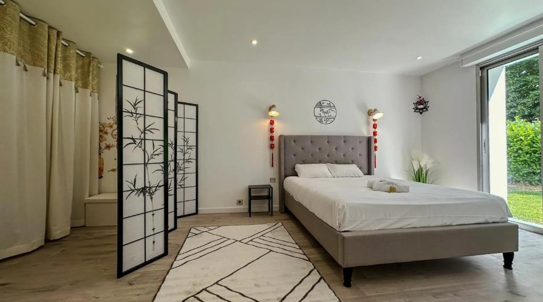 Spacious Accommodations: Villa avec piscine, Cinéma, terrain privé in Nogent-le-Phaye offers six bedrooms and four bathrooms. The property features a garden, terrace, and a year-round outdoor swimming pool. Free WiFi is available throughout the villa. Modern Amenities: Guests can enjoy air-conditioning, a heated pool, balcony, and a games room. The villa includes a fully equipped kitchen, washing machine, and a work desk. Additional amenities include streaming services, a fireplace, and a barbecue. Convenient Location: Located 44 mi from Paris Orly Airport, the villa is near attractions such as the Municipal Theater of Chartres and Chartres Cathedral, each 4.3 mi away. Other points of interest include Chartrexpo at 2.7 mi and Rambouillet Castle at 26 mi. Highly Rated by Guests: Guests appreciate the spaciousness and excellent facilities, making it a highly rated choice for a comfortable stay. The fireplace is a top feature of this villa. Boasting a private entrance, this spacious villa also comes with 6 separate bedrooms and 4 bathrooms with a bath and a shower. Guests will find a refrigerator, a dishwasher, kitchenware and an oven in the well-fitted kitchen. The villa also includes a barbecue. The air-conditioned villa features a TV with streaming services, a washing machine, a coffee machine, tumble dryer as well as garden views. The unit has 11 beds.
