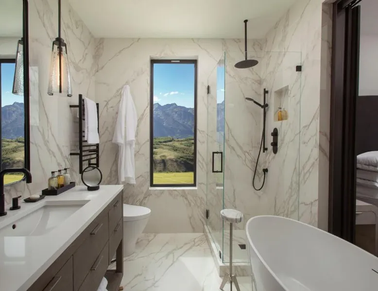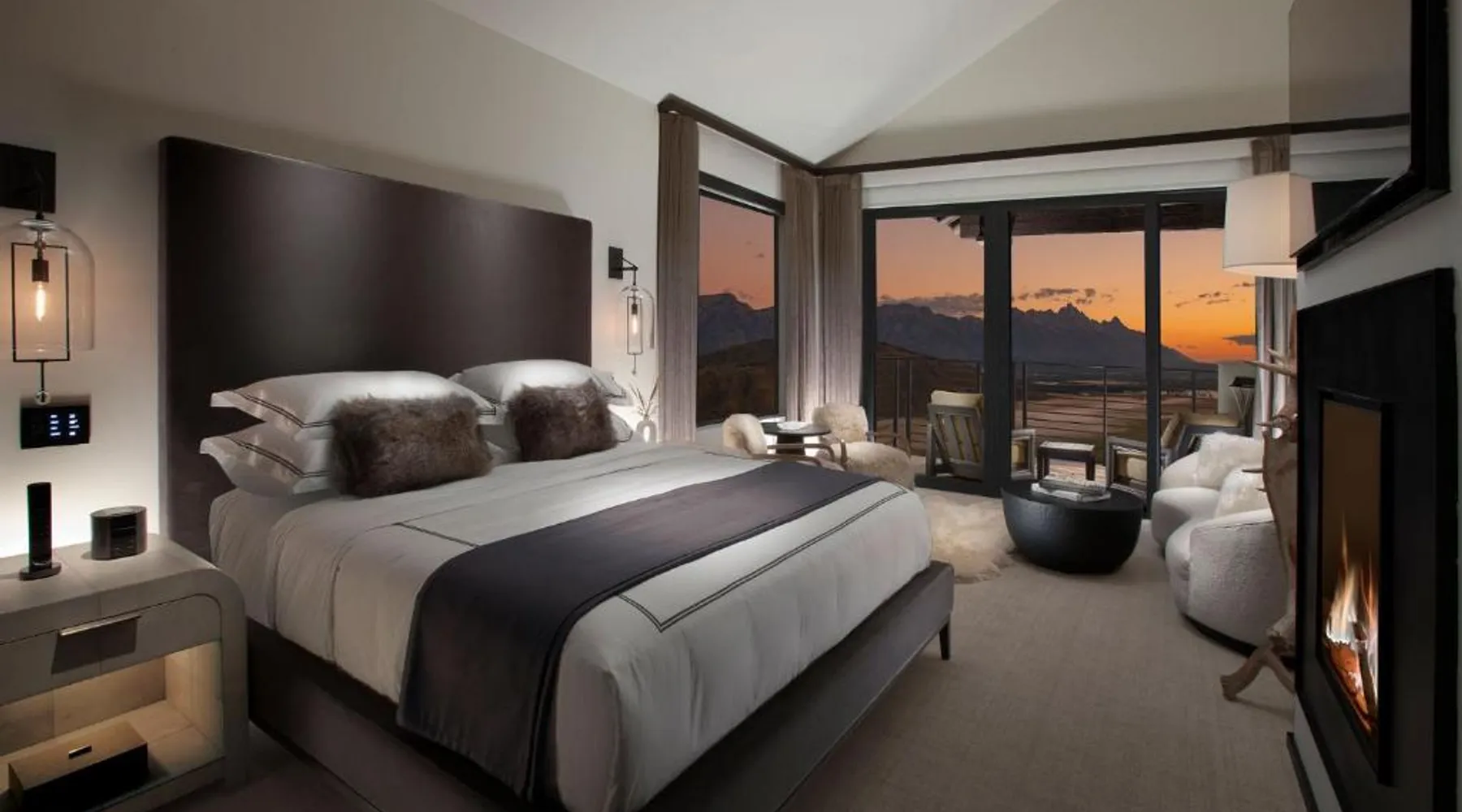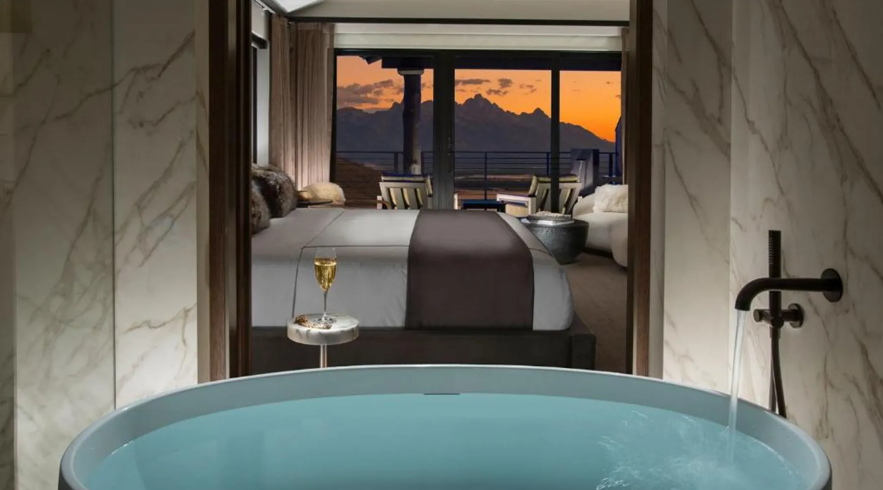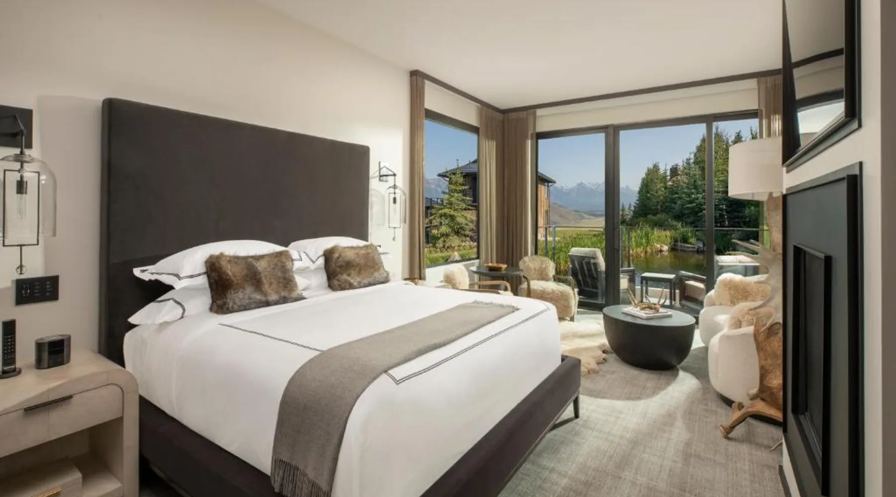 Elegant Accommodations: Hotel Yellowstone at Jackson Hole in Jackson offers a 5-star experience with adults-only access. Guests enjoy lake and mountain views from balconies and private bathrooms equipped with modern amenities. Exceptional Facilities: The hotel features an infinity swimming pool, sauna, and fitness center. Additional facilities include a spa, indoor pool, and free WiFi throughout the property. Dining Experience: A romantic restaurant serves local cuisine for lunch and dinner. An American breakfast is available à la carte, complemented by a bar for relaxed evenings. Prime Location: Located 14 mi from Jackson Hole Airport, the hotel is near attractions such as Grand Teton National Park (5.6 mi) and Center For The Arts (5 mi). Activities include skiing and cycling. Highly rated by guests. The fireplace is a top feature of this suite. This spacious suite comes with 1 bedroom, a seating area and 1 bathroom with a walk-in shower and a bath. The air-conditioned suite features a flat-screen TV with streaming services, soundproof walls, a tea and coffee maker, an iPad as well as lake views. The unit has 1 bed.