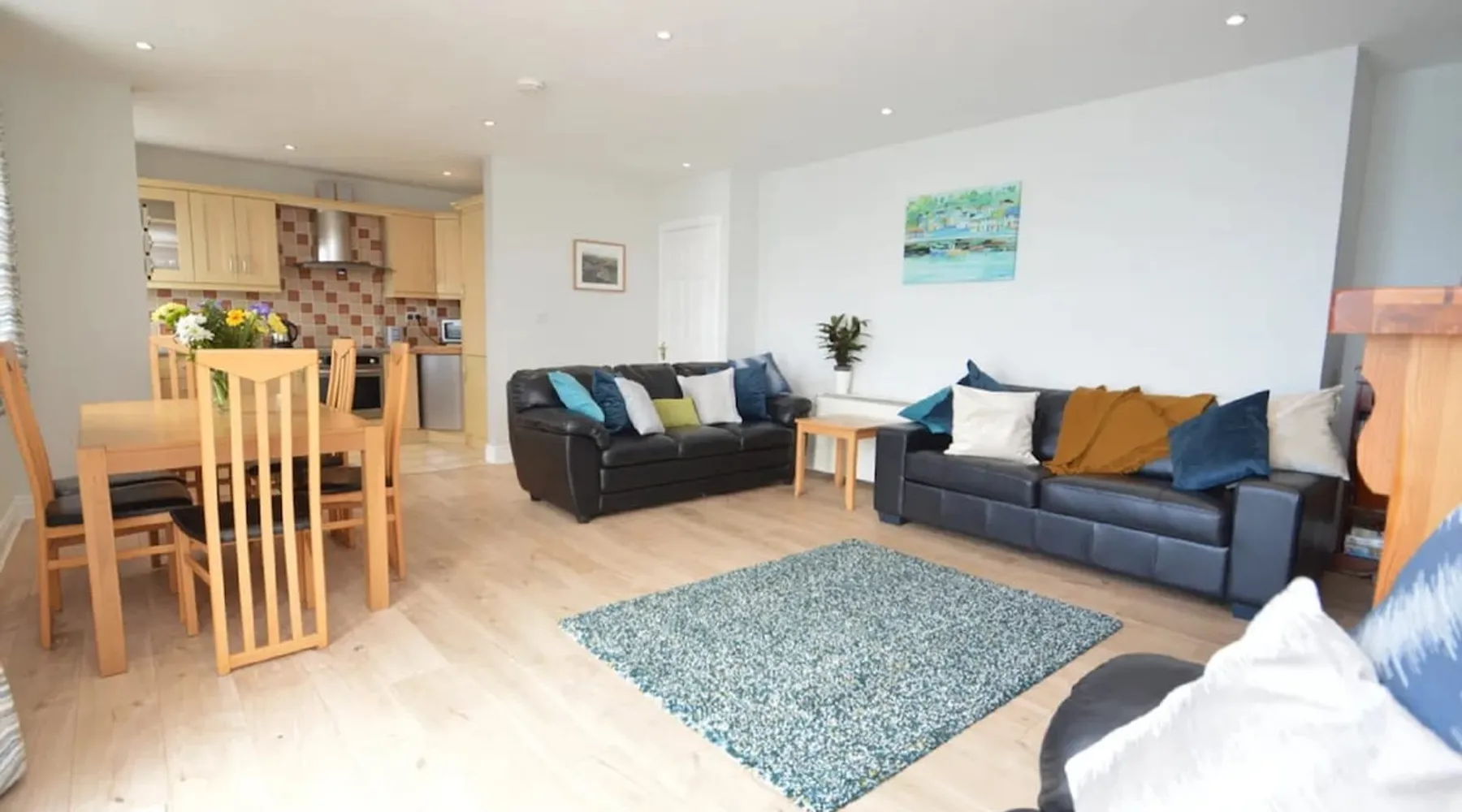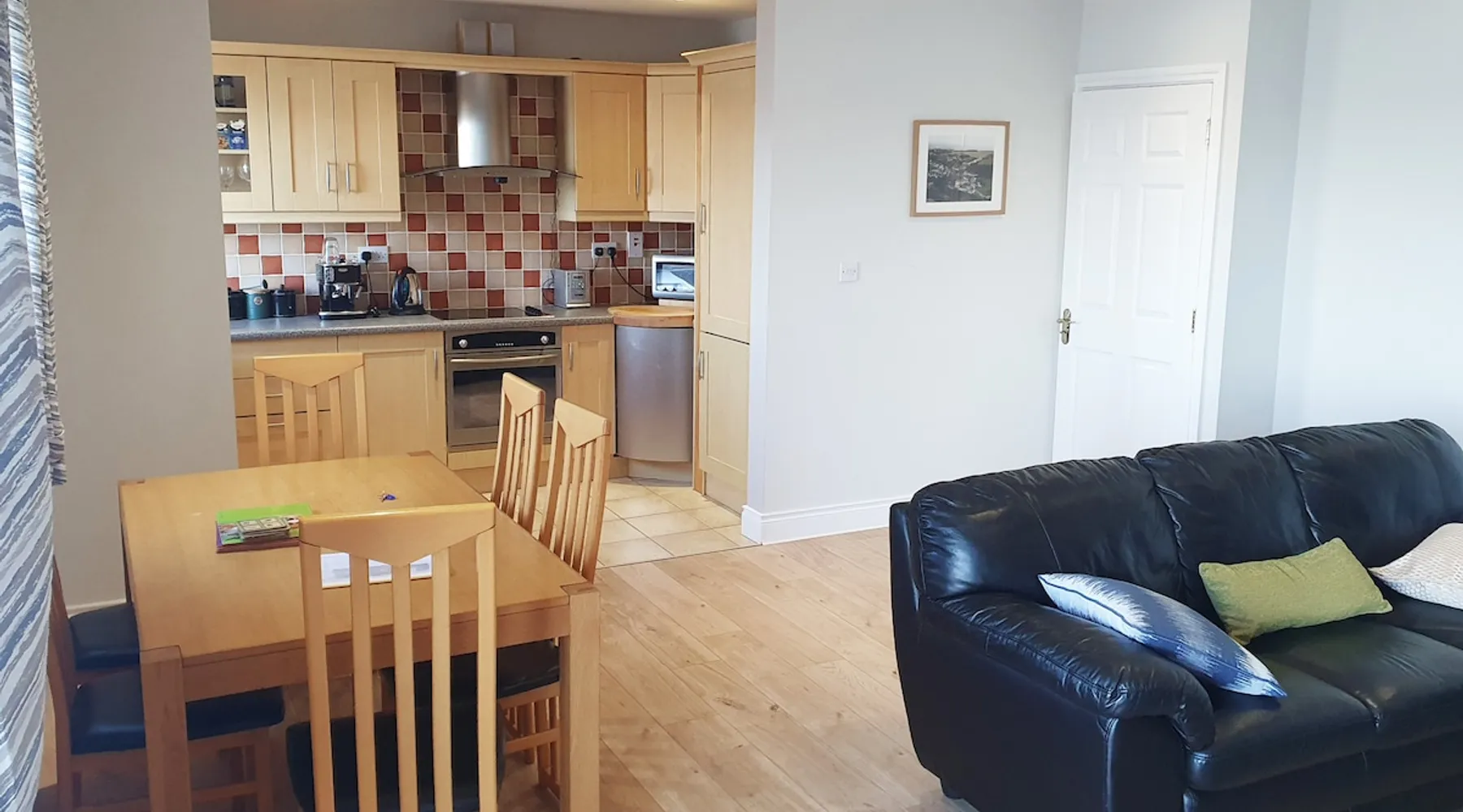 This coastal holiday home sleeping 5, is located in the gorgeous setting of Ballycotton. Ballycotton is the perfect escape to the beautiful East Cork countryside - it is a small, picturesque fishing village which sits on a rocky ledge overlooking Ballycotton Bay and is surrounded by sandy beaches. On a clear day it is possible to see the Knockmealdown Mountains from the apartment. The space This coastal holiday home sleeping 5, is located in the gorgeous setting of Ballycotton. Ballycotton is the perfect escape to the beautiful East Cork countryside - it is a small, picturesque fishing village which sits on a rocky ledge overlooking Ballycotton Bay and is surrounded by sandy beaches. On a clear day it is possible to see the Knockmealdown Mountains from the apartment. Ballycotton Holiday Apartment No 6 Description– Sleeps 5This cosy, beautifully located apartment offers comfortable self-catering accommodation in Ireland. The tranquil sea views from the property will help you to relax – if you are lucky you might see the dolphins jumping out of the water. This is a 2-bedroom self-catering apartment sleeping 5 guests: Property layout – First floor: - Medium sized living room with smart Tv - Open plan kitchen - Dining room seating 6 people - Bedroom 1: double ensuite sleeping 2 (with view of the church) - Bedroom 2: double & single sleeping 3 (with sea view) - Bathroom with jacuzzi bathtub, toilet & hand basin The sea-view balcony is fitted with outdoor furniture, additionally, outside this holiday apartment, there is a shared enclosed garden with a secure fence suitable for kids. Wi-Fi is available, and for guests working remotely, a small desk is provided in the master bedroom. Towels are provided within the property. a 1 private parking space in front of the apartment is available. For non-drivers there is a bus service from the village and the local shop in Shanagarry does home delivery and Tesco. 10 euro electricity daily charge applies and covers electric heating. Local area & Tourist Attractions Ballycotton Holiday Apartment No 6 is the perfect base for exploring East Cork. Enjoy a relaxing or action-packed outdoor holiday with friends and family at any time of the year. Things to do in the local area: - Ballycotton Lighthouse & Island - Ballymaloe Cookery School, Organic Farm & Gardens - The Royal National Lifeboat in Ballycotton - Visit the unique Sea Church - Garryvoe - Youghal - Strand Beach & Claycastle Blue Flag Beach - Fota Wildlife Park - Leahy’s Open Farm - Cork City: a 32-minute drive IMPORTANT NOTES1. Utility Charges: Utilities are an extra charge at this property and payable on departure to the Owner/Property Manager. The daily rate for heating & electricity at this property is €10 all year around. Should utility charges not be paid on departure, they will be deducted from the security deposit without further notice. Breakdown of these charges are available from the Owner/Property Manager. 2. Security Deposit: A minimum refundable security deposit of €200 (per property) must be paid prior to check-in to your holiday home to the local Property Manager/ Owner. This is either taken over the phone by pre-authorising your credit card when you call the Property Manager to arrange your arrival time 48 hours in advance of arrival or at others it is taken on arrival by cash. In some locations and at certain times of year this can increase to €500 per property. Other things to note Included services - Bed linen