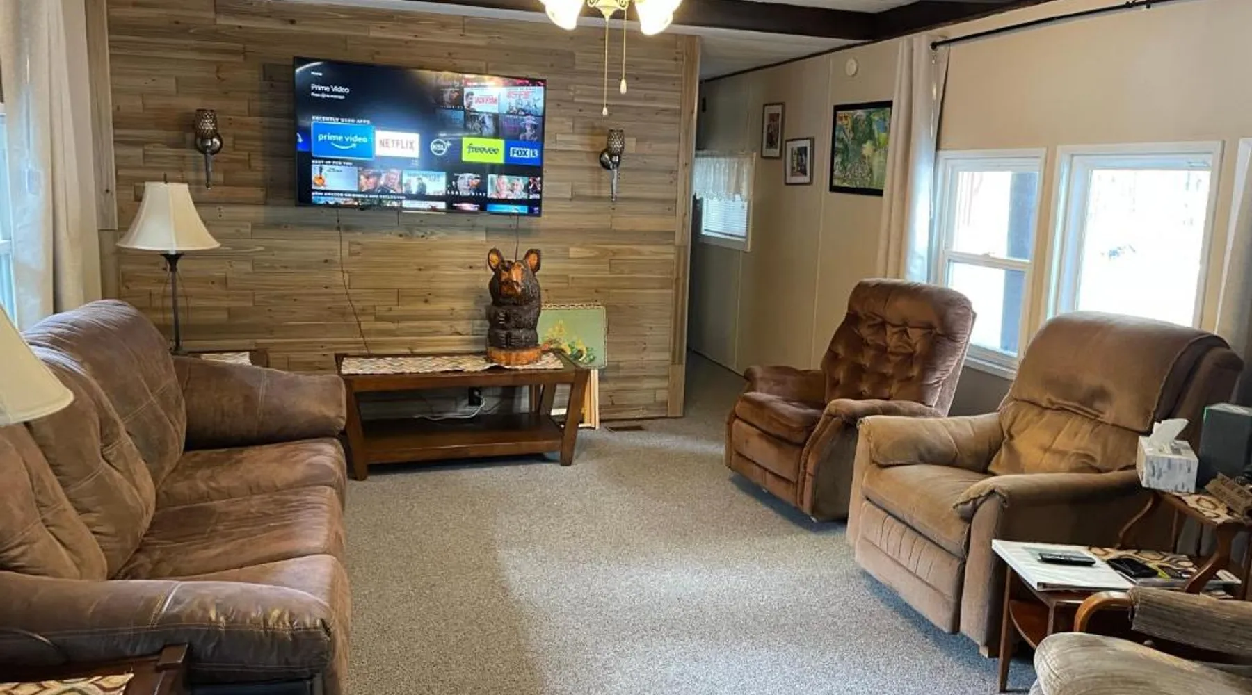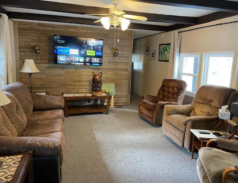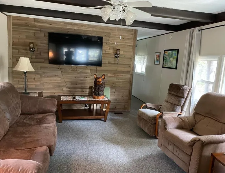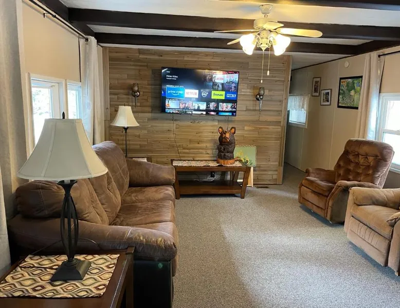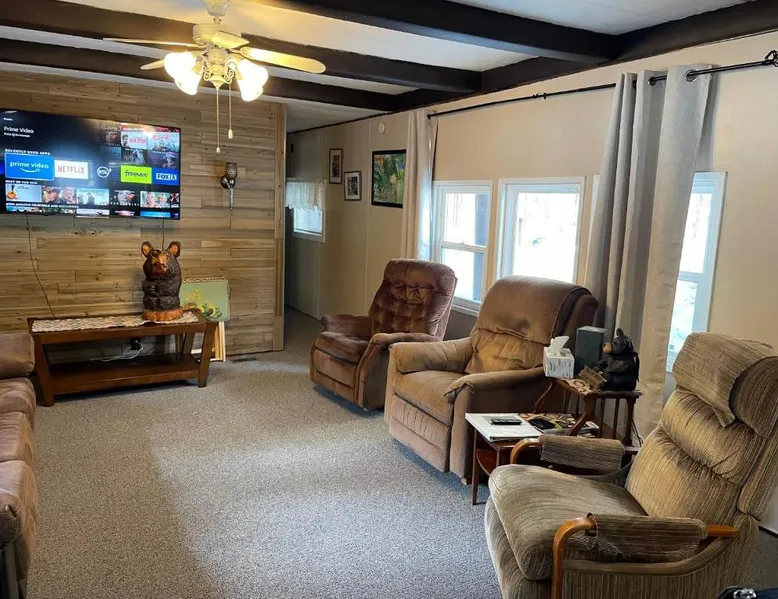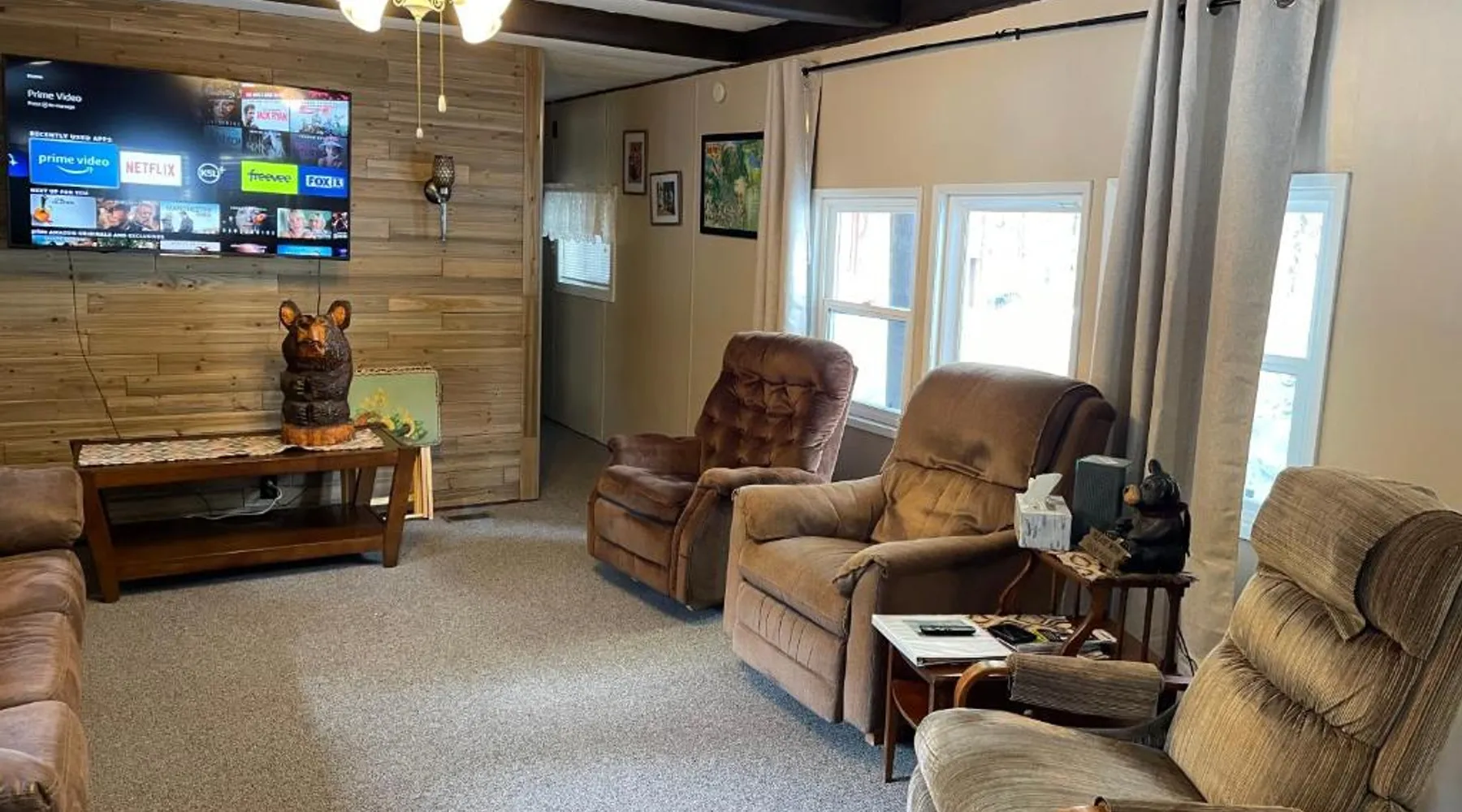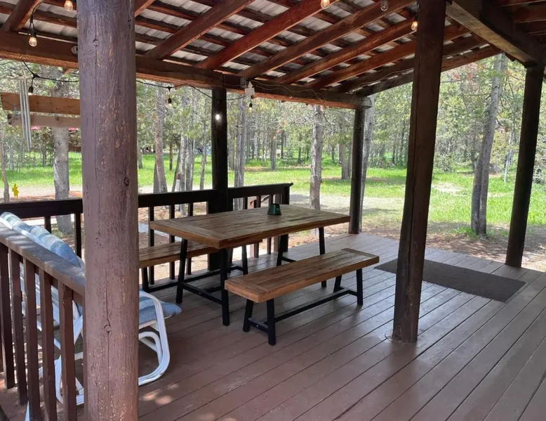 Spacious Accommodations: Grandma's Home in the Woods. Yellowstone offers a spacious chalet in Island Park, featuring three bedrooms and a comfortable living room. The property includes a fully equipped kitchen, washing machine, and free WiFi. Outdoor Amenities: Guests can enjoy an outdoor fireplace, seating area, picnic area, and children's playground. The chalet provides free on-site private parking, a games room, and a dining area. Convenient Location: Located 28 mi from Yellowstone National Park, the chalet is near attractions such as the National Geographic Imax Theater and Yellowstone Historic Center Museum. Free streaming services and a washing machine enhance the stay. Guest Favorites: Guests highly rate the room comfort, ensuring a pleasant and relaxing experience. Guests will find a stovetop, a refrigerator, kitchenware and an oven in the fully equipped kitchen. The chalet also has a barbecue. The spacious chalet offers a flat-screen TV with streaming services, a washing machine, a private entrance, a tea and coffee maker as well as a quiet street view. The unit offers 4 beds.