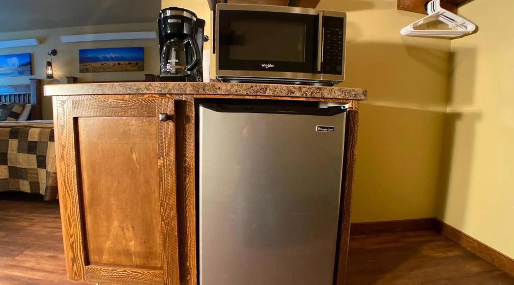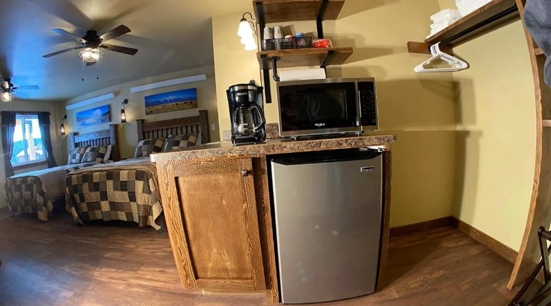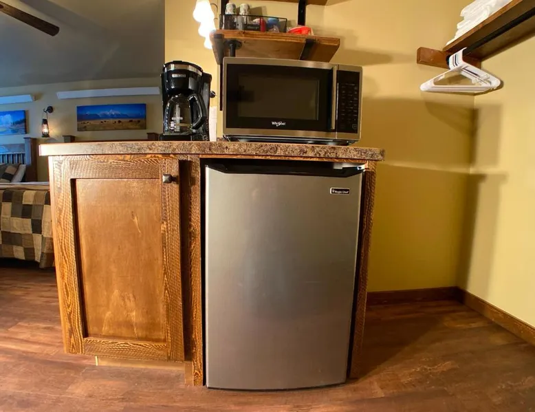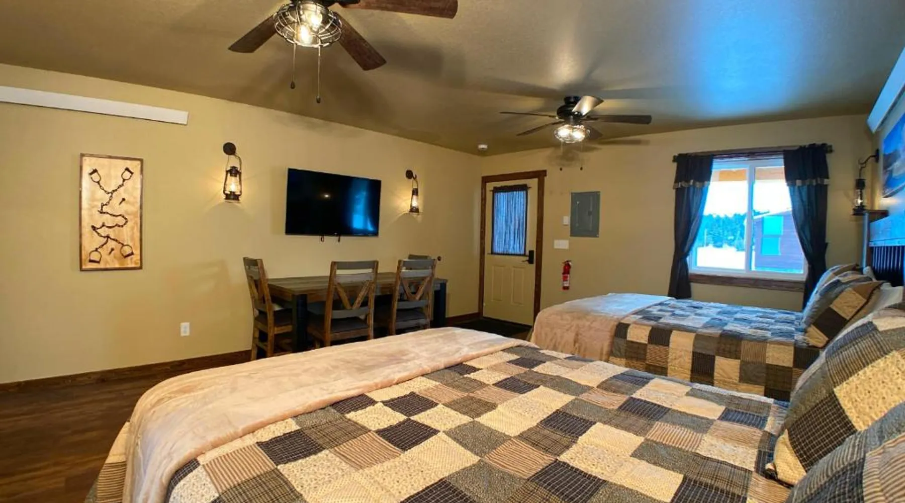 Comfortable Accommodations: Old West Escapes in Island Park offers a holiday home with family rooms. Guests enjoy a private bathroom, kitchenette, and free WiFi. Outdoor Amenities: The property features a garden and outdoor furniture, ideal for relaxation. Mountain views enhance the stay. Convenient Facilities: Free on-site private parking is available. Additional amenities include a washing machine, dishwasher, and TV. Nearby Attractions: Yellowstone National Park is 20 mi away. Other points of interest include the National Geographic Imax Theater and Yellowstone Historic Center Museum, each 22 mi from the property. Featuring a private entrance, this holiday home is consisted of of 1 living room, 1 separate bedroom and 1 bathroom with a bath and a hairdryer. Guests can make meals in the kitchen that is fitted with a stovetop, a refrigerator, a dishwasher and kitchenware. The holiday home offers a washing machine, a tea and coffee maker, a dining area, a flat-screen TV, as well as mountain views. The unit offers 2 beds.