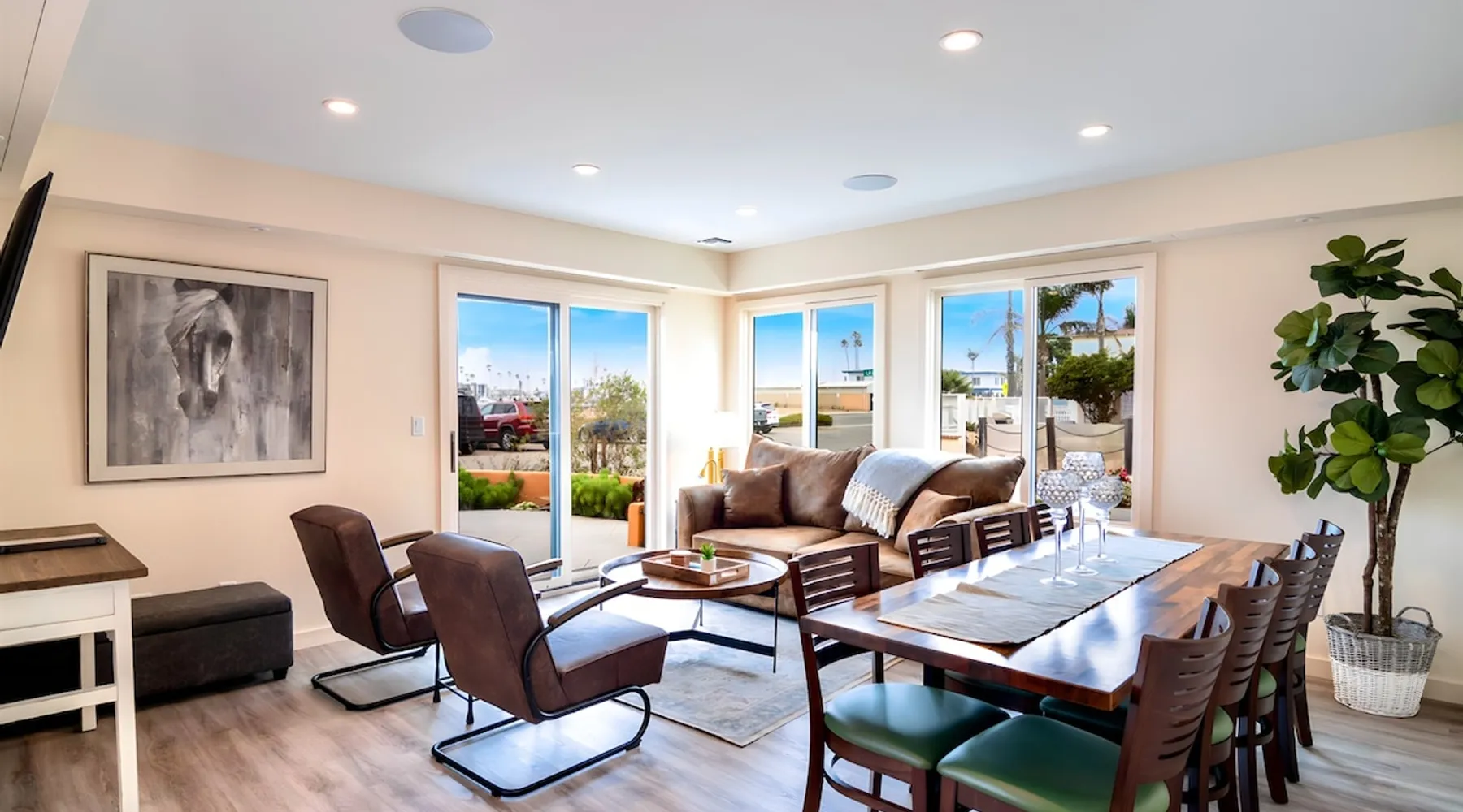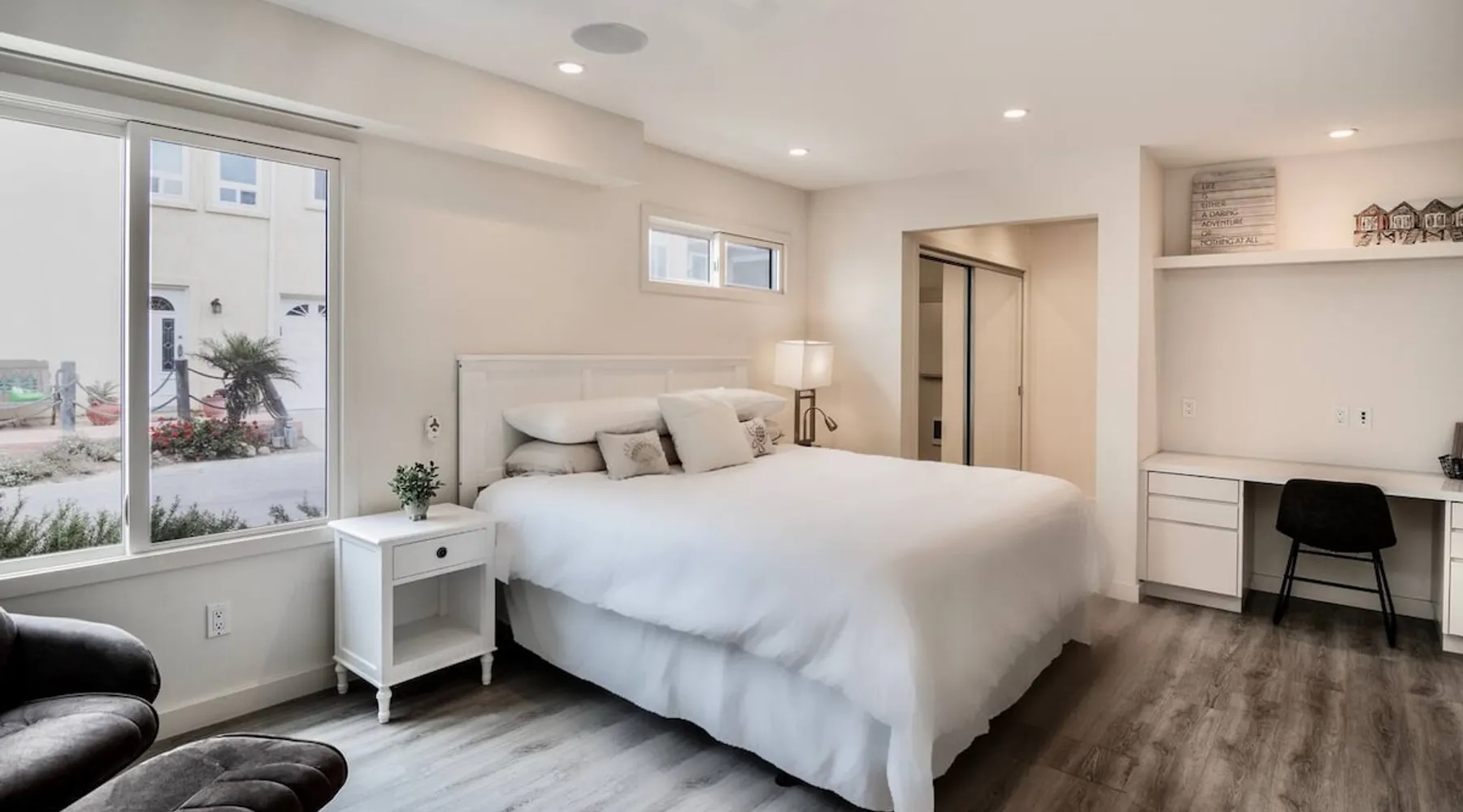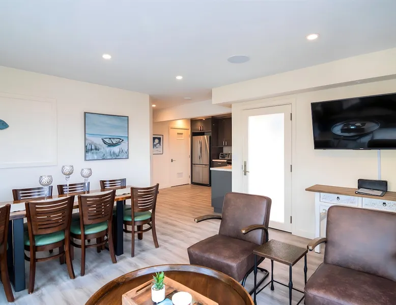 Welcome to The Sunset House Beach Vacation Rental! Just steps from the water, this spacious and pet-friendly townhouse offers a private patio, stunning water views, and all the comforts of home. Enjoy a fully stocked kitchen, plush king-sized beds, a fire pit, and beach gear. Explore Silver Strand, kayak at Hobie Beach, or take a boat tour to Anacapa Island. Your unforgettable beach escape awaits! The space This beautiful waterfront retreat is designed for comfort and relaxation. Whether you're enjoying a sunrise coffee on the private patio or unwinding in the cozy living room, you'll find everything you need for a perfect stay. • Prime Location: Steps from Kiddie & Hobie Beaches, easy access to the marina • Fully Stocked Home: Smart TVs, complimentary toiletries, and a full kitchen • Pet-Friendly: Dogs welcome with no extra fee (sorry, no cats) • Beach Essentials Provided: Chairs, towels, an umbrella, boogie boards, and a wagon • Kayaks Available: Two kayaks with life vests and transport wheels Bedrooms & Bathrooms: • Bedroom 1: King bed, en-suite bathroom, Smart TV, closet, and USB chargers • Bedroom 2: King bed, en-suite bathroom, Smart TV, closet, and access to dog run • Living Area: Sofa sleeper for additional guests • Bathrooms: Two en-suite bathrooms with walk-in showers, plus one hallway bathroom with a shower/tub combination Kitchen & Dining: • Fully stocked kitchen with stainless steel appliances • Coffee station with Keurig coffee maker and complimentary pods • Spice rack, olive oil, vinegar, and cookware provided • Dining area with seating for 8 Living Room: • Comfortable sofa and lounge seating • Smart TV with Fire TV and Roku (bring your login for streaming services) • Electric fireplace for cozy evenings • Books and board games for entertainment • Large private patio with seating, fire pit, and string lights • Outdoor dining table and gas grill for BBQ nights • Secure dog run with doggie door access • Garage with beach gear and kayaks Guest access BOOKING PROCESS: As soon as you book you will receive a message asking you to confirm your booking and to sign our rental agreement. You will then receive our Guest Portal. This is an amazing digital check-in system that will provide all your entry and wifi information as well as local activities, tours, restaurants, etc. You can even request early check-in! Confirm your information as soon as you book so you can start planning your vacay! PARKING: GARAGE: No garage parking DRIVEWAY: 1 car in driveway alongside the house STREET: Multiple car parking on the Court in front of the House