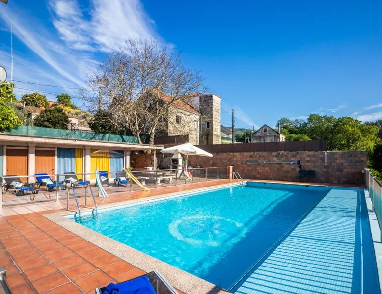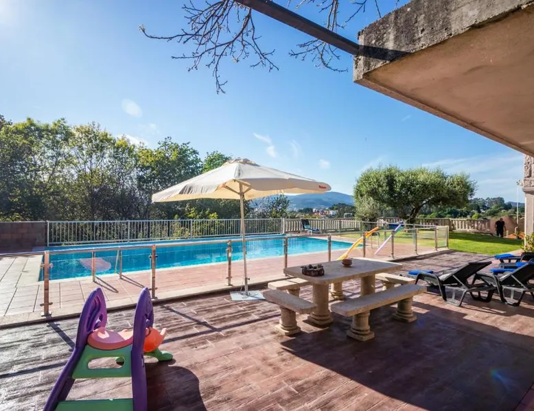 Spacious Accommodations: Mirador da Gouxa in Pontevedra offers a spacious holiday home with five bedrooms and three bathrooms. The property includes a living room, kitchen, and terrace, ensuring comfort for all guests. Outdoor Amenities: Guests can enjoy a swimming pool with stunning views, a lush garden, and a terrace. The terrace provides a perfect spot for relaxation, while the pool offers a refreshing escape. Modern Facilities: The holiday home features free WiFi, a fully equipped kitchen, and a 24-hour front desk. Additional amenities include family rooms, barbecue facilities, and free on-site private parking. Convenient Location: Located 21 mi from Vigo Airport, Mirador da Gouxa is near attractions such as Pontevedra Railway Station (1.7 mi) and Provincial Museum of Pontevedra (2.2 mi). Guests appreciate the friendly host and excellent kitchen. This holiday home's special features are the pool with a view and the fireplace. This spacious holiday home consists of 1 living room, 5 separate bedrooms and 3 bathrooms with a bath and free toiletries. Guests will find a stovetop, a refrigerator, a dishwasher and kitchenware in the well-fitted kitchen. The holiday home also offers a barbecue. Featuring a terrace with garden views, this holiday home also provides a washing machine and a flat-screen TV with streaming services. The unit offers 8 beds.