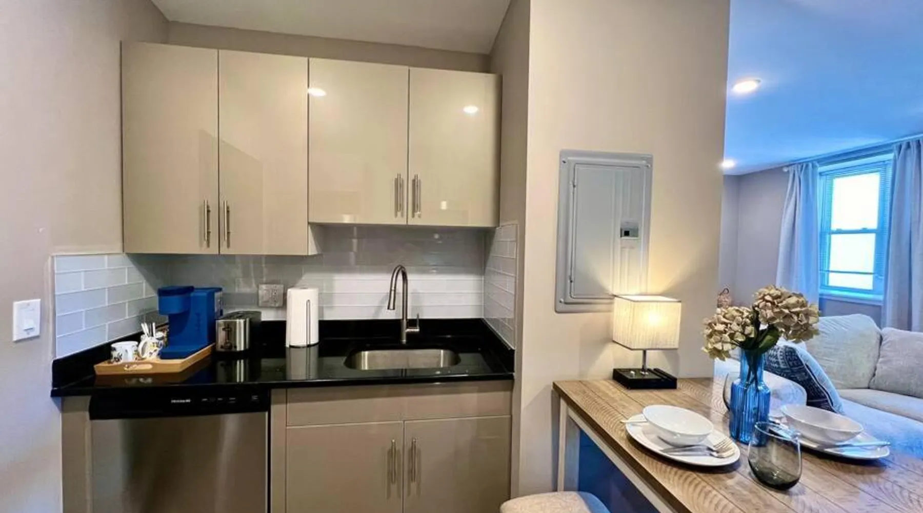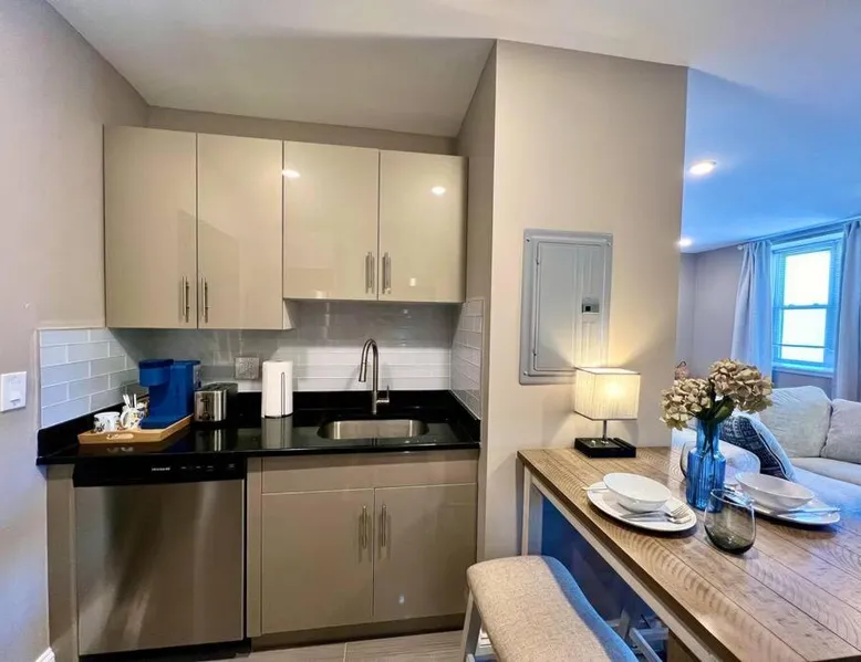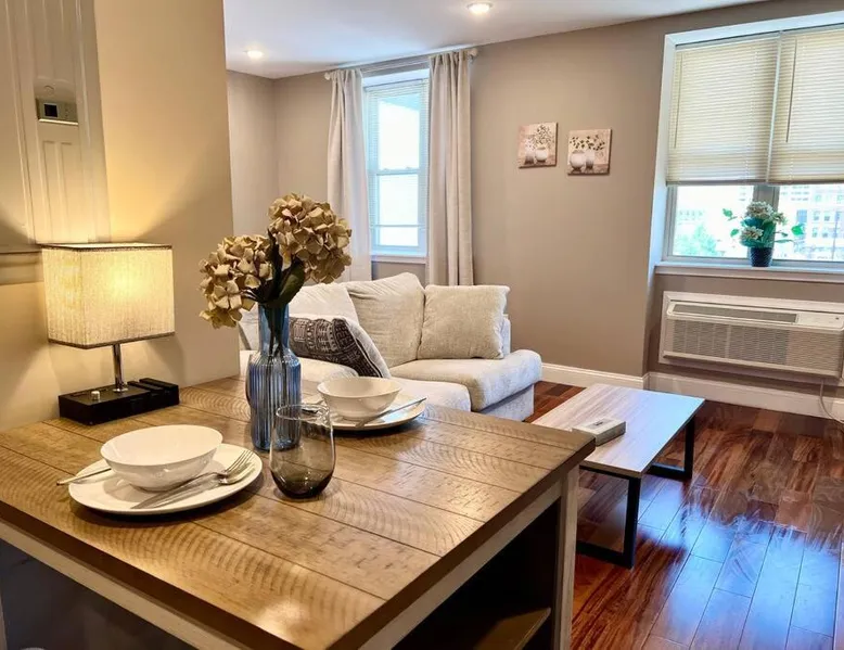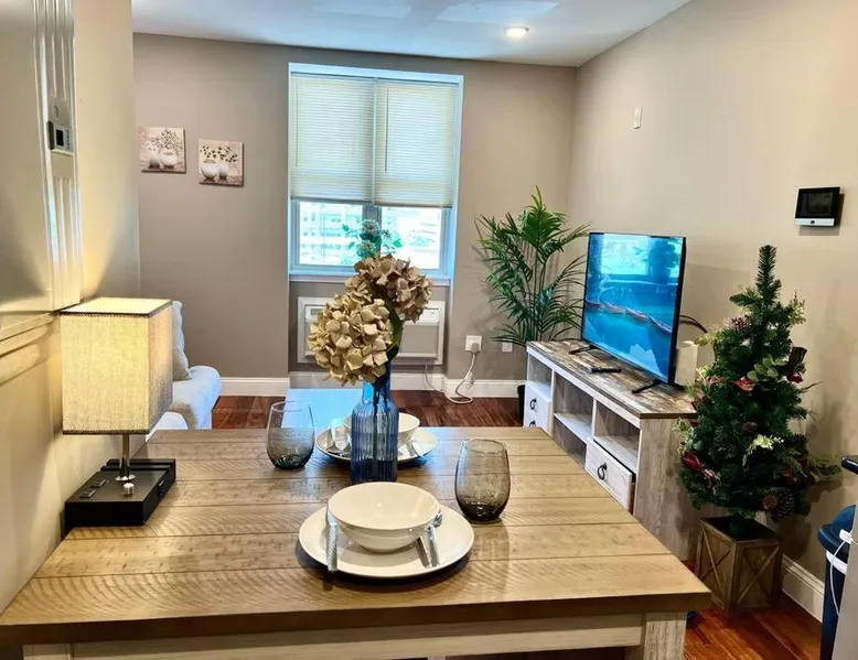 Comfortable Living Space: The apartment offers one bedroom and one bathroom with a king-size bed. Guests enjoy air-conditioning, a fully equipped kitchen, and a private entrance. The living area includes a dining table, sofa, and work desk. Modern Amenities: Free WiFi is available throughout the property. Additional facilities include private check-in and check-out, a elevator, laundry service, full-day security, breakfast in the room, express check-in and check-out, room service, and luggage storage. Prime Location: Located in Philadelphia city center, the apartment is less than 0.6 mi from the Barnes Foundation and a 12-minute walk to the Pennsylvania Convention Center. The Philadelphia Museum of Art and Mutter Museum are 1.2 mi away. Philadelphia International Airport is 9.9 mi from the property. Guests can make meals in the kitchen that is fitted with a stovetop, a refrigerator, a dishwasher and kitchenware. The air-conditioned apartment offers a TV with streaming services, a washing machine, a private entrance, soundproof walls as well as city views. The unit offers 1 bed.