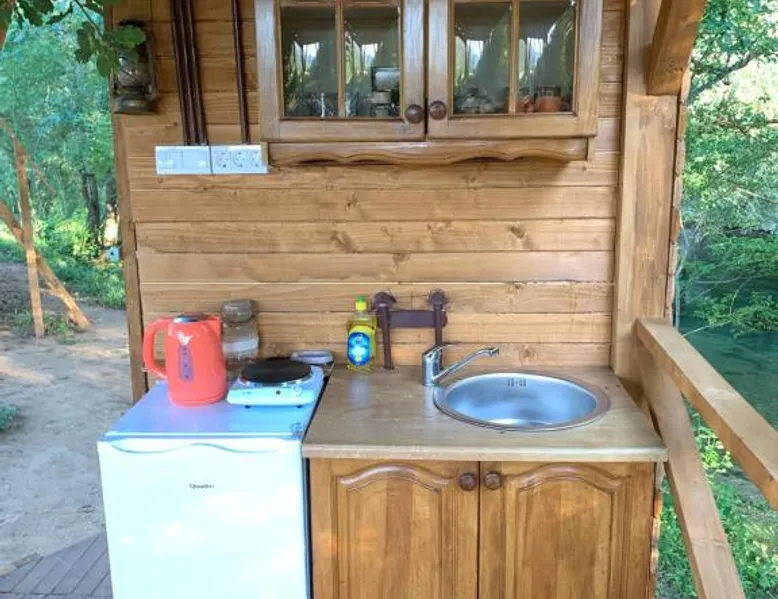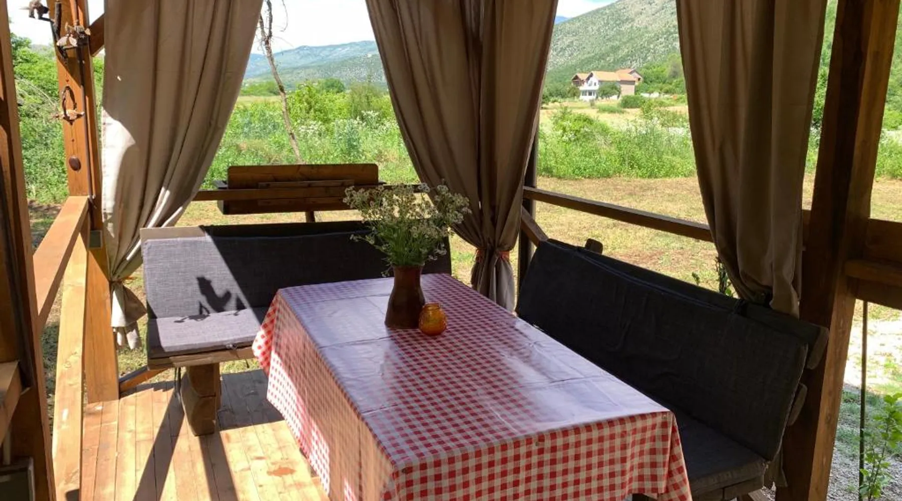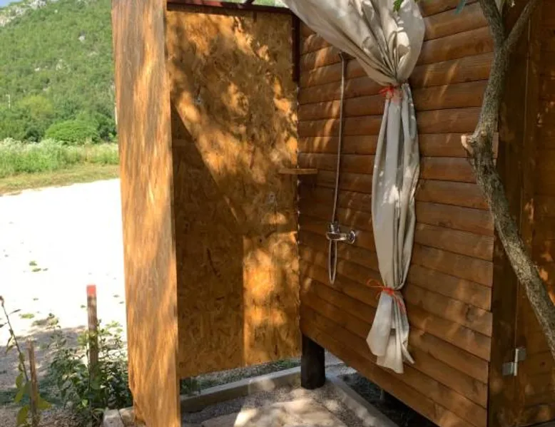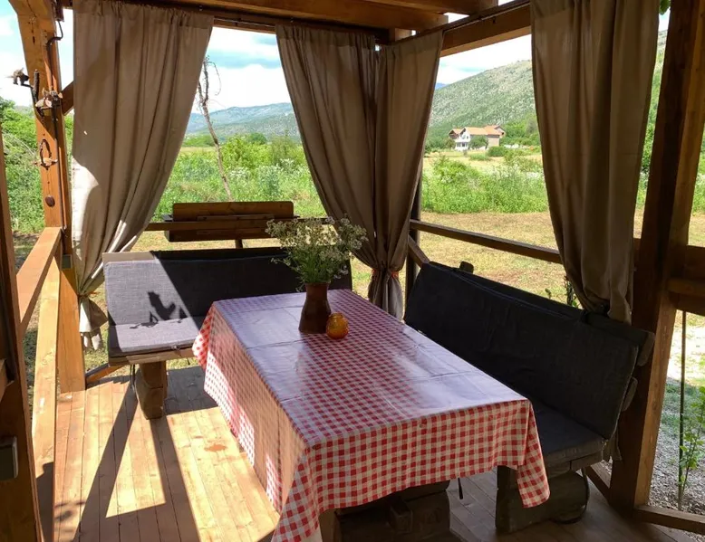 Elegant Accommodations: Cozy Treehouse with private sand beach in Blagaj offers a luxury tent experience with a private beach. Guests enjoy a spacious garden and terrace, complemented by free WiFi. Comfortable Amenities: The property features a kitchenette, private bathroom, and outdoor seating area. Additional amenities include a barbecue, dining table, and outdoor furniture. Free on-site private parking is available. Local Attractions: Located 5.6 mi from Mostar International Airport, the treehouse is near Old Bridge Mostar (9.9 mi) and Kravica Waterfall (25 mi). Other attractions include Muslibegovic House (11 mi) and St. Jacobs Church (17 mi). Guest Satisfaction: Highly rated by guests, the property ensures a pleasant and memorable stay with its excellent facilities and scenic views. The tent offers a private entrance, a tea and coffee maker, as well as a private bathroom featuring a shower and a hairdryer. Guests will find a stovetop, a refrigerator and kitchenware in the kitchenette. The tent also has a barbecue. Among the room amenities are a seating area, a dining area, heating as well as a patio and garden views. The unit offers 2 beds.