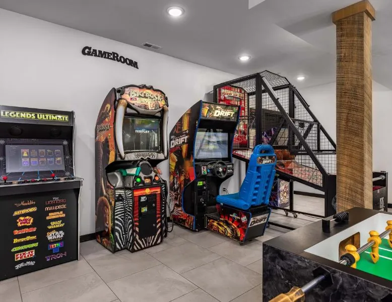 Spacious Accommodations: FREE Resort Amenities, Mini golf, Pool/Hot Tubs - PERFECT FOR LARGE FAMILY in Kimberling City offers seven bedrooms and eight bathrooms. The holiday home features a living room, dining area, and a fully equipped kitchen with modern appliances. Leisure Facilities: Guests can enjoy a year-round outdoor swimming pool, fitness room, hot tub, waterpark, games room, and children's playground. Additional amenities include air-conditioning, terrace, balcony, washing machine, patio, and lake views. Local Attractions: Silver Dollar City is 12 mi away, Mickey Gilley Theater and Titanic Museum are 16 mi, and Table Rock State Park is 19 mi from the property. Other attractions include Branson Landing and College Of The Ozarks, each 21 mi distant. Guests will have a special experience as this holiday home features a hot tub and a fireplace. Guests will find a stovetop, a refrigerator, a dishwasher and kitchenware in the well-equipped kitchen. The holiday home also features a barbecue. The spacious air-conditioned holiday home offers a TV with cable channels, a washing machine, a tea and coffee maker, a dining area as well as lake views. The unit has 8 beds.