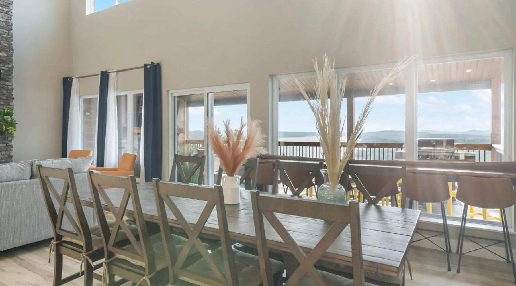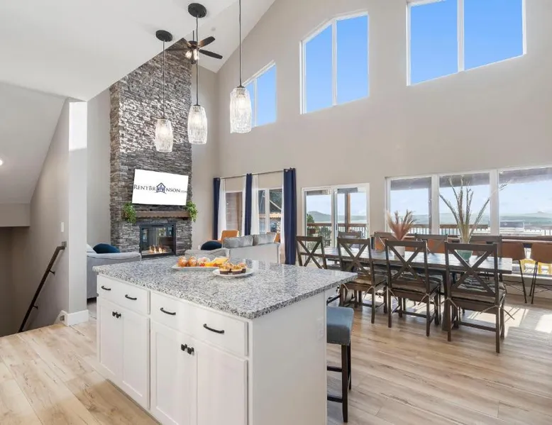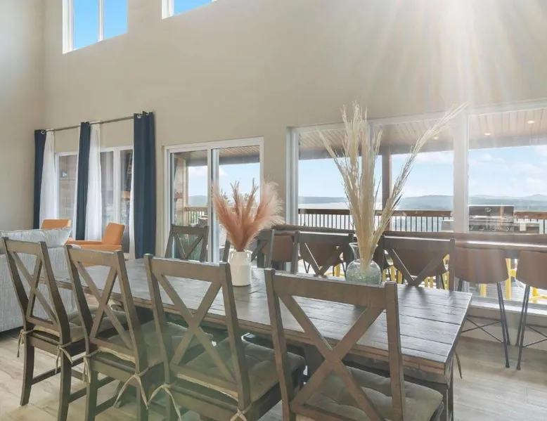 Spacious Accommodations: Sunset Pointe in Kimberling City offers a spacious holiday home with seven bedrooms and eight bathrooms. The property includes a living room and a fully equipped kitchen. Leisure Facilities: Guests can enjoy an indoor and outdoor swimming pool, massage services, and a games room. Free WiFi is available throughout the property. Convenient Amenities: The holiday home features air-conditioning, a balcony with lake and mountain views, a spa bath, washing machine, and a fully equipped kitchen. Free on-site parking is provided. Local Attractions: Silver Dollar City is 12 mi away, Mickey Gilley Theater 16 mi, and Table Rock State Park 20 mi from the property. Guests will have a special experience as this holiday home features a spa bath and a fireplace. This spacious holiday home is consisted of of 1 living room, 7 separate bedrooms and 8 bathrooms with a shower and a hairdryer. Guests will find a stovetop, a refrigerator, a dishwasher and kitchenware in the well-equipped kitchen. The holiday home also has a barbecue. The air-conditioned holiday home offers a TV, a washing machine, a dining area, tumble dryer as well as lake views. The unit offers 10 beds.