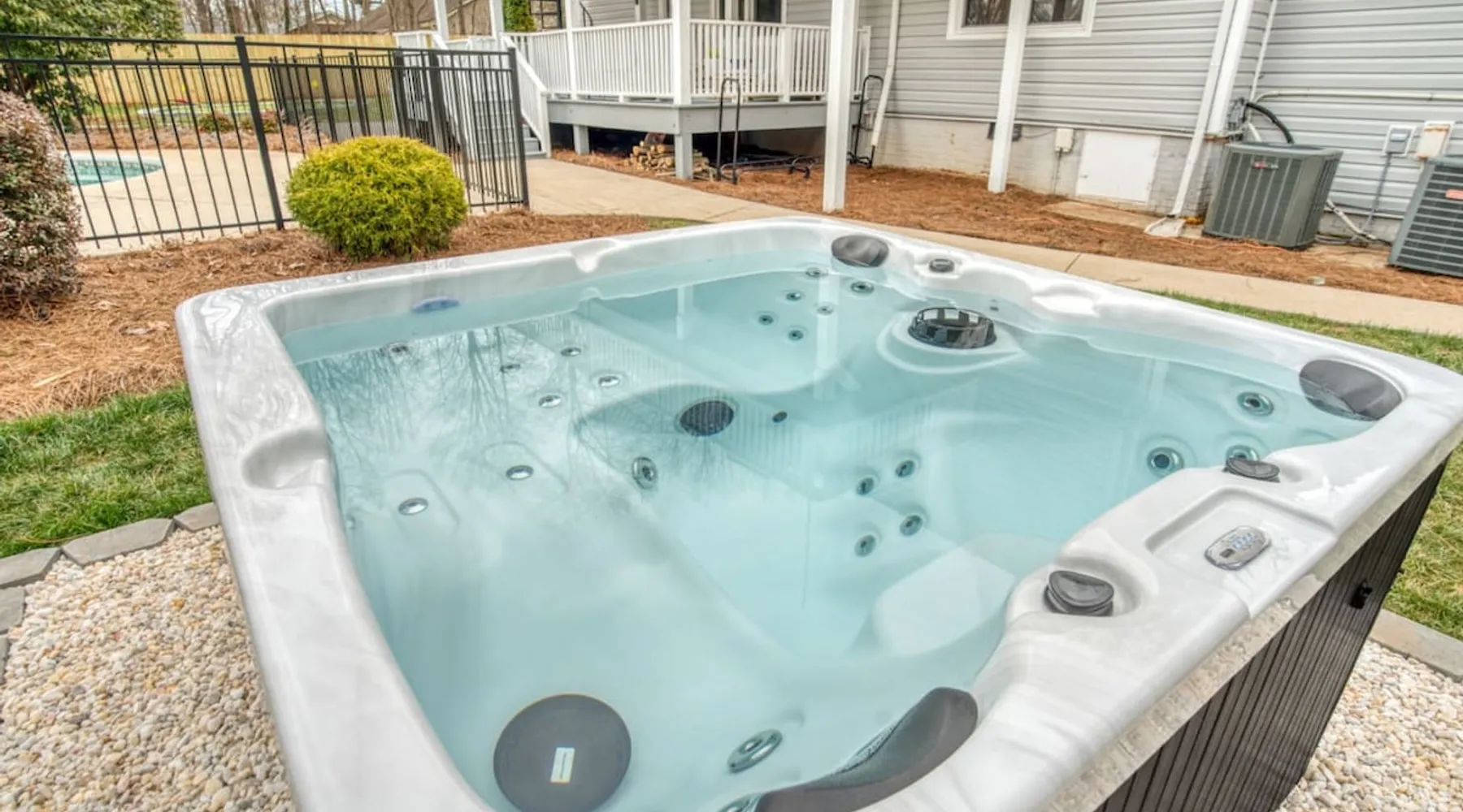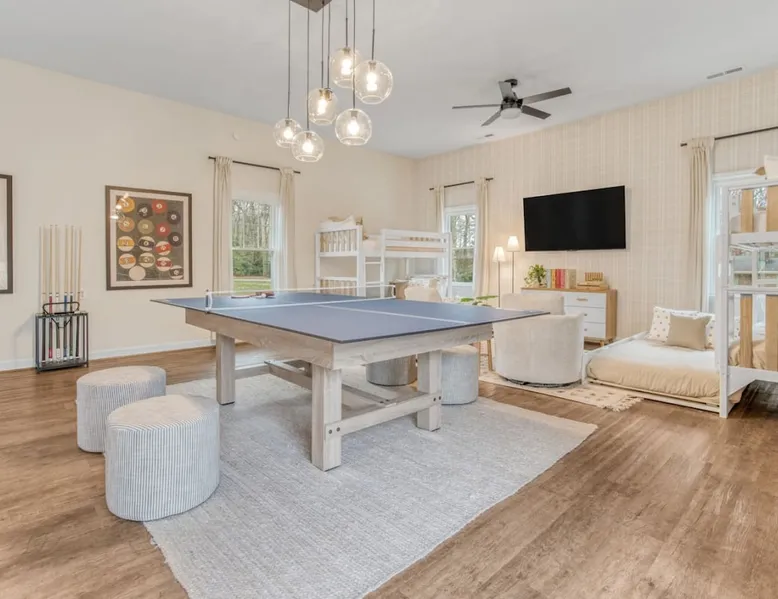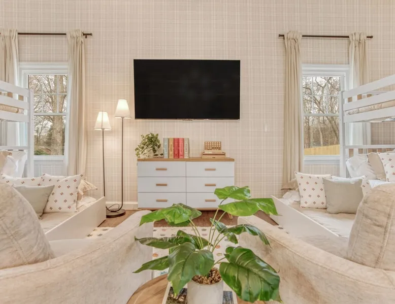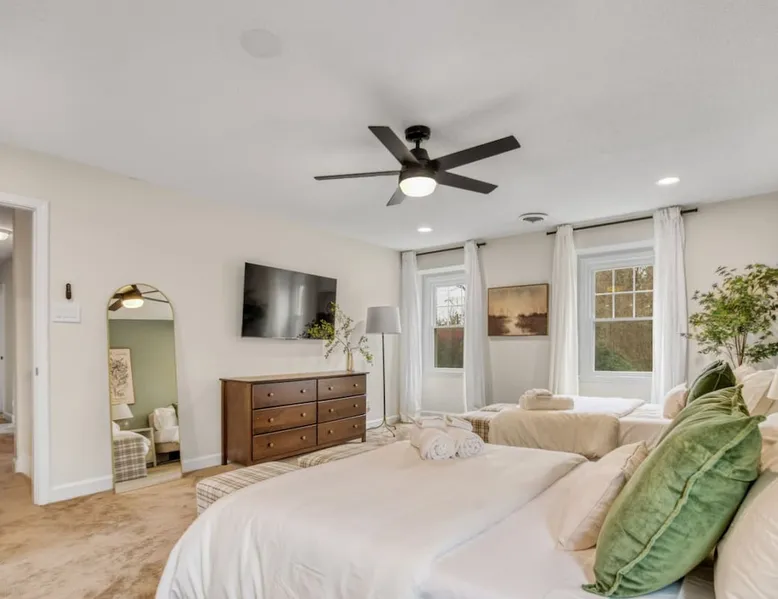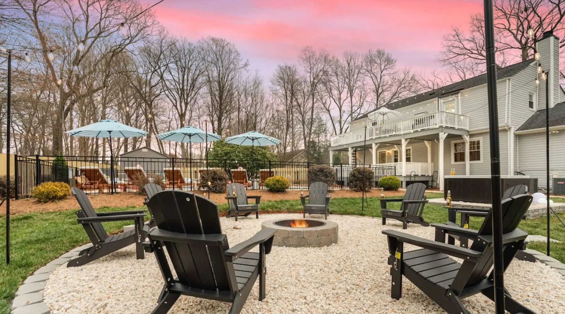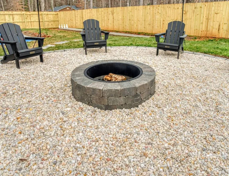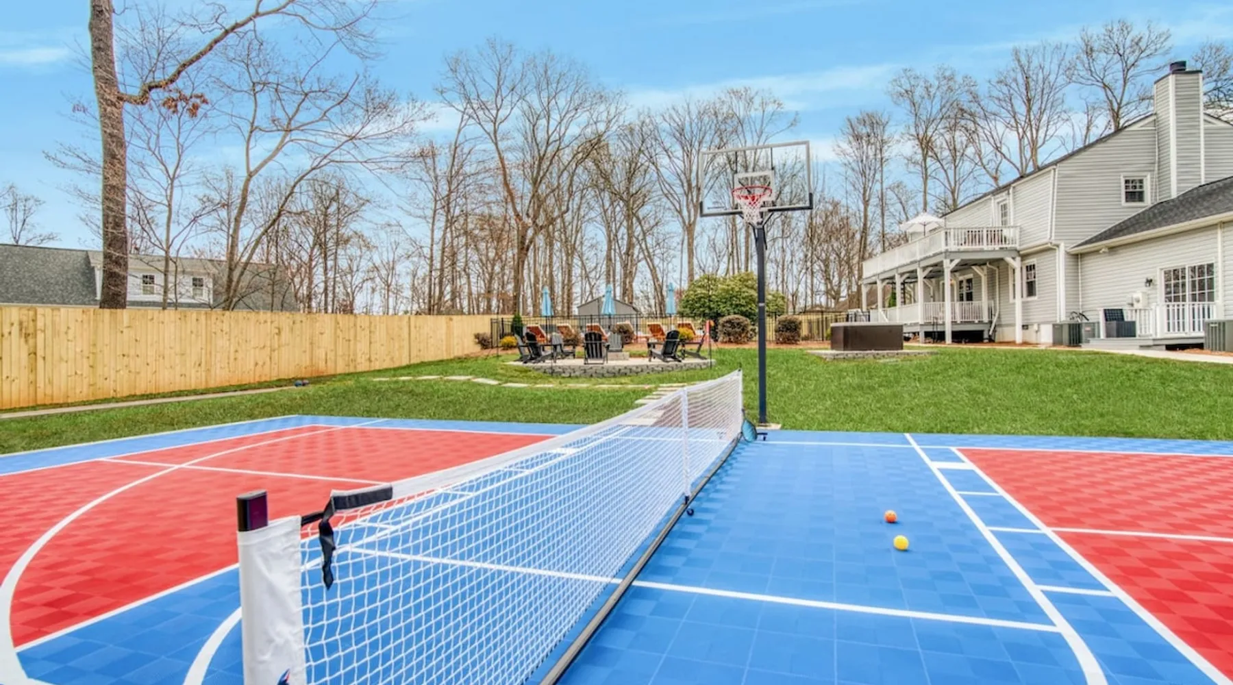 LUXURY! Vacation dream with our luxurious oasis for families! Boasting unique amenities like golf putting greens hot tub balcony deck pickleball court two basketball goals and outdoor bowling alley this home is a paradise for leisure and sports enthusiasts alike. Accommodate 10 adults and 6 kids with 11 beds. n n18 min to NCAA & ACC Tournaments' Greensboro Coliseum n18 min to PGA Tour Sedgefield Country Club Golf Course n28 min to High Point Furniture Market n nDiscover Unmatched Luxury Here! The space **NO PARTIES, GATHERINGS, OR EVENTS** *NO CHIPPING GOLF BALLS* *NO OUTDOOR MUSIC* ☆☆ PLEASE READ HOUSE RULES BEFORE BOOKING IN THE HOUSE RULES SECTION (NOT HERE)☆☆ KEY FEATURES: ☀ 5 beautiful bedrooms; 1 king, 2 queen, 2 full beds, & 6 twin beds (2 twin-over-twin bunk beds with trundle beds) ☀ 3.5 bathrooms, including a master ensuite ☀ Modern kitchen with new, stainless steel appliances ☀ Open living room with lots of comfy seating & smart TVs ☀ Dining within kitchen room seating to comfortably accommodate 10 (plus countertop seating & outdoor dining) ☀ STUNNING backyard with TONS of amenities; golf putting greens, pickleball court, outdoor bowling alley, pool, hot tub, fire pit, pool table, ping pong, BBQ grill, corn hole, & more! Here Are A Few Kind Words From Our Past Guests: "Absolutely loved our stay! Waking up to the serene glow of sunlight filtering in made each morning memorable. There are so many amenities that it was like an amusement park! Looking forward to our next stay!" - Olivia "Jordan was an outstanding host, offering prompt replies and helpful tips. The property itself is stunning, melding comfort with style, all while being conveniently near downtown Greensboro. Highly recommend for a memorable stay." - Sophia "I was charmed by this place from the moment we arrived, finding it exactly as depicted! Impeccably clean with a host that sets the bar for excellence. It's a definite must-return for me!" - Ava **NO PARTIES, GATHERINGS, OR EVENTS** *NO CHIPPING GOLF BALLS* *NO OUTDOOR MUSIC* ☆☆ PLEASE READ HOUSE RULES BEFORE BOOKING IN THE HOUSE RULES SECTION (NOT HERE)☆☆ Guest access ☆☆ BEDROOMS ☆☆ In this home, you'll find five bedrooms. The master bedroom is on the upper level, with two full beds, smart TV, and private ensuite bathroom. Right across the hall are four more bedrooms, with a king, queen, queen, and full bed accordingly. On the main level, there are two bedrooms located right off the kitchen & the rest of the entertainment area. Between the two bedrooms share a full bathroom. On the lower level den, there is an additional bedroom. This room has a pool table, ping pong table conversion kit, and arcade games. Plus it is filled with two twin-over-twin bunk beds and two trundle beds (total of 6 beds), swivel chairs, and lots of games, including board games! ☆☆ BATHROOMS ☆☆ There are three bathrooms spread out across this home, all of which have been completely renovated. The master ensuite has two sinks, a toilet, and shower only with a seat inside. The hallway bathroom right off of the other four second floor bedrooms is equipped with a sink, a toilet, and a shower/tub combo. On the lower level den, there is a full bathroom right off of the main entertaining area with a sink, toilet, and shower/tub combo. On the main floor, there is a half bath connected to the kitchen room. ☆☆ KITCHEN & DINING ☆☆ The modern, open kitchen is located right off of the main living areas, and is loaded with all new stainless steel appliances & a coffee station (including a Keurig & coffee pods). Bright, open, and beautifully designed, this is a chef's kitchen made for entertaining! The dining room is right next to the kitchen, with enough seating to comfortably fit 6 people (plus additional seating in the kitchen for 4 more) with lots of natural light, looking over all the amazing amenities in the backyard, just steps away! ☆☆ LIVING ROOM ☆☆ The main living room is on the main level, attached to the kitchen & dining areas. Lots of comfy seating on an oversized sectional, a large smart TV, and a separate seating area tucked away next to the main living area, with some additional seating & tabletop games to enjoy! ☆☆ OUTDOOR SPACE ☆☆ The main attraction of this home - WOW! This yard is HUGE and has everything you and your family/friends could ask for: ☀ Pool (unavailable September-May) ☀ Hot tub ☀ Golf Putting Greens ☀ Pickleball Court ☀ Basketball Court ☀ Fire pit (wood-burning) ☀ Corn Hole ☀ Sunbathing chairs ☀ Outdoor lounge seating ☀ Outdoor dining tables ☀ BBQ grill There is so much to do here, that all of your friends & family will be thoroughly entertained throughout your entire stay. No matter the season, this resort-style backyard has it all. Book your stay with us today and you will NOT be disappointed. Get ready for a vacation you will never forget! ★☆ Book Now & Let Us Take Care Of You In Greensboro! ☆★ Other things to note ☆☆ PLEASE READ HOUSE RULES BEFORE BOOKING IN THE HOUSE RULES SECTION (NOT HERE)☆☆ **NO PARTIES, GATHERINGS, OR EVENTS** Local Property Manager: Blake This property includes security features, such as Schlage smart locks and Ring floodlight cameras, and noise decibel detectors for your safety and peace of mind. We are pet-friendly! Pet Fee is $150, max of 2, under 50 lbs each. Pool is not heated. Although it remains uncovered throughout the year, the pool is not available for use from September to May; however, the hot tub will be operational during those months. We'd like to set your expectations that the pool temperature will continue to be determined by the weather temperature, as this is a major contributing factor. PARKING: - ALL cars must park in the driveway which has a maximum of FOUR (4) cars - Do NOT park on the street in from our direct neighbors. The neighbors will TOW you. - Do NOT park on the street directly in front of the driveway **NO PAR
