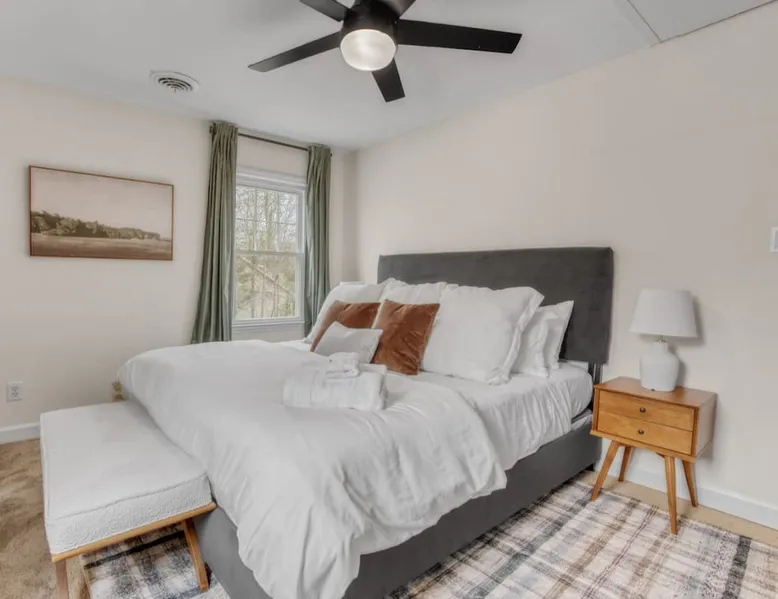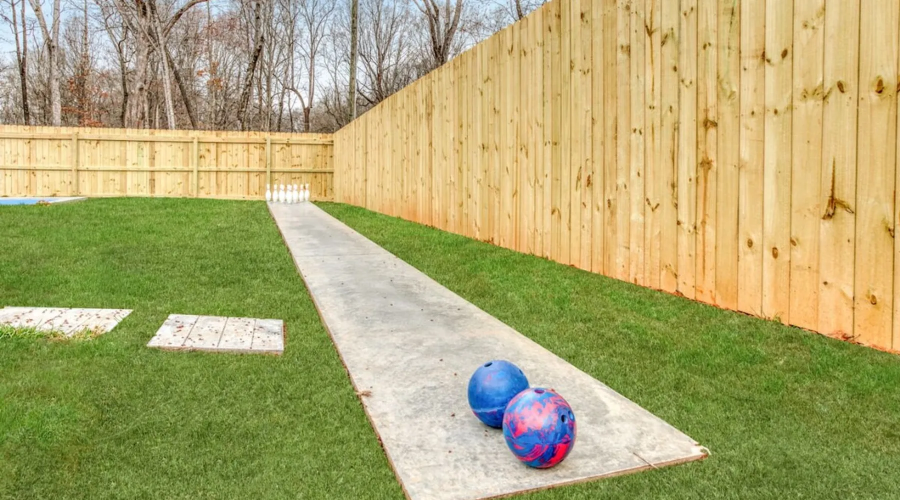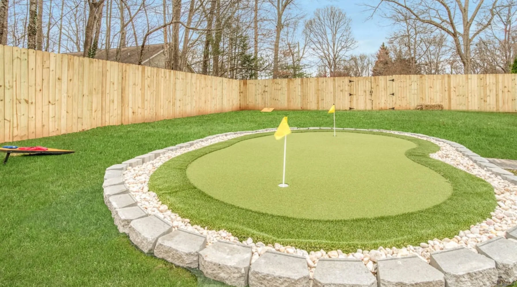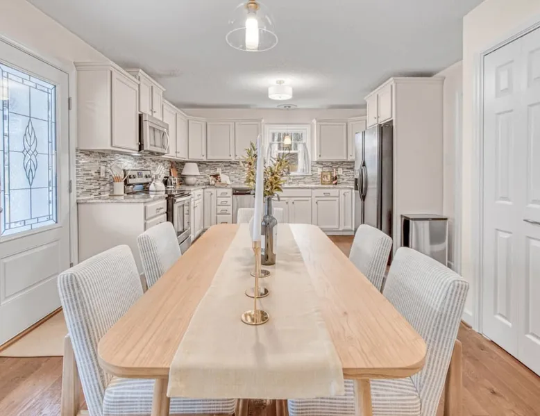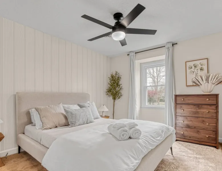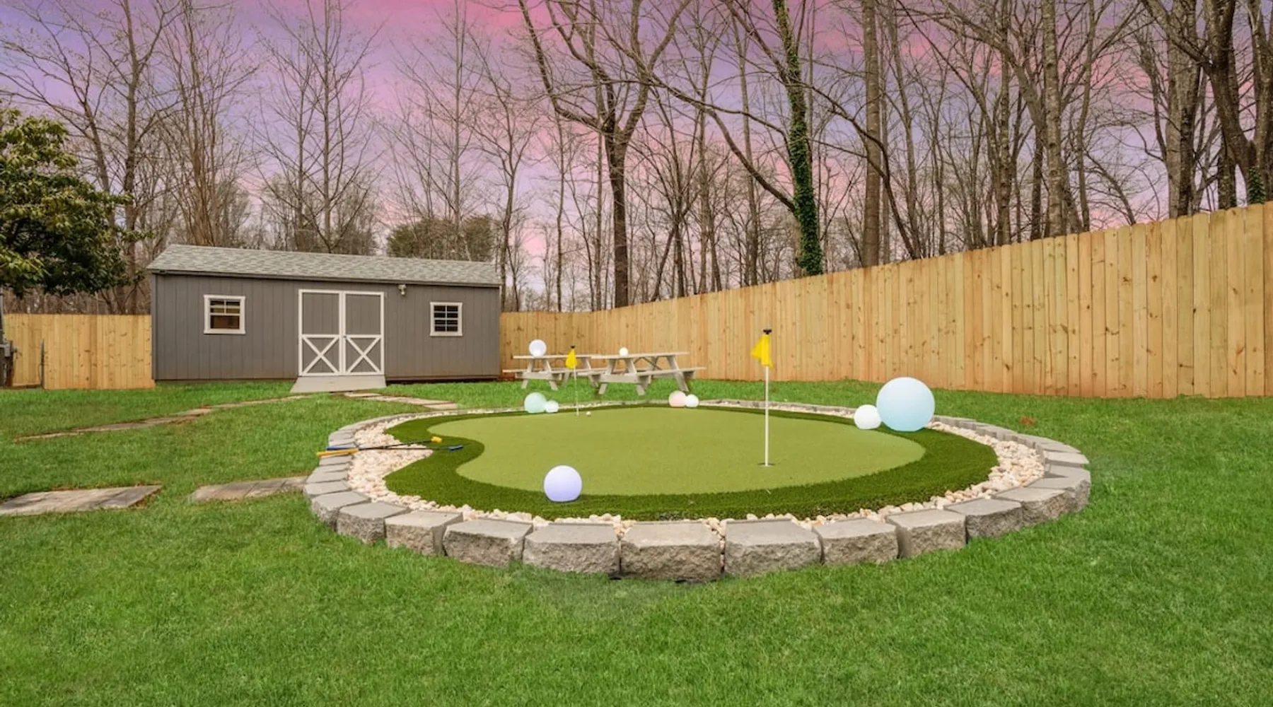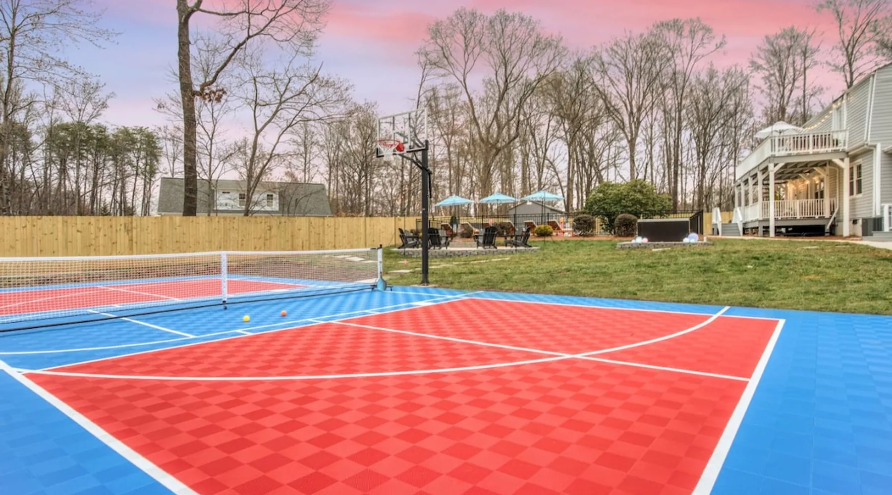 LUXURY! Vacation dream with our luxurious oasis for families! Boasting unique amenities like golf putting greens hot tub balcony deck pickleball court two basketball goals and outdoor bowling alley this home is a paradise for leisure and sports enthusiasts alike. Accommodate 10 adults and 6 kids with 11 beds. n n18 min to NCAA & ACC Tournaments' Greensboro Coliseum n18 min to PGA Tour Sedgefield Country Club Golf Course n28 min to High Point Furniture Market n nDiscover Unmatched Luxury Here! The space **NO PARTIES, GATHERINGS, OR EVENTS** *NO CHIPPING GOLF BALLS* *NO OUTDOOR MUSIC* ☆☆ PLEASE READ HOUSE RULES BEFORE BOOKING IN THE HOUSE RULES SECTION (NOT HERE)☆☆ KEY FEATURES: ☀ 5 beautiful bedrooms; 1 king, 2 queen, 2 full beds, & 6 twin beds (2 twin-over-twin bunk beds with trundle beds) ☀ 3.5 bathrooms, including a master ensuite ☀ Modern kitchen with new, stainless steel appliances ☀ Open living room with lots of comfy seating & smart TVs ☀ Dining within kitchen room seating to comfortably accommodate 10 (plus countertop seating & outdoor dining) ☀ STUNNING backyard with TONS of amenities; golf putting greens, pickleball court, outdoor bowling alley, pool, hot tub, fire pit, pool table, ping pong, BBQ grill, corn hole, & more! Here Are A Few Kind Words From Our Past Guests: "Absolutely loved our stay! Waking up to the serene glow of sunlight filtering in made each morning memorable. There are so many amenities that it was like an amusement park! Looking forward to our next stay!" - Olivia "Jordan was an outstanding host, offering prompt replies and helpful tips. The property itself is stunning, melding comfort with style, all while being conveniently near downtown Greensboro. Highly recommend for a memorable stay." - Sophia "I was charmed by this place from the moment we arrived, finding it exactly as depicted! Impeccably clean with a host that sets the bar for excellence. It's a definite must-return for me!" - Ava **NO PARTIES, GATHERINGS, OR EVENTS** *NO CHIPPING GOLF BALLS* *NO OUTDOOR MUSIC* ☆☆ PLEASE READ HOUSE RULES BEFORE BOOKING IN THE HOUSE RULES SECTION (NOT HERE)☆☆ Guest access ☆☆ BEDROOMS ☆☆ In this home, you'll find five bedrooms. The master bedroom is on the upper level, with two full beds, smart TV, and private ensuite bathroom. Right across the hall are four more bedrooms, with a king, queen, queen, and full bed accordingly. On the main level, there are two bedrooms located right off the kitchen & the rest of the entertainment area. Between the two bedrooms share a full bathroom. On the lower level den, there is an additional bedroom. This room has a pool table, ping pong table conversion kit, and arcade games. Plus it is filled with two twin-over-twin bunk beds and two trundle beds (total of 6 beds), swivel chairs, and lots of games, including board games! ☆☆ BATHROOMS ☆☆ There are three bathrooms spread out across this home, all of which have been completely renovated. The master ensuite has two sinks, a toilet, and shower only with a seat inside. The hallway bathroom right off of the other four second floor bedrooms is equipped with a sink, a toilet, and a shower/tub combo. On the lower level den, there is a full bathroom right off of the main entertaining area with a sink, toilet, and shower/tub combo. On the main floor, there is a half bath connected to the kitchen room. ☆☆ KITCHEN & DINING ☆☆ The modern, open kitchen is located right off of the main living areas, and is loaded with all new stainless steel appliances & a coffee station (including a Keurig & coffee pods). Bright, open, and beautifully designed, this is a chef's kitchen made for entertaining! The dining room is right next to the kitchen, with enough seating to comfortably fit 6 people (plus additional seating in the kitchen for 4 more) with lots of natural light, looking over all the amazing amenities in the backyard, just steps away! ☆☆ LIVING ROOM ☆☆ The main living room is on the main level, attached to the kitchen & dining areas. Lots of comfy seating on an oversized sectional, a large smart TV, and a separate seating area tucked away next to the main living area, with some additional seating & tabletop games to enjoy! ☆☆ OUTDOOR SPACE ☆☆ The main attraction of this home - WOW! This yard is HUGE and has everything you and your family/friends could ask for: ☀ Pool (unavailable September-May) ☀ Hot tub ☀ Golf Putting Greens ☀ Pickleball Court ☀ Basketball Court ☀ Fire pit (wood-burning) ☀ Corn Hole ☀ Sunbathing chairs ☀ Outdoor lounge seating ☀ Outdoor dining tables ☀ BBQ grill There is so much to do here, that all of your friends & family will be thoroughly entertained throughout your entire stay. No matter the season, this resort-style backyard has it all. Book your stay with us today and you will NOT be disappointed. Get ready for a vacation you will never forget! ★☆ Book Now & Let Us Take Care Of You In Greensboro! ☆★ Other things to note ☆☆ PLEASE READ HOUSE RULES BEFORE BOOKING IN THE HOUSE RULES SECTION (NOT HERE)☆☆ **NO PARTIES, GATHERINGS, OR EVENTS** Local Property Manager: Blake This property includes security features, such as Schlage smart locks and Ring floodlight cameras, and noise decibel detectors for your safety and peace of mind. We are pet-friendly! Pet Fee is $150, max of 2, under 50 lbs each. Pool is not heated. Although it remains uncovered throughout the year, the pool is not available for use from September to May; however, the hot tub will be operational during those months. We'd like to set your expectations that the pool temperature will continue to be determined by the weather temperature, as this is a major contributing factor. PARKING: - ALL cars must park in the driveway which has a maximum of FOUR (4) cars - Do NOT park on the street in from our direct neighbors. The neighbors will TOW you. - Do NOT park on the street directly in front of the driveway **NO PAR