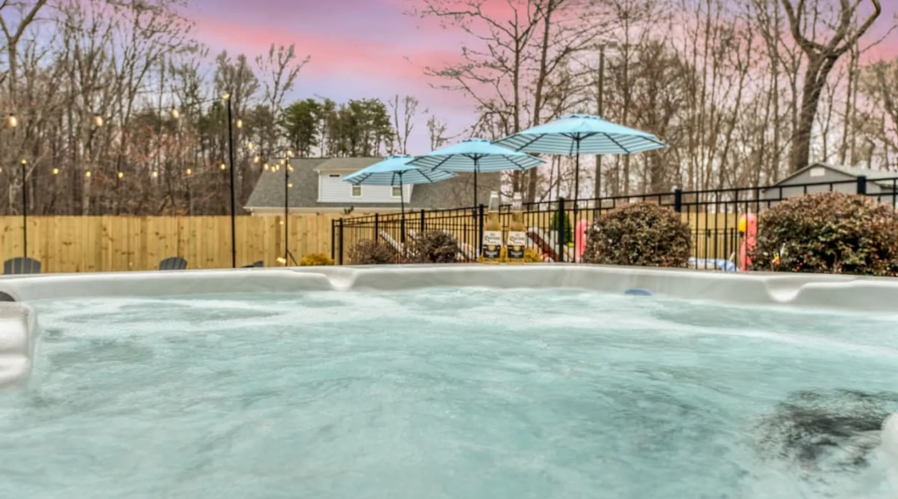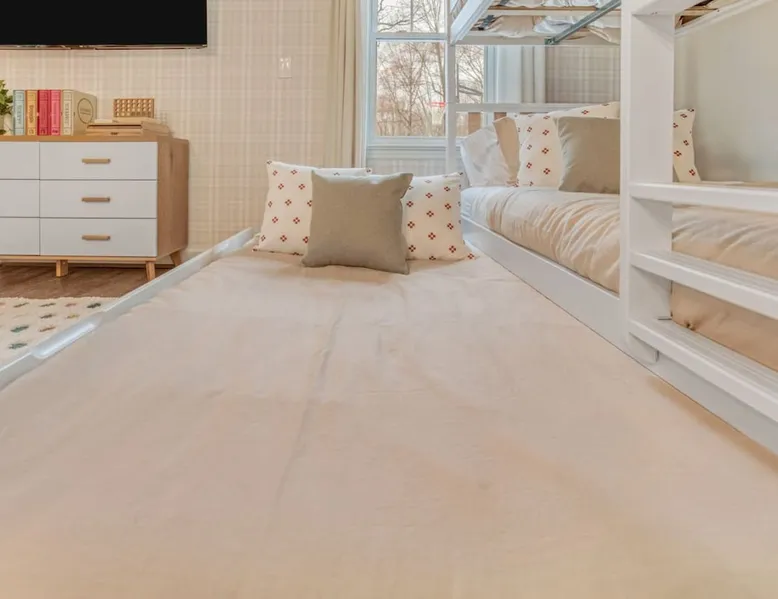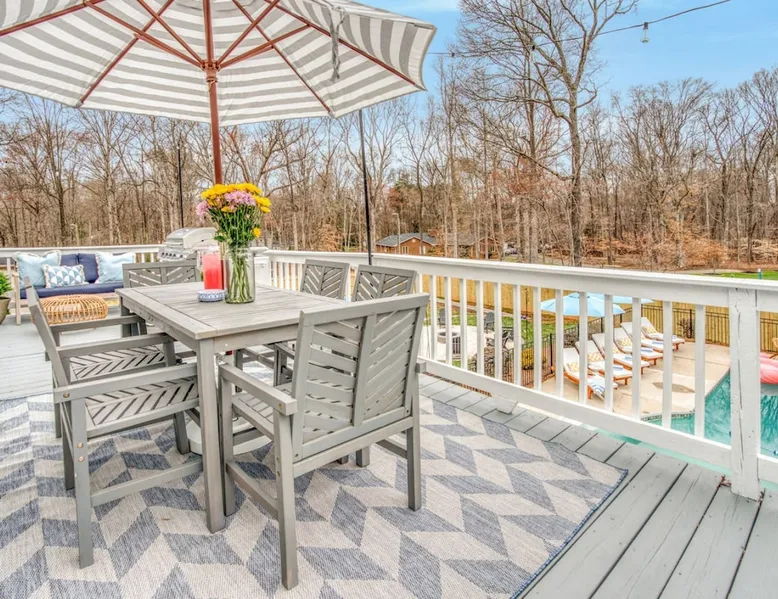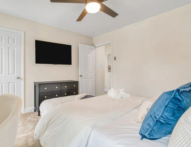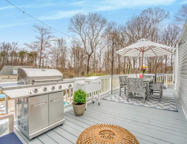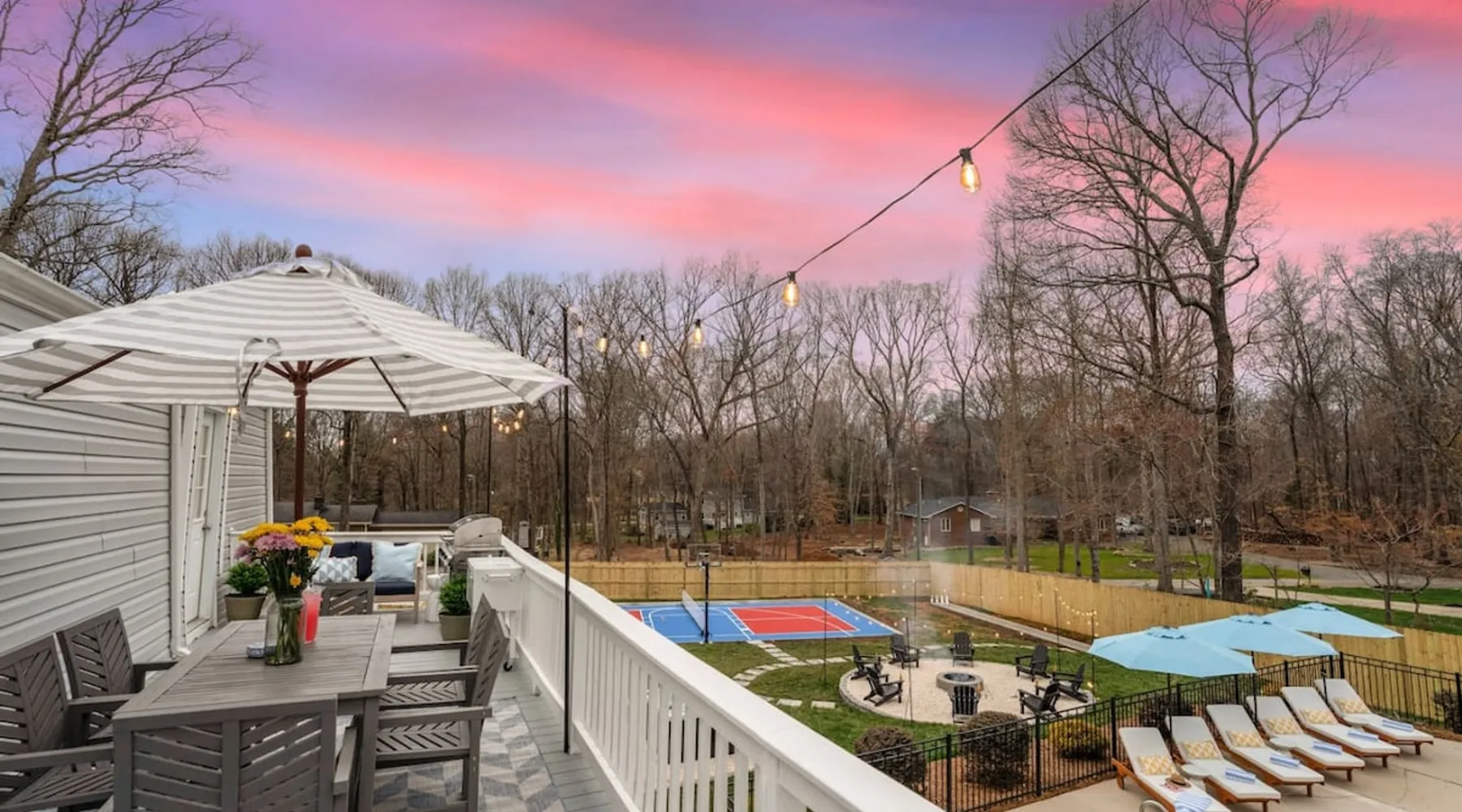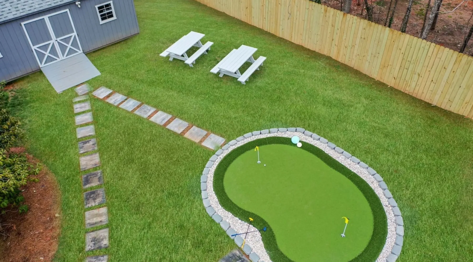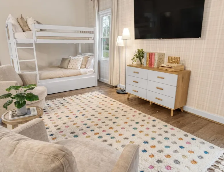 LUXURY! Vacation dream with our luxurious oasis for families! Boasting unique amenities like golf putting greens hot tub balcony deck pickleball court two basketball goals and outdoor bowling alley this home is a paradise for leisure and sports enthusiasts alike. Accommodate 10 adults and 6 kids with 11 beds. n n18 min to NCAA & ACC Tournaments' Greensboro Coliseum n18 min to PGA Tour Sedgefield Country Club Golf Course n28 min to High Point Furniture Market n nDiscover Unmatched Luxury Here! The space **NO PARTIES, GATHERINGS, OR EVENTS** *NO CHIPPING GOLF BALLS* *NO OUTDOOR MUSIC* ☆☆ PLEASE READ HOUSE RULES BEFORE BOOKING IN THE HOUSE RULES SECTION (NOT HERE)☆☆ KEY FEATURES: ☀ 5 beautiful bedrooms; 1 king, 2 queen, 2 full beds, & 6 twin beds (2 twin-over-twin bunk beds with trundle beds) ☀ 3.5 bathrooms, including a master ensuite ☀ Modern kitchen with new, stainless steel appliances ☀ Open living room with lots of comfy seating & smart TVs ☀ Dining within kitchen room seating to comfortably accommodate 10 (plus countertop seating & outdoor dining) ☀ STUNNING backyard with TONS of amenities; golf putting greens, pickleball court, outdoor bowling alley, pool, hot tub, fire pit, pool table, ping pong, BBQ grill, corn hole, & more! Here Are A Few Kind Words From Our Past Guests: "Absolutely loved our stay! Waking up to the serene glow of sunlight filtering in made each morning memorable. There are so many amenities that it was like an amusement park! Looking forward to our next stay!" - Olivia "Jordan was an outstanding host, offering prompt replies and helpful tips. The property itself is stunning, melding comfort with style, all while being conveniently near downtown Greensboro. Highly recommend for a memorable stay." - Sophia "I was charmed by this place from the moment we arrived, finding it exactly as depicted! Impeccably clean with a host that sets the bar for excellence. It's a definite must-return for me!" - Ava **NO PARTIES, GATHERINGS, OR EVENTS** *NO CHIPPING GOLF BALLS* *NO OUTDOOR MUSIC* ☆☆ PLEASE READ HOUSE RULES BEFORE BOOKING IN THE HOUSE RULES SECTION (NOT HERE)☆☆ Guest access ☆☆ BEDROOMS ☆☆ In this home, you'll find five bedrooms. The master bedroom is on the upper level, with two full beds, smart TV, and private ensuite bathroom. Right across the hall are four more bedrooms, with a king, queen, queen, and full bed accordingly. On the main level, there are two bedrooms located right off the kitchen & the rest of the entertainment area. Between the two bedrooms share a full bathroom. On the lower level den, there is an additional bedroom. This room has a pool table, ping pong table conversion kit, and arcade games. Plus it is filled with two twin-over-twin bunk beds and two trundle beds (total of 6 beds), swivel chairs, and lots of games, including board games! ☆☆ BATHROOMS ☆☆ There are three bathrooms spread out across this home, all of which have been completely renovated. The master ensuite has two sinks, a toilet, and shower only with a seat inside. The hallway bathroom right off of the other four second floor bedrooms is equipped with a sink, a toilet, and a shower/tub combo. On the lower level den, there is a full bathroom right off of the main entertaining area with a sink, toilet, and shower/tub combo. On the main floor, there is a half bath connected to the kitchen room. ☆☆ KITCHEN & DINING ☆☆ The modern, open kitchen is located right off of the main living areas, and is loaded with all new stainless steel appliances & a coffee station (including a Keurig & coffee pods). Bright, open, and beautifully designed, this is a chef's kitchen made for entertaining! The dining room is right next to the kitchen, with enough seating to comfortably fit 6 people (plus additional seating in the kitchen for 4 more) with lots of natural light, looking over all the amazing amenities in the backyard, just steps away! ☆☆ LIVING ROOM ☆☆ The main living room is on the main level, attached to the kitchen & dining areas. Lots of comfy seating on an oversized sectional, a large smart TV, and a separate seating area tucked away next to the main living area, with some additional seating & tabletop games to enjoy! ☆☆ OUTDOOR SPACE ☆☆ The main attraction of this home - WOW! This yard is HUGE and has everything you and your family/friends could ask for: ☀ Pool (unavailable September-May) ☀ Hot tub ☀ Golf Putting Greens ☀ Pickleball Court ☀ Basketball Court ☀ Fire pit (wood-burning) ☀ Corn Hole ☀ Sunbathing chairs ☀ Outdoor lounge seating ☀ Outdoor dining tables ☀ BBQ grill There is so much to do here, that all of your friends & family will be thoroughly entertained throughout your entire stay. No matter the season, this resort-style backyard has it all. Book your stay with us today and you will NOT be disappointed. Get ready for a vacation you will never forget! ★☆ Book Now & Let Us Take Care Of You In Greensboro! ☆★ Other things to note ☆☆ PLEASE READ HOUSE RULES BEFORE BOOKING IN THE HOUSE RULES SECTION (NOT HERE)☆☆ **NO PARTIES, GATHERINGS, OR EVENTS** Local Property Manager: Blake This property includes security features, such as Schlage smart locks and Ring floodlight cameras, and noise decibel detectors for your safety and peace of mind. We are pet-friendly! Pet Fee is $150, max of 2, under 50 lbs each. Pool is not heated. Although it remains uncovered throughout the year, the pool is not available for use from September to May; however, the hot tub will be operational during those months. We'd like to set your expectations that the pool temperature will continue to be determined by the weather temperature, as this is a major contributing factor. PARKING: - ALL cars must park in the driveway which has a maximum of FOUR (4) cars - Do NOT park on the street in from our direct neighbors. The neighbors will TOW you. - Do NOT park on the street directly in front of the driveway **NO PAR