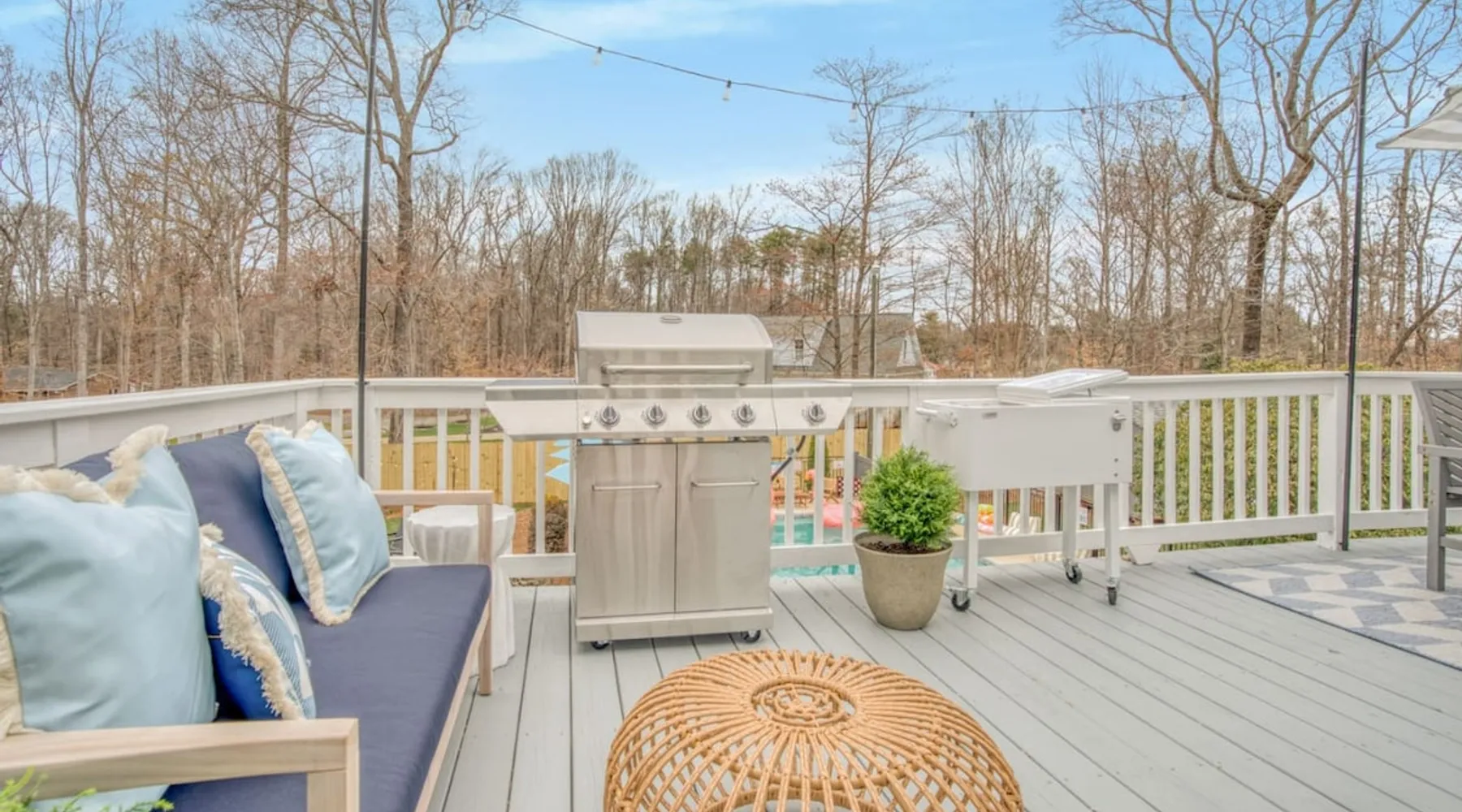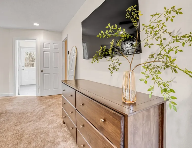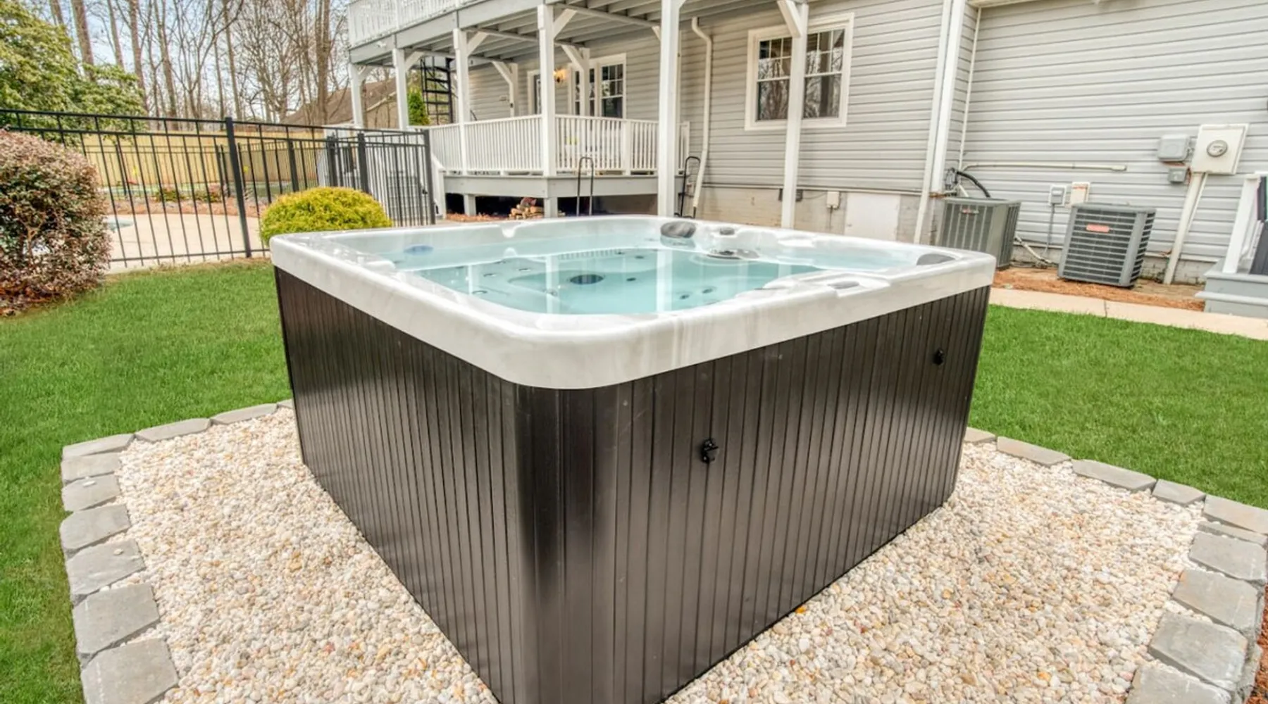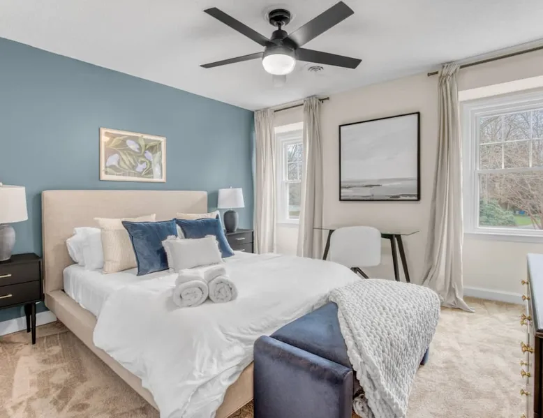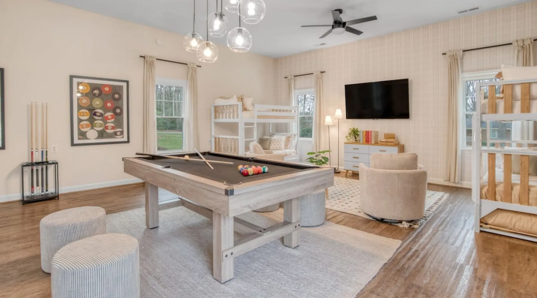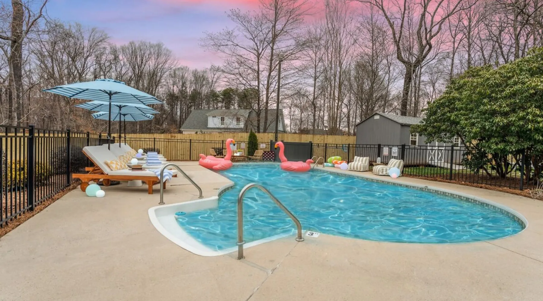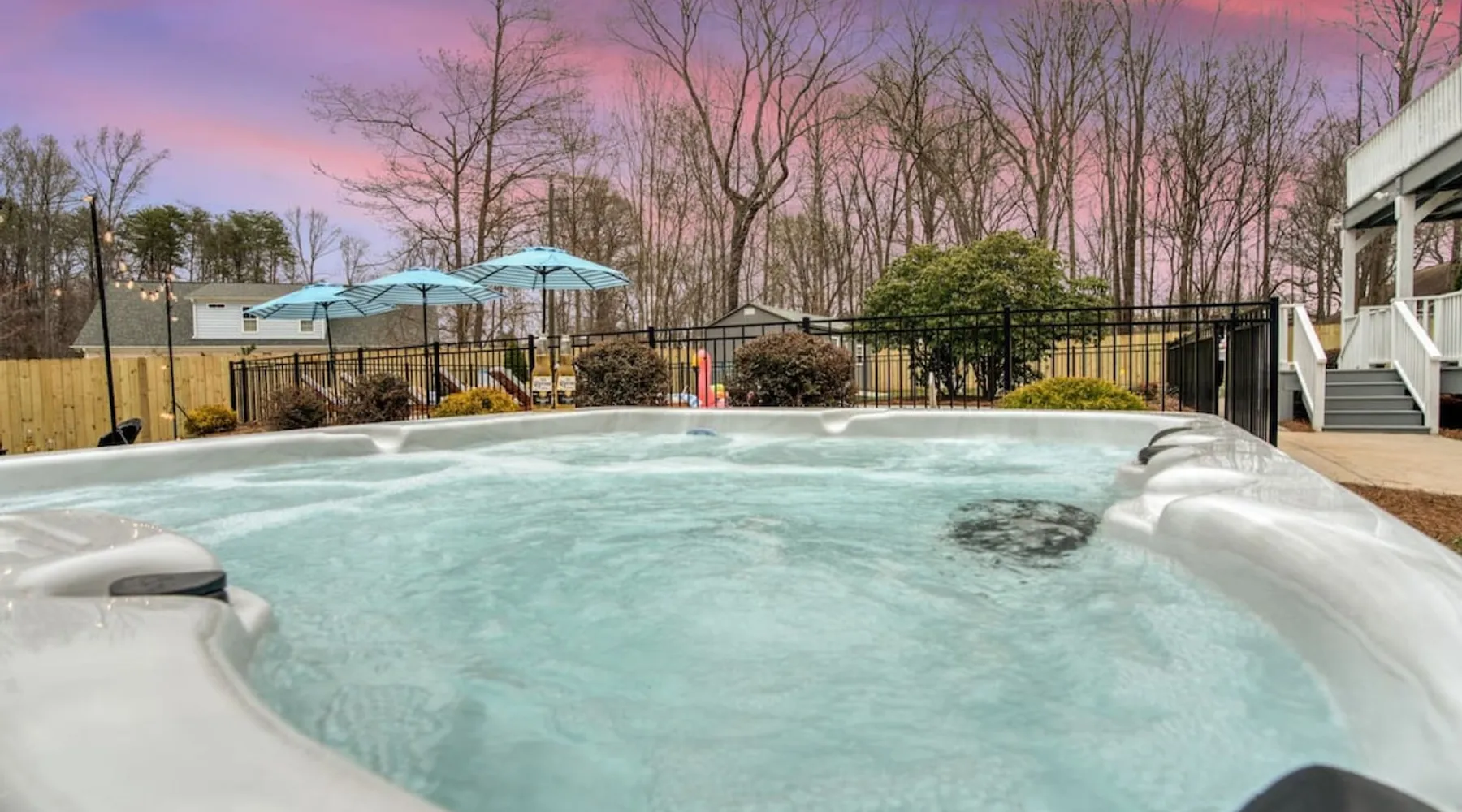 LUXURY! Vacation dream with our luxurious oasis for families! Boasting unique amenities like golf putting greens hot tub balcony deck pickleball court two basketball goals and outdoor bowling alley this home is a paradise for leisure and sports enthusiasts alike. Accommodate 10 adults and 6 kids with 11 beds. n n18 min to NCAA & ACC Tournaments' Greensboro Coliseum n18 min to PGA Tour Sedgefield Country Club Golf Course n28 min to High Point Furniture Market n nDiscover Unmatched Luxury Here! The space **NO PARTIES, GATHERINGS, OR EVENTS** *NO CHIPPING GOLF BALLS* *NO OUTDOOR MUSIC* ☆☆ PLEASE READ HOUSE RULES BEFORE BOOKING IN THE HOUSE RULES SECTION (NOT HERE)☆☆ KEY FEATURES: ☀ 5 beautiful bedrooms; 1 king, 2 queen, 2 full beds, & 6 twin beds (2 twin-over-twin bunk beds with trundle beds) ☀ 3.5 bathrooms, including a master ensuite ☀ Modern kitchen with new, stainless steel appliances ☀ Open living room with lots of comfy seating & smart TVs ☀ Dining within kitchen room seating to comfortably accommodate 10 (plus countertop seating & outdoor dining) ☀ STUNNING backyard with TONS of amenities; golf putting greens, pickleball court, outdoor bowling alley, pool, hot tub, fire pit, pool table, ping pong, BBQ grill, corn hole, & more! Here Are A Few Kind Words From Our Past Guests: "Absolutely loved our stay! Waking up to the serene glow of sunlight filtering in made each morning memorable. There are so many amenities that it was like an amusement park! Looking forward to our next stay!" - Olivia "Jordan was an outstanding host, offering prompt replies and helpful tips. The property itself is stunning, melding comfort with style, all while being conveniently near downtown Greensboro. Highly recommend for a memorable stay." - Sophia "I was charmed by this place from the moment we arrived, finding it exactly as depicted! Impeccably clean with a host that sets the bar for excellence. It's a definite must-return for me!" - Ava **NO PARTIES, GATHERINGS, OR EVENTS** *NO CHIPPING GOLF BALLS* *NO OUTDOOR MUSIC* ☆☆ PLEASE READ HOUSE RULES BEFORE BOOKING IN THE HOUSE RULES SECTION (NOT HERE)☆☆ Guest access ☆☆ BEDROOMS ☆☆ In this home, you'll find five bedrooms. The master bedroom is on the upper level, with two full beds, smart TV, and private ensuite bathroom. Right across the hall are four more bedrooms, with a king, queen, queen, and full bed accordingly. On the main level, there are two bedrooms located right off the kitchen & the rest of the entertainment area. Between the two bedrooms share a full bathroom. On the lower level den, there is an additional bedroom. This room has a pool table, ping pong table conversion kit, and arcade games. Plus it is filled with two twin-over-twin bunk beds and two trundle beds (total of 6 beds), swivel chairs, and lots of games, including board games! ☆☆ BATHROOMS ☆☆ There are three bathrooms spread out across this home, all of which have been completely renovated. The master ensuite has two sinks, a toilet, and shower only with a seat inside. The hallway bathroom right off of the other four second floor bedrooms is equipped with a sink, a toilet, and a shower/tub combo. On the lower level den, there is a full bathroom right off of the main entertaining area with a sink, toilet, and shower/tub combo. On the main floor, there is a half bath connected to the kitchen room. ☆☆ KITCHEN & DINING ☆☆ The modern, open kitchen is located right off of the main living areas, and is loaded with all new stainless steel appliances & a coffee station (including a Keurig & coffee pods). Bright, open, and beautifully designed, this is a chef's kitchen made for entertaining! The dining room is right next to the kitchen, with enough seating to comfortably fit 6 people (plus additional seating in the kitchen for 4 more) with lots of natural light, looking over all the amazing amenities in the backyard, just steps away! ☆☆ LIVING ROOM ☆☆ The main living room is on the main level, attached to the kitchen & dining areas. Lots of comfy seating on an oversized sectional, a large smart TV, and a separate seating area tucked away next to the main living area, with some additional seating & tabletop games to enjoy! ☆☆ OUTDOOR SPACE ☆☆ The main attraction of this home - WOW! This yard is HUGE and has everything you and your family/friends could ask for: ☀ Pool (unavailable September-May) ☀ Hot tub ☀ Golf Putting Greens ☀ Pickleball Court ☀ Basketball Court ☀ Fire pit (wood-burning) ☀ Corn Hole ☀ Sunbathing chairs ☀ Outdoor lounge seating ☀ Outdoor dining tables ☀ BBQ grill There is so much to do here, that all of your friends & family will be thoroughly entertained throughout your entire stay. No matter the season, this resort-style backyard has it all. Book your stay with us today and you will NOT be disappointed. Get ready for a vacation you will never forget! ★☆ Book Now & Let Us Take Care Of You In Greensboro! ☆★ Other things to note ☆☆ PLEASE READ HOUSE RULES BEFORE BOOKING IN THE HOUSE RULES SECTION (NOT HERE)☆☆ **NO PARTIES, GATHERINGS, OR EVENTS** Local Property Manager: Blake This property includes security features, such as Schlage smart locks and Ring floodlight cameras, and noise decibel detectors for your safety and peace of mind. We are pet-friendly! Pet Fee is $150, max of 2, under 50 lbs each. Pool is not heated. Although it remains uncovered throughout the year, the pool is not available for use from September to May; however, the hot tub will be operational during those months. We'd like to set your expectations that the pool temperature will continue to be determined by the weather temperature, as this is a major contributing factor. PARKING: - ALL cars must park in the driveway which has a maximum of FOUR (4) cars - Do NOT park on the street in from our direct neighbors. The neighbors will TOW you. - Do NOT park on the street directly in front of the driveway **NO PAR