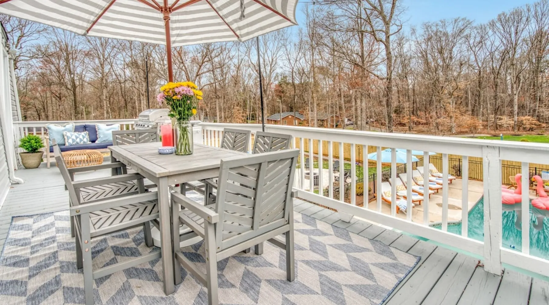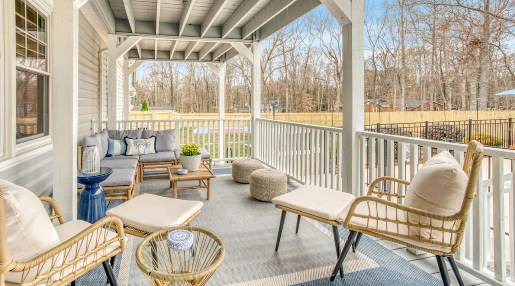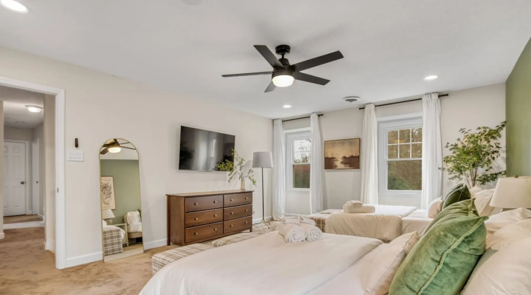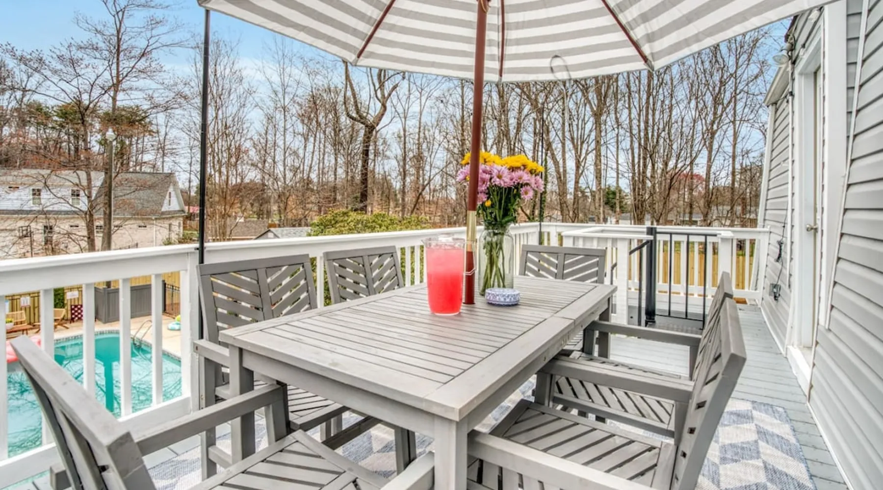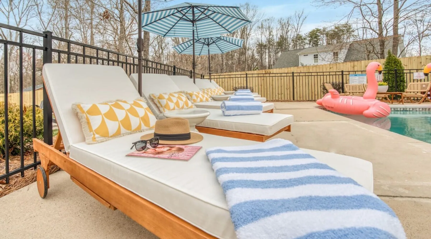 LUXURY! Vacation dream with our luxurious oasis for families! Boasting unique amenities like golf putting greens hot tub balcony deck pickleball court two basketball goals and outdoor bowling alley this home is a paradise for leisure and sports enthusiasts alike. Accommodate 10 adults and 6 kids with 11 beds. n n18 min to NCAA & ACC Tournaments' Greensboro Coliseum n18 min to PGA Tour Sedgefield Country Club Golf Course n28 min to High Point Furniture Market n nDiscover Unmatched Luxury Here! The space **NO PARTIES, GATHERINGS, OR EVENTS** *NO CHIPPING GOLF BALLS* *NO OUTDOOR MUSIC* ☆☆ PLEASE READ HOUSE RULES BEFORE BOOKING IN THE HOUSE RULES SECTION (NOT HERE)☆☆ KEY FEATURES: ☀ 5 beautiful bedrooms; 1 king, 2 queen, 2 full beds, & 6 twin beds (2 twin-over-twin bunk beds with trundle beds) ☀ 3.5 bathrooms, including a master ensuite ☀ Modern kitchen with new, stainless steel appliances ☀ Open living room with lots of comfy seating & smart TVs ☀ Dining within kitchen room seating to comfortably accommodate 10 (plus countertop seating & outdoor dining) ☀ STUNNING backyard with TONS of amenities; golf putting greens, pickleball court, outdoor bowling alley, pool, hot tub, fire pit, pool table, ping pong, BBQ grill, corn hole, & more! Here Are A Few Kind Words From Our Past Guests: "Absolutely loved our stay! Waking up to the serene glow of sunlight filtering in made each morning memorable. There are so many amenities that it was like an amusement park! Looking forward to our next stay!" - Olivia "Jordan was an outstanding host, offering prompt replies and helpful tips. The property itself is stunning, melding comfort with style, all while being conveniently near downtown Greensboro. Highly recommend for a memorable stay." - Sophia "I was charmed by this place from the moment we arrived, finding it exactly as depicted! Impeccably clean with a host that sets the bar for excellence. It's a definite must-return for me!" - Ava **NO PARTIES, GATHERINGS, OR EVENTS** *NO CHIPPING GOLF BALLS* *NO OUTDOOR MUSIC* ☆☆ PLEASE READ HOUSE RULES BEFORE BOOKING IN THE HOUSE RULES SECTION (NOT HERE)☆☆ Guest access ☆☆ BEDROOMS ☆☆ In this home, you'll find five bedrooms. The master bedroom is on the upper level, with two full beds, smart TV, and private ensuite bathroom. Right across the hall are four more bedrooms, with a king, queen, queen, and full bed accordingly. On the main level, there are two bedrooms located right off the kitchen & the rest of the entertainment area. Between the two bedrooms share a full bathroom. On the lower level den, there is an additional bedroom. This room has a pool table, ping pong table conversion kit, and arcade games. Plus it is filled with two twin-over-twin bunk beds and two trundle beds (total of 6 beds), swivel chairs, and lots of games, including board games! ☆☆ BATHROOMS ☆☆ There are three bathrooms spread out across this home, all of which have been completely renovated. The master ensuite has two sinks, a toilet, and shower only with a seat inside. The hallway bathroom right off of the other four second floor bedrooms is equipped with a sink, a toilet, and a shower/tub combo. On the lower level den, there is a full bathroom right off of the main entertaining area with a sink, toilet, and shower/tub combo. On the main floor, there is a half bath connected to the kitchen room. ☆☆ KITCHEN & DINING ☆☆ The modern, open kitchen is located right off of the main living areas, and is loaded with all new stainless steel appliances & a coffee station (including a Keurig & coffee pods). Bright, open, and beautifully designed, this is a chef's kitchen made for entertaining! The dining room is right next to the kitchen, with enough seating to comfortably fit 6 people (plus additional seating in the kitchen for 4 more) with lots of natural light, looking over all the amazing amenities in the backyard, just steps away! ☆☆ LIVING ROOM ☆☆ The main living room is on the main level, attached to the kitchen & dining areas. Lots of comfy seating on an oversized sectional, a large smart TV, and a separate seating area tucked away next to the main living area, with some additional seating & tabletop games to enjoy! ☆☆ OUTDOOR SPACE ☆☆ The main attraction of this home - WOW! This yard is HUGE and has everything you and your family/friends could ask for: ☀ Pool (unavailable September-May) ☀ Hot tub ☀ Golf Putting Greens ☀ Pickleball Court ☀ Basketball Court ☀ Fire pit (wood-burning) ☀ Corn Hole ☀ Sunbathing chairs ☀ Outdoor lounge seating ☀ Outdoor dining tables ☀ BBQ grill There is so much to do here, that all of your friends & family will be thoroughly entertained throughout your entire stay. No matter the season, this resort-style backyard has it all. Book your stay with us today and you will NOT be disappointed. Get ready for a vacation you will never forget! ★☆ Book Now & Let Us Take Care Of You In Greensboro! ☆★ Other things to note ☆☆ PLEASE READ HOUSE RULES BEFORE BOOKING IN THE HOUSE RULES SECTION (NOT HERE)☆☆ **NO PARTIES, GATHERINGS, OR EVENTS** Local Property Manager: Blake This property includes security features, such as Schlage smart locks and Ring floodlight cameras, and noise decibel detectors for your safety and peace of mind. We are pet-friendly! Pet Fee is $150, max of 2, under 50 lbs each. Pool is not heated. Although it remains uncovered throughout the year, the pool is not available for use from September to May; however, the hot tub will be operational during those months. We'd like to set your expectations that the pool temperature will continue to be determined by the weather temperature, as this is a major contributing factor. PARKING: - ALL cars must park in the driveway which has a maximum of FOUR (4) cars - Do NOT park on the street in from our direct neighbors. The neighbors will TOW you. - Do NOT park on the street directly in front of the driveway **NO PAR
