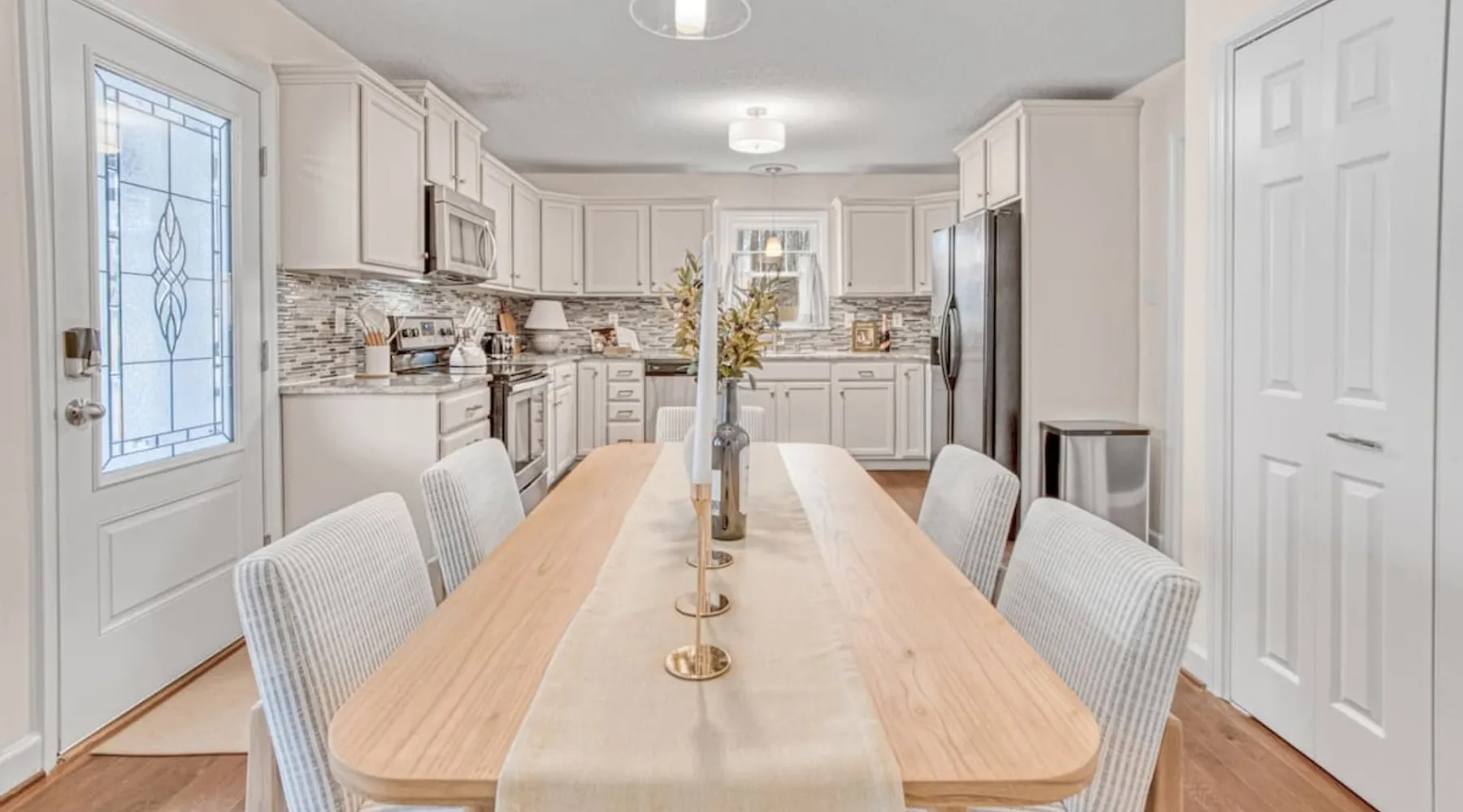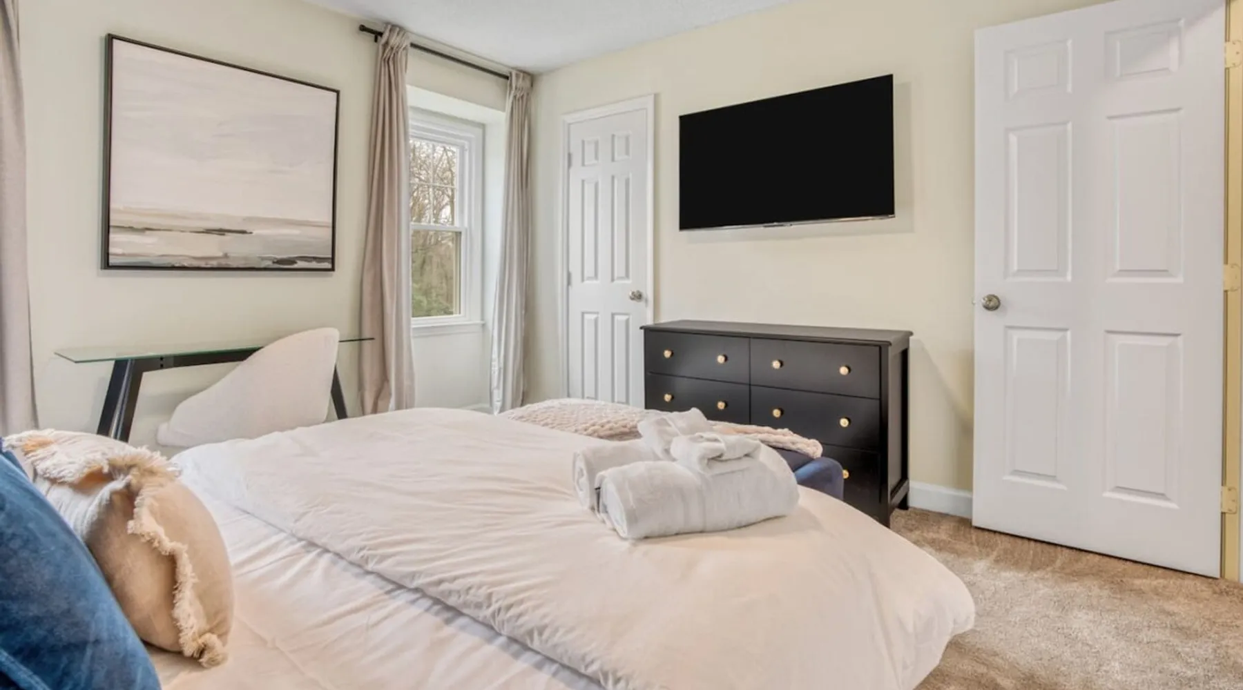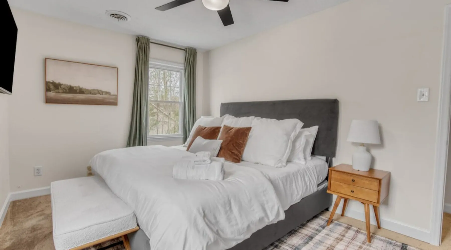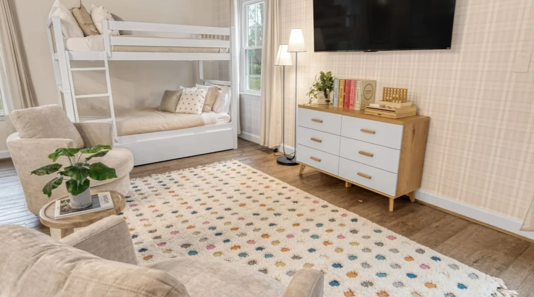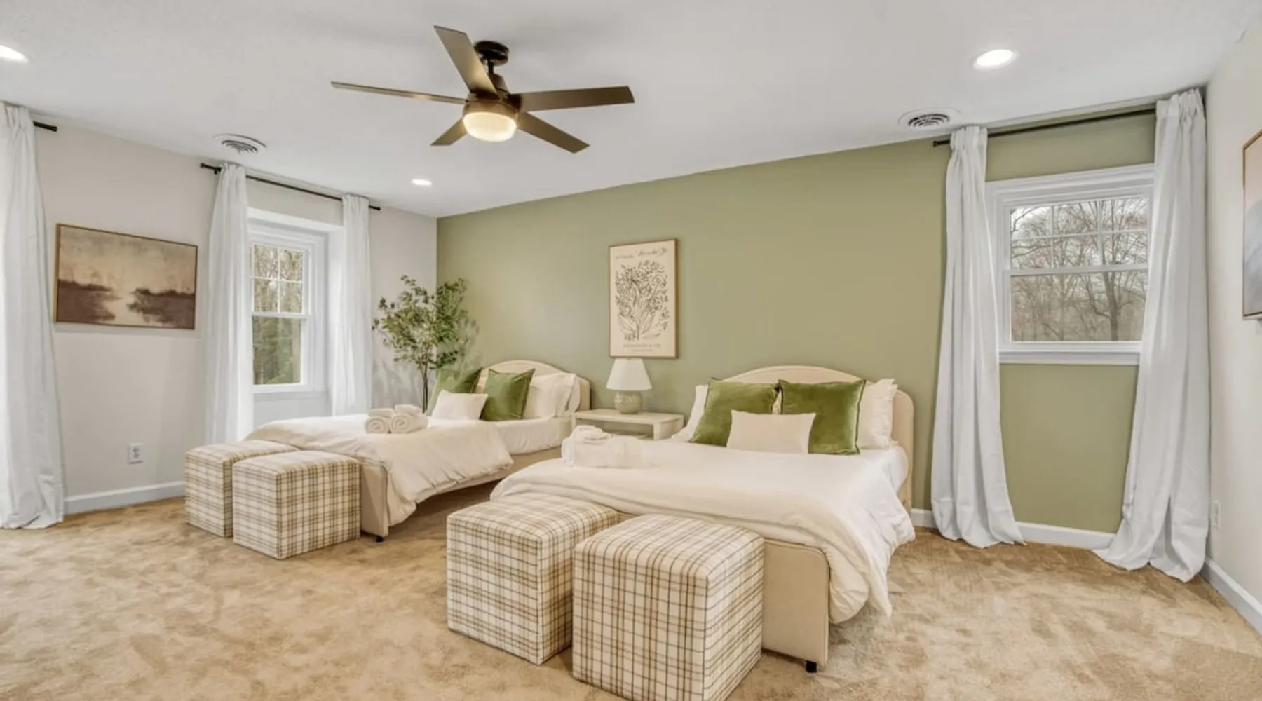 LUXURY! Vacation dream with our luxurious oasis for families! Boasting unique amenities like golf putting greens hot tub balcony deck pickleball court two basketball goals and outdoor bowling alley this home is a paradise for leisure and sports enthusiasts alike. Accommodate 10 adults and 6 kids with 11 beds. n n18 min to NCAA & ACC Tournaments' Greensboro Coliseum n18 min to PGA Tour Sedgefield Country Club Golf Course n28 min to High Point Furniture Market n nDiscover Unmatched Luxury Here! The space **NO PARTIES, GATHERINGS, OR EVENTS** *NO CHIPPING GOLF BALLS* *NO OUTDOOR MUSIC* ☆☆ PLEASE READ HOUSE RULES BEFORE BOOKING IN THE HOUSE RULES SECTION (NOT HERE)☆☆ KEY FEATURES: ☀ 5 beautiful bedrooms; 1 king, 2 queen, 2 full beds, & 6 twin beds (2 twin-over-twin bunk beds with trundle beds) ☀ 3.5 bathrooms, including a master ensuite ☀ Modern kitchen with new, stainless steel appliances ☀ Open living room with lots of comfy seating & smart TVs ☀ Dining within kitchen room seating to comfortably accommodate 10 (plus countertop seating & outdoor dining) ☀ STUNNING backyard with TONS of amenities; golf putting greens, pickleball court, outdoor bowling alley, pool, hot tub, fire pit, pool table, ping pong, BBQ grill, corn hole, & more! Here Are A Few Kind Words From Our Past Guests: "Absolutely loved our stay! Waking up to the serene glow of sunlight filtering in made each morning memorable. There are so many amenities that it was like an amusement park! Looking forward to our next stay!" - Olivia "Jordan was an outstanding host, offering prompt replies and helpful tips. The property itself is stunning, melding comfort with style, all while being conveniently near downtown Greensboro. Highly recommend for a memorable stay." - Sophia "I was charmed by this place from the moment we arrived, finding it exactly as depicted! Impeccably clean with a host that sets the bar for excellence. It's a definite must-return for me!" - Ava **NO PARTIES, GATHERINGS, OR EVENTS** *NO CHIPPING GOLF BALLS* *NO OUTDOOR MUSIC* ☆☆ PLEASE READ HOUSE RULES BEFORE BOOKING IN THE HOUSE RULES SECTION (NOT HERE)☆☆ Guest access ☆☆ BEDROOMS ☆☆ In this home, you'll find five bedrooms. The master bedroom is on the upper level, with two full beds, smart TV, and private ensuite bathroom. Right across the hall are four more bedrooms, with a king, queen, queen, and full bed accordingly. On the main level, there are two bedrooms located right off the kitchen & the rest of the entertainment area. Between the two bedrooms share a full bathroom. On the lower level den, there is an additional bedroom. This room has a pool table, ping pong table conversion kit, and arcade games. Plus it is filled with two twin-over-twin bunk beds and two trundle beds (total of 6 beds), swivel chairs, and lots of games, including board games! ☆☆ BATHROOMS ☆☆ There are three bathrooms spread out across this home, all of which have been completely renovated. The master ensuite has two sinks, a toilet, and shower only with a seat inside. The hallway bathroom right off of the other four second floor bedrooms is equipped with a sink, a toilet, and a shower/tub combo. On the lower level den, there is a full bathroom right off of the main entertaining area with a sink, toilet, and shower/tub combo. On the main floor, there is a half bath connected to the kitchen room. ☆☆ KITCHEN & DINING ☆☆ The modern, open kitchen is located right off of the main living areas, and is loaded with all new stainless steel appliances & a coffee station (including a Keurig & coffee pods). Bright, open, and beautifully designed, this is a chef's kitchen made for entertaining! The dining room is right next to the kitchen, with enough seating to comfortably fit 6 people (plus additional seating in the kitchen for 4 more) with lots of natural light, looking over all the amazing amenities in the backyard, just steps away! ☆☆ LIVING ROOM ☆☆ The main living room is on the main level, attached to the kitchen & dining areas. Lots of comfy seating on an oversized sectional, a large smart TV, and a separate seating area tucked away next to the main living area, with some additional seating & tabletop games to enjoy! ☆☆ OUTDOOR SPACE ☆☆ The main attraction of this home - WOW! This yard is HUGE and has everything you and your family/friends could ask for: ☀ Pool (unavailable September-May) ☀ Hot tub ☀ Golf Putting Greens ☀ Pickleball Court ☀ Basketball Court ☀ Fire pit (wood-burning) ☀ Corn Hole ☀ Sunbathing chairs ☀ Outdoor lounge seating ☀ Outdoor dining tables ☀ BBQ grill There is so much to do here, that all of your friends & family will be thoroughly entertained throughout your entire stay. No matter the season, this resort-style backyard has it all. Book your stay with us today and you will NOT be disappointed. Get ready for a vacation you will never forget! ★☆ Book Now & Let Us Take Care Of You In Greensboro! ☆★ Other things to note ☆☆ PLEASE READ HOUSE RULES BEFORE BOOKING IN THE HOUSE RULES SECTION (NOT HERE)☆☆ **NO PARTIES, GATHERINGS, OR EVENTS** Local Property Manager: Blake This property includes security features, such as Schlage smart locks and Ring floodlight cameras, and noise decibel detectors for your safety and peace of mind. We are pet-friendly! Pet Fee is $150, max of 2, under 50 lbs each. Pool is not heated. Although it remains uncovered throughout the year, the pool is not available for use from September to May; however, the hot tub will be operational during those months. We'd like to set your expectations that the pool temperature will continue to be determined by the weather temperature, as this is a major contributing factor. PARKING: - ALL cars must park in the driveway which has a maximum of FOUR (4) cars - Do NOT park on the street in from our direct neighbors. The neighbors will TOW you. - Do NOT park on the street directly in front of the driveway **NO PAR