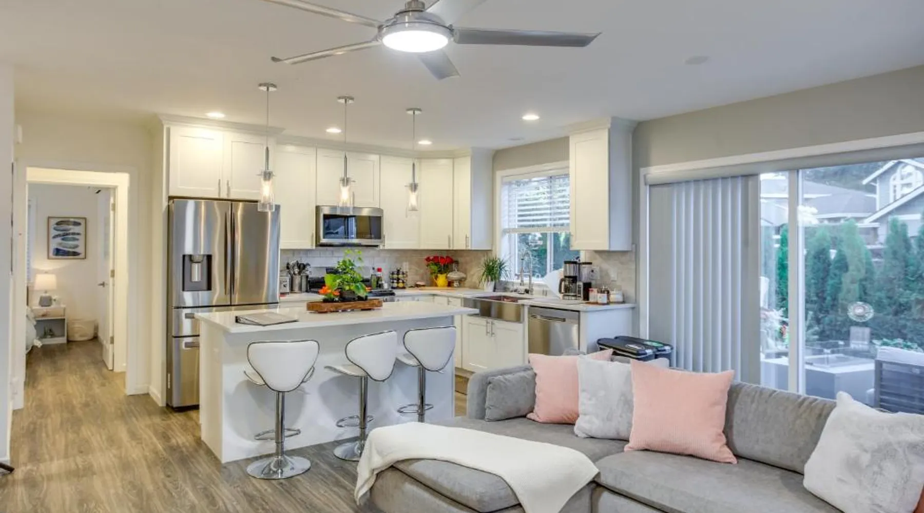 Comfortable Living: Newly Built Maple Valley Vacation Rental with Patio! in Maple Valley offers two bedrooms and two bathrooms. The living room includes a sofa and TV, ensuring a relaxing stay. Modern Amenities: Guests enjoy free WiFi, air-conditioning, and a fully equipped kitchen with a coffee machine, refrigerator, microwave, dishwasher, oven, stovetop, and toaster. Additional amenities include a washing machine, hairdryer, free toiletries, and a wardrobe. Convenient Location: Located 18 mi from Seattle–Tacoma International Airport, the property is near attractions such as Tiger Mountain State Forest (138 mi), Squak Mountain State Park Natural Area (16 mi), and the Space Needle (27 mi). Highly rated by guests. Featuring a private entrance, this air-conditioned holiday home is consisted of of 1 living room, 2 separate bedrooms and 2 bathrooms with a bath and a shower. In the well-fitted kitchen, guests will find a stovetop, a refrigerator, a dishwasher and kitchenware. The holiday home offers a washing machine, a coffee machine, a wardrobe, tumble dryer, as well as a flat-screen TV with cable channels. The unit offers 3 beds.